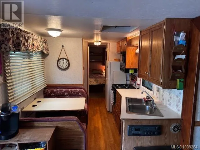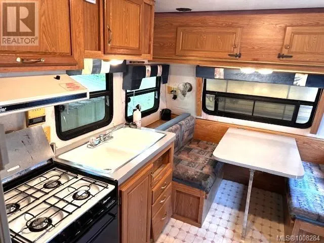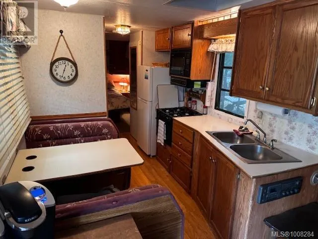 Location, location, location...sunny corner midway between both washrooms and between the Main Pond/store and Angel Pond and close to tennis & basketball courts. This double- sized lot backs onto a green space and boasts a 40' 1993 Glendale park model trailer with covered roof and large covered deck with railing, 19' 1996 Terry trailer (secondary sleeping unit), with covered roof, storage shed, covered fire pit/gazebo with built in seating and large attached covered BBQ area and beverage fridge, mounted dart board and knife/axe throwing area and fully fenced yard. Extra large harvest table and benches included (deck furniture negotiable). Large willow and cherry trees add beauty as well as plenty of shade in the warmer months. Ideal lot for large or multiple families. The park is accessible year round with full occupancy allowed from April 15 to October 15. There is an annual fee of $1625 which includes water, sewer and 24 hour security. (id:27476)