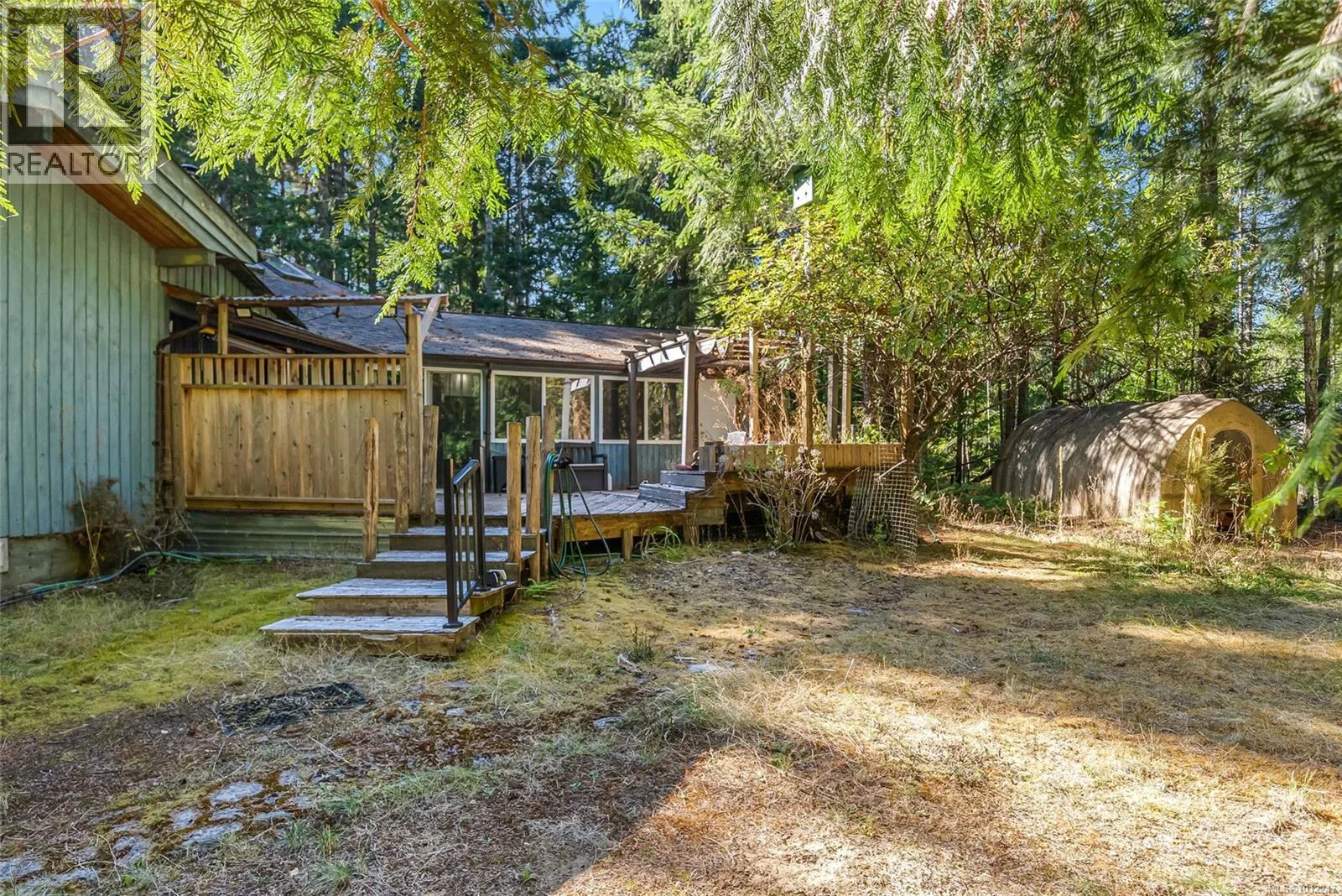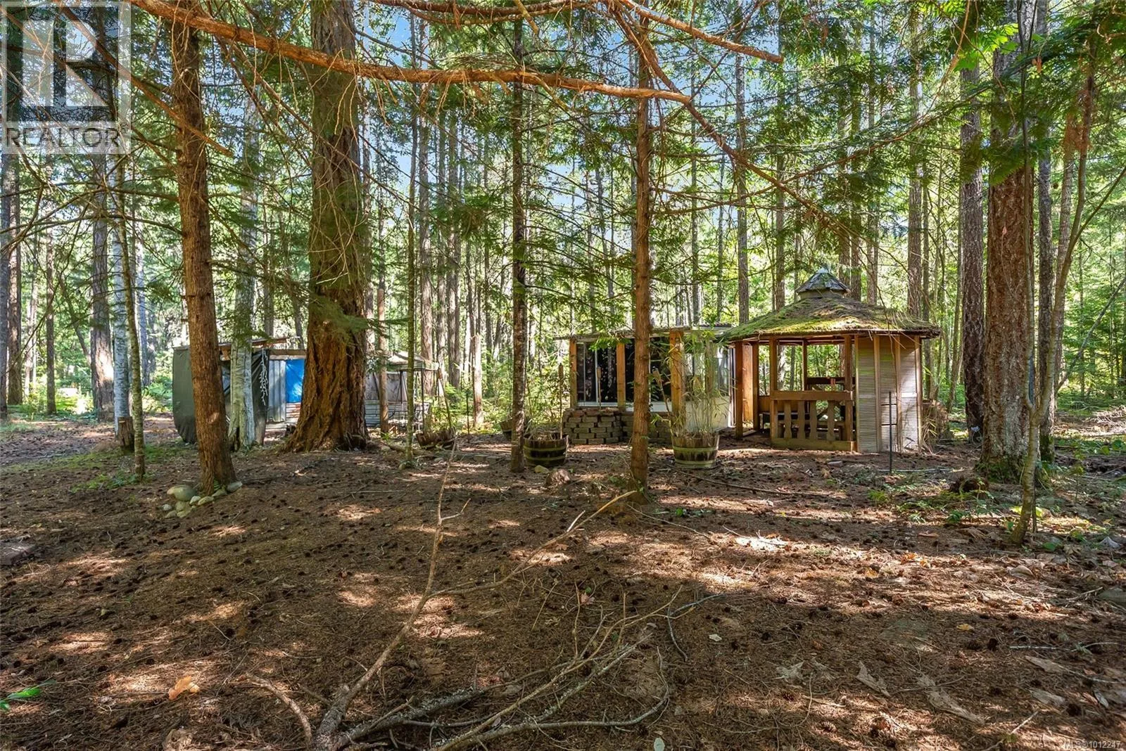Inspiring Qualicum North Acreage â A Diamond in the Rough with Amazing Potential! Tucked away in the lush rainforest just north of Qualicum Beach, this 2.69-acre property offers a unique opportunity with multiple living spaces: a 2 Bed/3 Bath Main Home, an attached 1 Bed/1 Bath Guest Suite, a detached 3 Bed/1 Bath Cottage, a large Garage/Workshop, and several older outbuildings. From the gated entry off a quiet rural road, a winding driveway through evergreens leads to the 2170 sqft Primary Structure. The heart of the Main Home is a bright, airy open-concept living area with post-and-beam construction, a striking circular vaulted cedar ceiling with dual fans, skylights, oversized windows, a quartz-tiled fireplace with wood insert, and maple hardwood floors. The skylighted Island Kitchen includes a pantry, while the Living/Dining Area offers a bank of west-facing skylights and a door to a large deck embraced by nature. The private Primary Suite has a walk-in closet and skylighted ensuite with a jetted tub, plus thereâs a second Bedroom, 3-piece Bath, Laundry Room, and access to a rear deck. From the front deck, glass doors open to a self-contained Guest Suite with a vaulted ceiling, triple picture windows, and a bright open-concept layout. The functional Kitchen offers a cooktop, microwave, and island with breakfast bar, while the Bedroom has cheater-ensuite access to a 3-piece Bath with a large shower. Privately set apart is a 703 sqft A-Frame Guest Cottageâan ideal rental or retreatâfeaturing a spacious Living Room, Kitchenette, main-level Bedroom, 4-piece Bath, two loft Bedrooms, a large front deck, fenced yard, and quaint A-frame storage shed. The acreage hosts an 1102 sqft Detached Garage/Workshop with two bays, as well as rustic sheds, a quonset hut, gazebo, greenhouse, and fenced gardens. Enjoy a sundeck, small ponds, and two driveways, with RR2 zoning offering flexibility for a variety of uses. Visit our website for more info on this amazing opportunity! (id:27476)