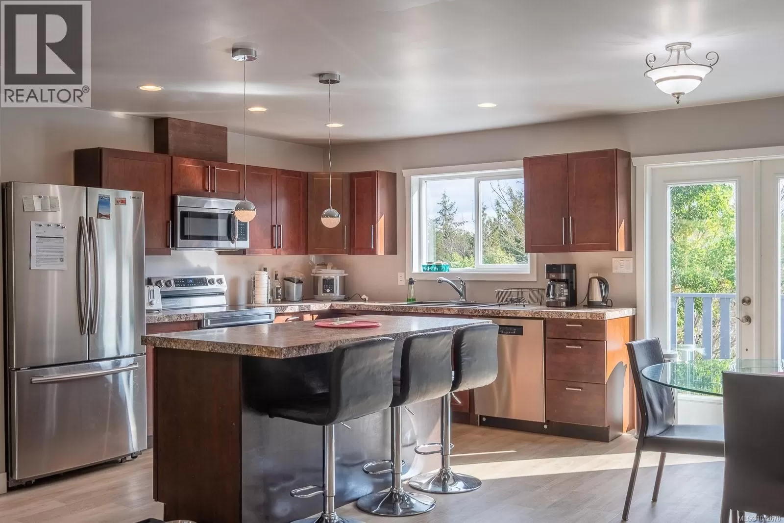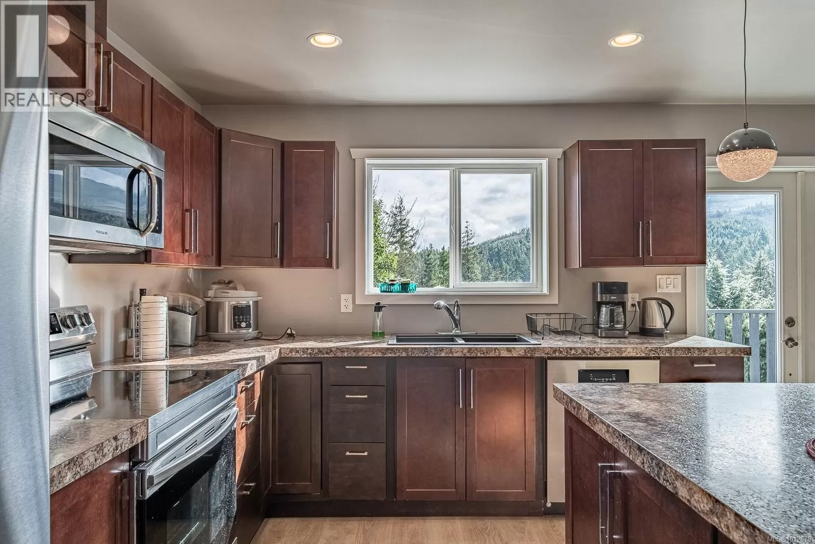 Stunning mountain views with a suite in Little Qualicum River Village! This 2046 sq ft home, built in 2016, offers 3 bedrooms, 3 bathrooms, and a recently updated 2-bedroom suite with in-suite laundry hookup, a kitchen, and a 4-piece bathâperfect for in-laws or rental income. The basement ceiling is insulated for soundproofing. The main floor features an open-concept layout, a kitchen with stainless steel appliances, and a deck with breathtaking views. The primary bedroom includes two closets and a spa-like ensuite with a jacuzzi soaker tub and quartz countertops. Upgrades include new paint, baseboards, light fixtures, and commercial-grade vinyl flooring. Other highlights: large garage, oversized hot water tank (2 years old), poured slab covered patio, and a 12x24 storage shed. Close to trails, rivers, and Little Qualicum Falls, just 20 min to Qualicum Beach and 1 hr to Nanaimo. (id:27476)