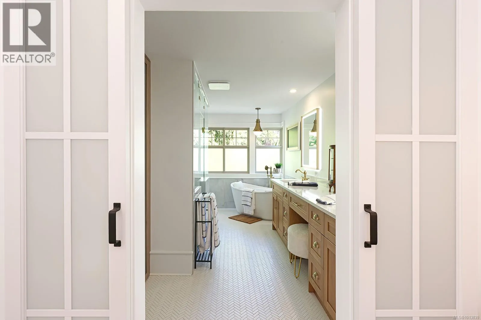 Step into a world of timeless sophistication with this exquisitely renovated and architecturally refined residence, perfectly situated in one of Qualicumâs most sought-after communities. From the moment you enter the dramatic 20-foot foyer, the homeâs elegance and attention to detail are unmistakable. The welcoming living room, anchored by a cozy gas fireplace, flows effortlessly into the expansive, professionally landscaped backyardâyour own private oasis ideal for relaxing or entertaining. Showcasing impeccable craftsmanship, the residence features bespoke millwork, soaring ceilings, and wide-plank white oak hardwood floors that elevate every space. At the heart of the home lies a stunning chefâs kitchen, outfitted with premium Fisher & Paykel appliances, custom cabinetry, quartz countertops, and a beautifully designed walk-in pantry that also serves as a flexible home office or prep space. Upstairs, youâll find three generously sized bedrooms along with a versatile bonus room perfect for a media lounge, home gym, or playroom. The primary suite is a sanctuary in every senseâcomplete with a lavish spa-inspired ensuite featuring a freestanding soaker tub, steam shower, dual vanities, and a luxurious walk-in dressing room reminiscent of a boutique on Rodeo Drive. Additional features include a spacious 3-car garage, dedicated RV parking, new 50-year architectural roof, low-maintenance composite decking and fencing, and an energy-efficient heat pump. Best of all, the home is within walking distance to the serene, sandy beaches of the Salish Sea. This is a rare opportunity to own a property where no detail has been overlooked. Experience refined coastal living in a community known for its natural beauty, exclusivity, and charm. (id:27476)