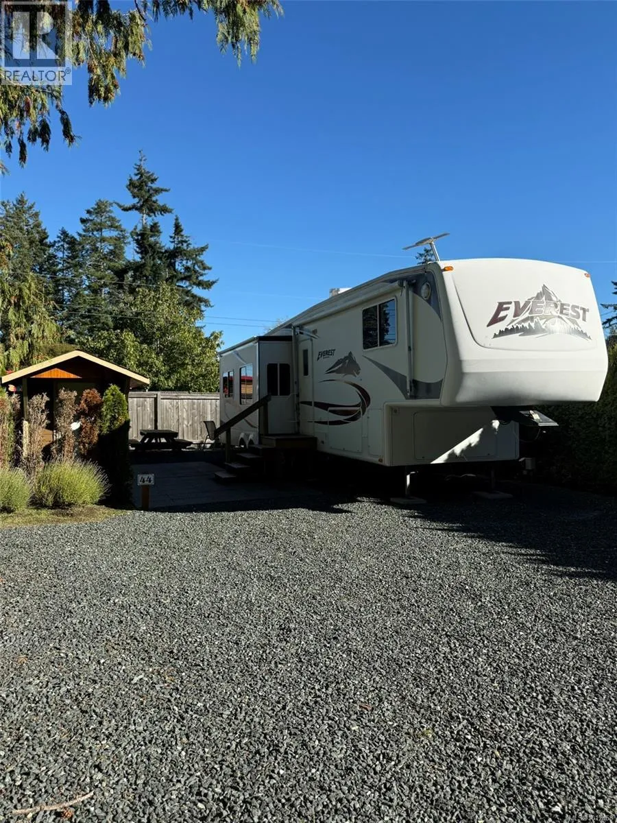 Nestled in the heart of Baywater Estates at 6050 Island Highway West, this exceptional lotâSite 44âoffers a rare blend of comfort, charm, and seaside retreat. Tucked among stately Douglas firs and mature cedars, this fully serviced site is a welcoming haven for RV living or seasonal escape. At its heart is a well-maintained 2006 Keystone fifth wheel, thoughtfully positioned to maximize both privacy and ease of access. With a functional floor plan and solid build, this unit provides cozy living quarters with all the essentialsâready for immediate enjoyment or further personalization to suit your style. Step outside and youâll find a showpiece of thoughtful landscaping: lush garden beds soften the edges of the lot, stone pathways wind through low-maintenance perennials, and tasteful shrubs define natural sitting areas. This green oasis invites outdoor living and beautifully ties the RV site into its forested surroundings. Complementing the landscaping is a brand new storage shed, custom-built to match the aesthetic of the property. It delivers practical storageâkeeping tools, outdoor gear, and seasonal equipment neatly organized and out of sight. Its clean lines and durable finishes make it both functional and visually unobtrusive. Beyond the site itself, residents at Baywater Estates enjoy access to resort-style amenities: 30-amp serviced power, communal laundry & showers, a welcoming clubhouse, and walk-on oceanfront just moments away. Location is one of the true highlights. A short stroll or ride brings you to the shoreline, while the town of Qualicum Beachâwith its charming shops, cafés, cultural offerings, and recreational trailsâis within easy reach. Whether you seek a quiet retreat, a seasonal getaway, or a smart investment in a proven park community, this site offers a compelling balance of comfort, convenience, and character. (id:27476)