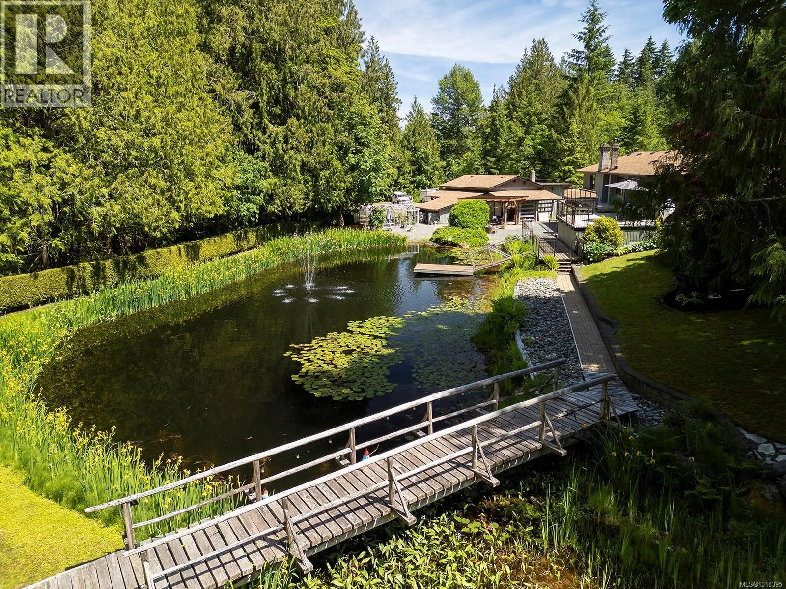 Welcome to this truly rare and magical offering only minutes from Qualicum Beach. This 4.56-acre private estate features a 3,117 sq ft two-storey home perfectly positioned to overlook a serene, man-made extra large pond complete with a central fountain. The peaceful views are framed by forested trails that meander around the water, giving the sense that you're living in your own park. The lower level of the home is already plumbed for a suite, offering flexibility for multi-generational living or rental income. Two detached shops provide abundant space for hobbies or storage; one even includes a mechanics pit. A greenhouse is also in place for garden enthusiasts. The property offers different lifestyle possibilities. Tucked away in nature, this is a one-of-a-kind opportunity to enjoy quiet, private living without sacrificing convenience. A lifestyle property like no other. (id:27476)
