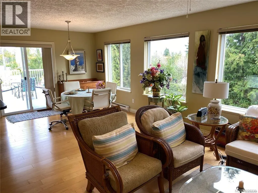 This beautiful well maintained mountain view home with suite, is located in a gated community, only 15 min. from Qualicum Beach. The 2+2 bedroom/2+1 bath features 5'' maple hardwood on main level & Brazilian cherry in lower unit. Corian kitchen counters in both units. Heat pump on main level with a propane fire plc. Dining room & master bedroom have access to the 20'x20' sundeck southern exposed with kitchen aide propane BBQ that is plumbed into larger leased tank. The lower level has a shared laundry craft room and open concept living, kitchen & dining room along with 2 bedrooms. The roof has been professionally sealed with a warranty until 2030. Septic cleaned out last summer. This is a dream location surrounded by walking trails, golf courses, beaches for swimming & fishing. This home is offered as a turnkey opportunity with a list of items attached are negotiable. So, if you enjoy mild winters & peaceful country living sit back & enjoy this beautiful space (id:27476)