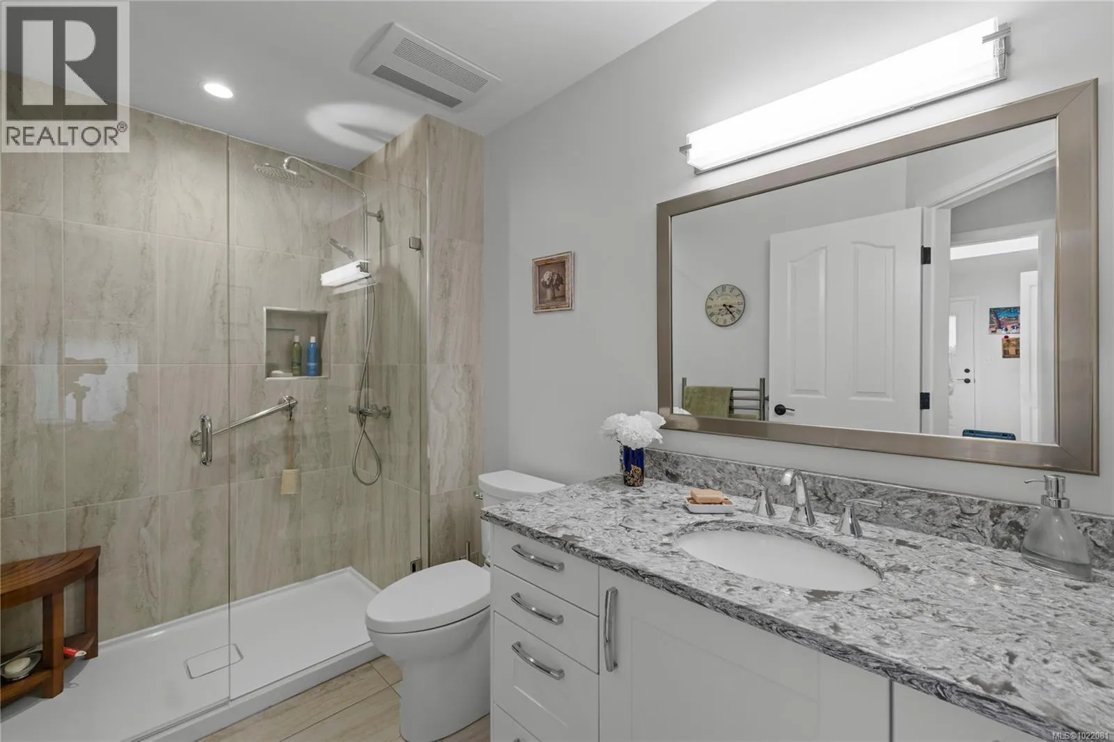 Modern elegance meets ultimate convenience at Primrose Lane in Qualicum Beach. Step into a lifestyle of ease in this beautifully renovated patio home. Centrally located, this gem offers the perfect balance of peaceful living and urban accessibility. Offering a generous 1,205 square feet, this 2-bedroom, 2-bathroom residence is meticulous. Professionally painted, new flooring throughout, updated kitchen, both bathrooms updated and a heat pump installed. Forget the car keys, this 55+ community is situated in a truly unbeatable location. One block away from shopping, dining and all amenities. (id:27476)