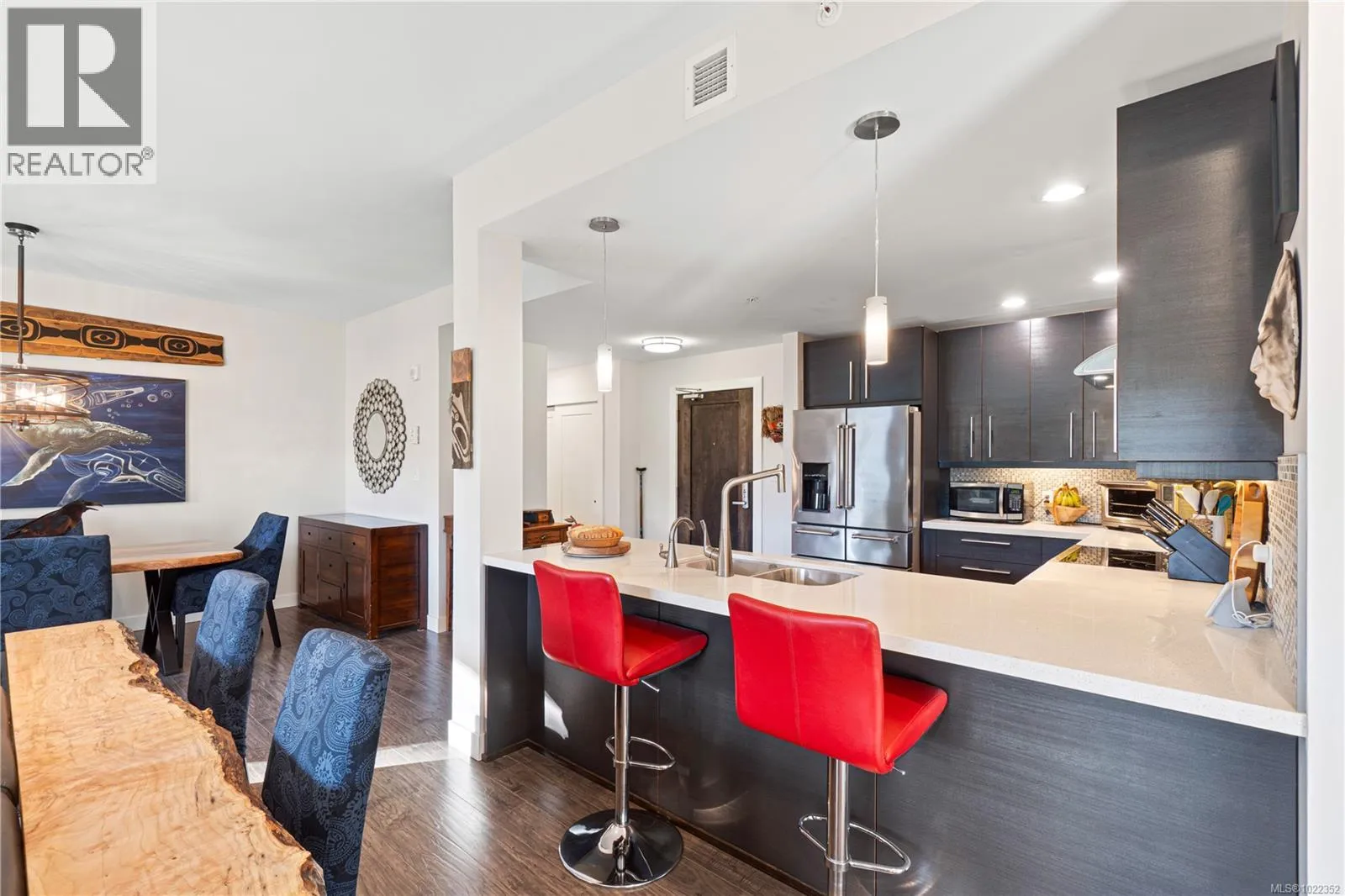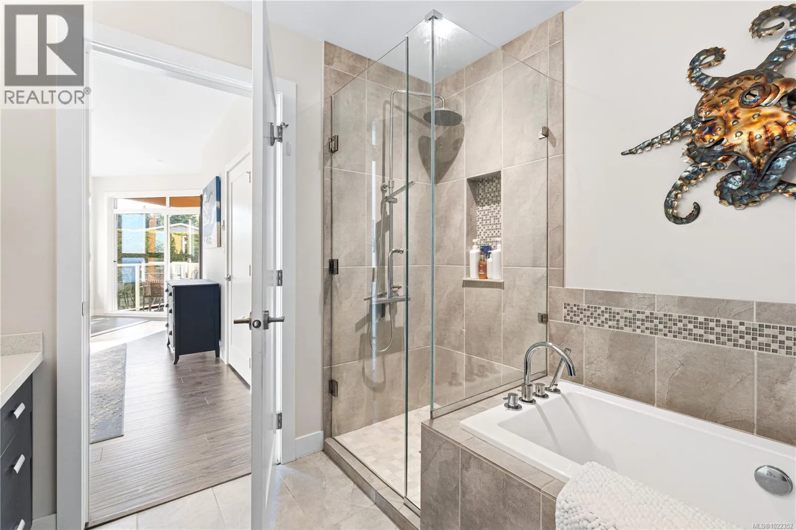 Embrace the ultimate Qualicum Beach lifestyle in this luxurious, meticulously appointed 2-bedroom, 2-bathroom ocean view ground level condo. The location is unparalleled: private stairs adjacent to the complex mean you are truly steps from the sand and surf of Qualicum Beach. Step inside to a spacious, open-concept design bathed in natural light from expansive, floor-to-ceiling windows frame your spectacular ocean views, creating an inviting space to relax. The gourmet kitchen is a chef's delight, featuring sleek quartz countertops & stainless steel appliances. The primary bedroom offers tranquility, a walk-in closet, and direct access to the wrap-around entertainment deck with stunning ocean viewsâyour private perch for morning coffee or evening sunsets. Indulge in the luxury spa-inspired ensuite with a separate shower & deep soaker tub. A spacious second bedroom and another full bath complete this elegant floorplan. Enjoy a maintenance-free, ''lock-and-go'' lifestyle in this pristine, pet-friendly strata with no age restrictions. The unit includes two underground stalls (EV-ready) and a storage locker. You're centrally located, with Judge's Row Beach, the golf course, Heritage Forest and the charming village just moments away. (id:27476)