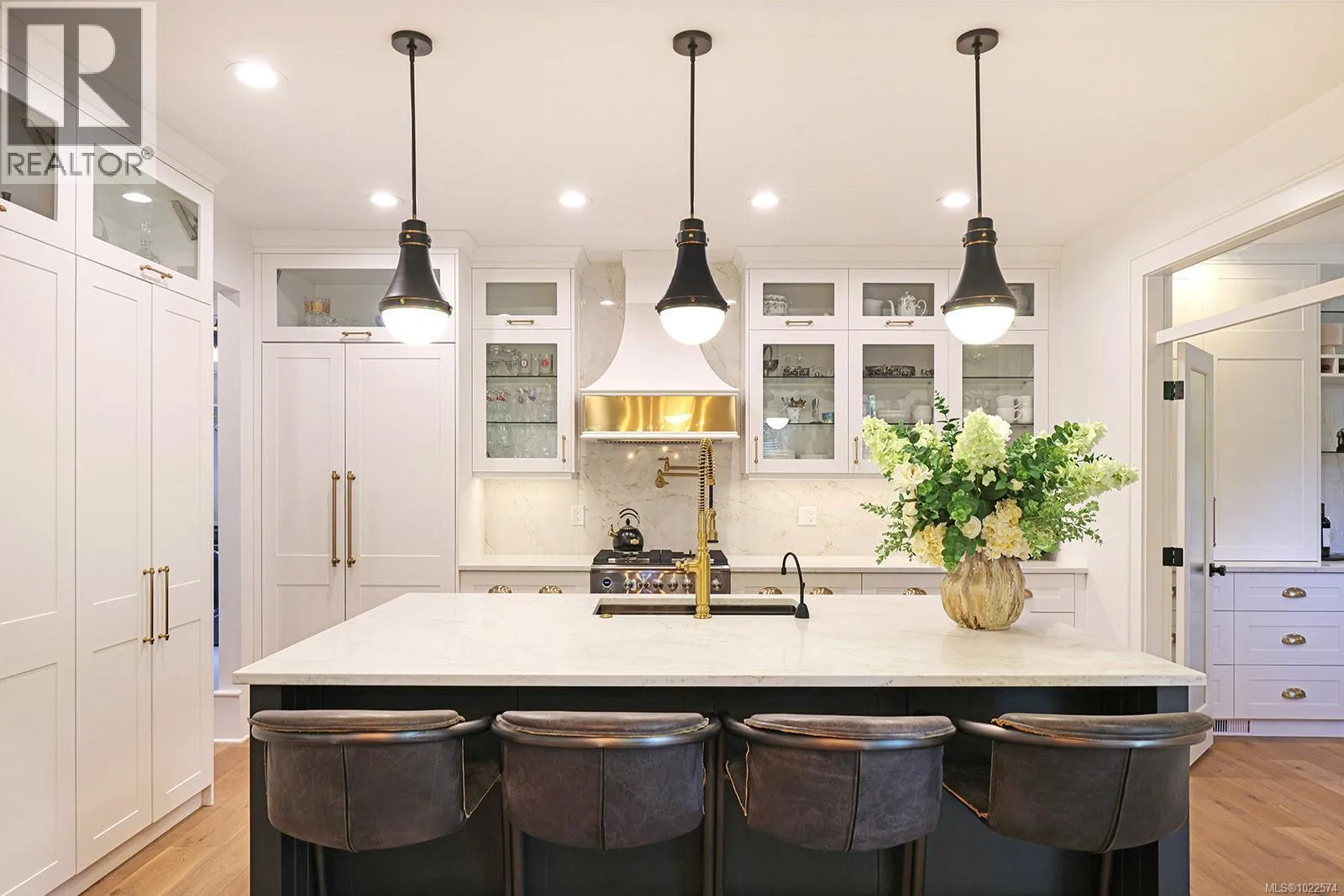 Step into a world of timeless sophistication with this exquisitely renovated and architecturally refined residence, perfectly situated in one of Qualicumâs most sought-after communities. From the moment you enter the dramatic 20-foot foyer, the homeâs elegance and attention to detail are unmistakable. The welcoming living room, anchored by a cozy gas fireplace, flows effortlessly into the expansive, professionally landscaped backyardâyour own private oasis ideal for relaxing or entertaining. Showcasing impeccable craftsmanship, the residence features bespoke millwork, soaring ceilings, and wide-plank white oak hardwood floors that elevate every space. At the heart of the home lies a stunning chefâs kitchen, outfitted with premium Fisher & Paykel appliances, custom cabinetry, quartz countertops, and a beautifully designed walk-in pantry that also serves as a flexible home office or prep space. Upstairs, youâll find three generously sized bedrooms along with a versatile bonus room perfect for a media lounge, home gym, or playroom. The primary suite is a sanctuary in every senseâcomplete with a lavish spa-inspired ensuite featuring a freestanding soaker tub, steam shower, dual vanities, and a luxurious walk-in dressing room reminiscent of a boutique on Rodeo Drive. Additional features include a spacious 3-car garage, dedicated RV parking, new 50-year architectural roof, low-maintenance composite decking and fencing, and an energy-efficient heat pump. Best of all, the home is within walking distance to the serene, sandy beaches of the Salish Sea. This is a rare opportunity to own a property where no detail has been overlooked. Experience refined coastal living in a community known for its natural beauty, exclusivity, and charm. (id:27476)