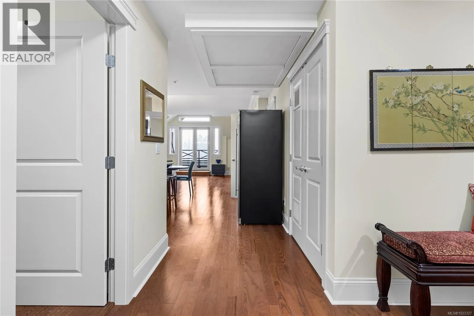 Top floor ocean view unit in Villa Rose, a 55+ community in downtown Qualicum Beach's all-concrete building. This 2 bed, 2 bath condo features a northeast-facing balcony with Strait of Georgia & island views. Hardwood floors throughout with no carpeting. Open-concept kitchen with granite counters, under-counter lighting, island & new stainless steel fridge. Brand new heat pump with air conditioning. Sun tubes enhance natural light in living space & primary bedroom. Spacious primary bedroom plus second bedroom for guests or home office. Villa Rose's solid ICF concrete construction delivers exceptional soundproofing & fire separation. Secure underground parking, storage locker, secured entry, elevator, and private residents' courtyard. Pets & rentals allowed. Steps to downtown's boutique shops, galleries, restaurants, cafes, groceries & Ravensong Aquatic Centre. Close to Qualicum Beach's sandy beaches. Ready for quick possession in one of Qualicum Beach's most desirable buildings. (id:27476)