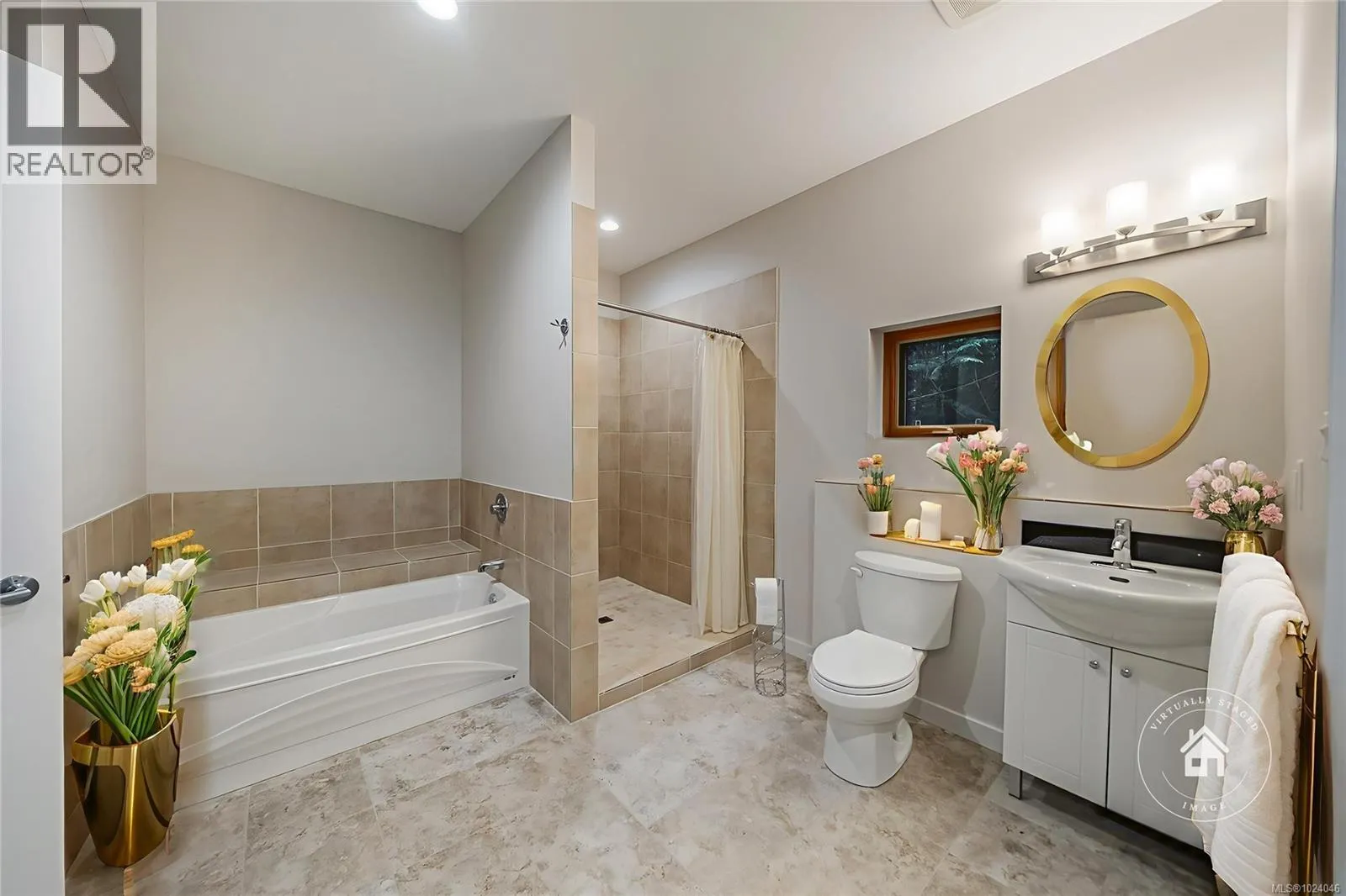 One-of-a-Kind Qualicum North Acreage! Tucked away in the peaceful Meadowood community, this very private 2.72-acre park-like paradise hosts a stunning 5760 sqft Contemporary Executive Home boasting a total of 5 Beds & 6 Baths dispersed among 3 distinct living areas incl a Lower-Level Suite, an attached Guest Cottage, and several Outbuildings. A rare opportunity that offers remarkable versatilityâideal for multi-family or inter-generational living or perfectly suited for an Airbnb or rental investment. Located just 20 mins from Qualicum Beach, the resort-like acreage boasts a firepit area, a garden area with a Greenhouse, an older Mobile Home repurposed for storage, and abundant parking. A gated entry drive leads to an impressive Executive Home with 2 Beds plus an Office and 3 Baths. The home boasts spacious rooms, stylish fixtures/finishes, unique architectural angles, and multiple decks for outdoor living. A spacious deck leads to a tiled foyer, where maple flooring flows into an open-plan Living/Dining area with forest views, a mini-split heat pump, and a wood stove. The sleek Island Kitchen offers a wet bar and stainless appliances. Sliding doors open to a wraparound deck, also accessible from the Primary Suite with spa ensuite. A Guest Suite with private entry, Office, Powder Room, Laundry, and Garage complete the main level. A staircase leads to the lower level Guest Suite with 2 Beds, 2 Baths, a Flex Room, and heated flooring. Features include an open Kitchen/Living/Dining with a wood stove and deck access, plus a Theater/3rd Bedroom, Wine Cellar, Storage Rooms, and a Flex Room with sink. Adjacent to the Main Home is a 1 Bed/1 Bath Guest Cottage, perfect for family, caregiver, or Airbnb use. A wraparound deck leads to a bright living area with repurposed hardwood floors, a Living Room with elec fireplace, Kitchen/Dining, Bedroom, and 3-pc Bath. This spectacular country paradise awaits your admiration!. Visit our website for more info. (id:27476)