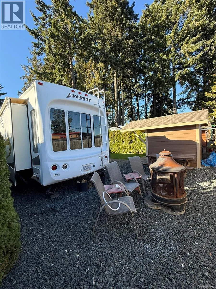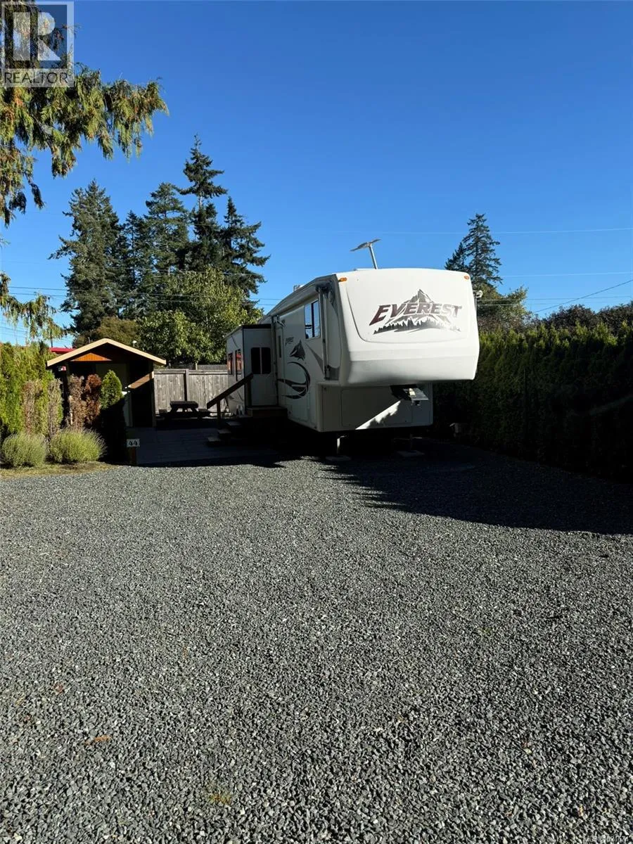 Nestled in the heart of Baywater Estates at 6050 Island Highway West, this exceptional lotâSite 44âoffers a rare blend of comfort, charm, and seaside retreat. Tucked among stately Douglas firs and mature cedars, this fully serviced site is a welcoming haven for RV living or seasonal escape. At its heart is a well-maintained 2006 Keystone fifth wheel, thoughtfully positioned to maximize both privacy and ease of access. With a functional floor plan and solid build, this unit provides cozy living quarters with all the essentialsâready for immediate enjoyment or further personalization to suit your style. Step outside and youâll find a showpiece of thoughtful landscaping: lush garden beds soften the edges of the lot, stone pathways wind through low-maintenance perennials, and tasteful shrubs define natural sitting areas. This green oasis invites outdoor living and beautifully ties the RV site into its forested surroundings. Complementing the landscaping is a brand new storage shed, custom-built to match the aesthetic of the property. It delivers practical storageâkeeping tools, outdoor gear, and seasonal equipment neatly organized and out of sight. Its clean lines and durable finishes make it both functional and visually unobtrusive. Beyond the site itself, residents at Baywater Estates enjoy access to resort-style amenities: 30-amp serviced power, communal laundry & showers, a welcoming clubhouse, and walk-on oceanfront just moments away. Location is one of the true highlights. A short stroll or ride brings you to the shoreline, while the town of Qualicum Beachâwith its charming shops, cafés, cultural offerings, and recreational trailsâis within easy reach. Whether you seek a quiet retreat, a seasonal getaway, or a smart investment in a proven park community, this site offers a compelling balance of comfort, convenience, and character. (id:27476)