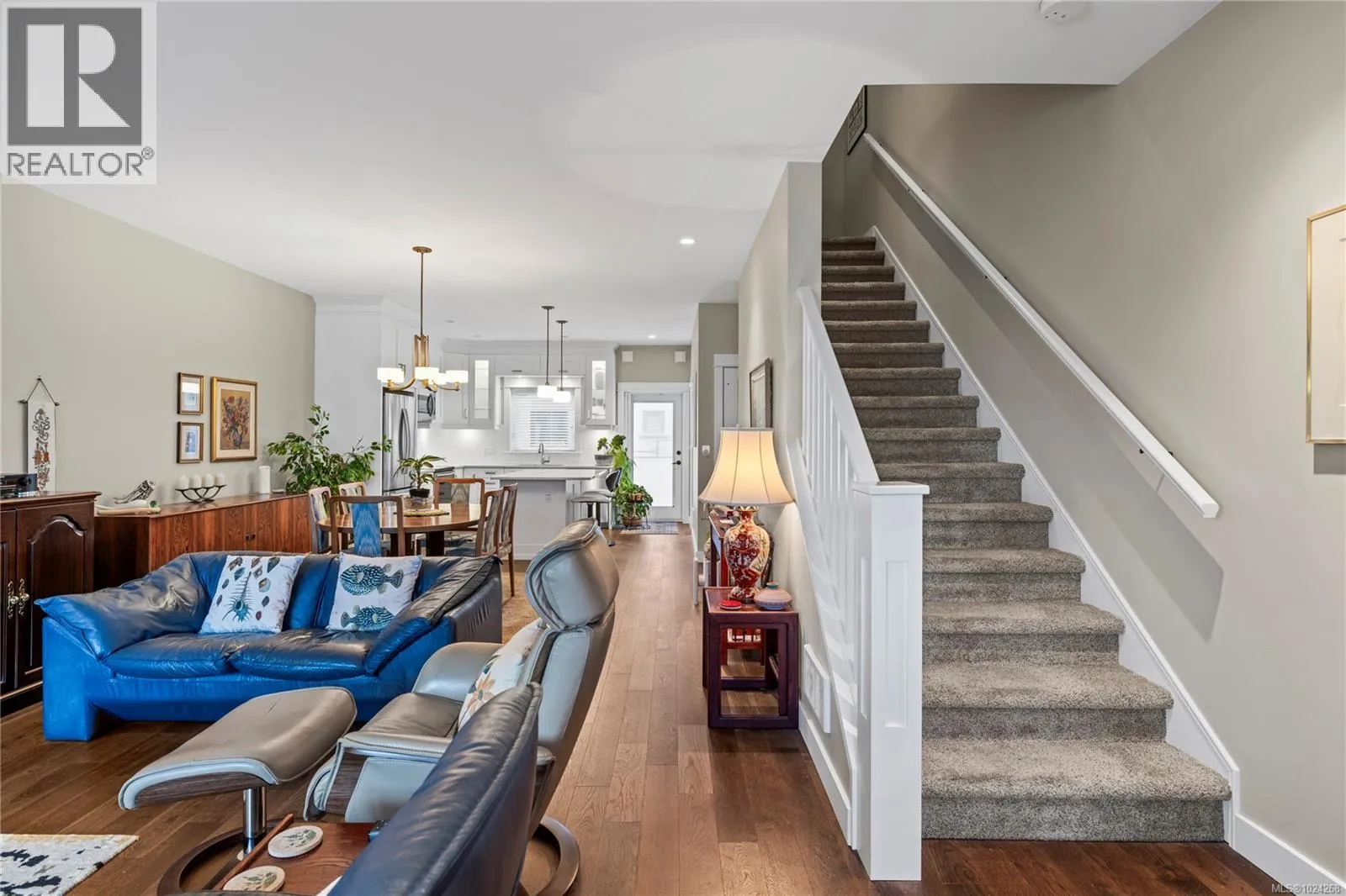Stunning townhome living in the heart of downtown Qualicum Beach. This beautifully appointed residence offers a rare private elevator servicing all three floors, blending convenience with refined design. The main level welcomes you into a bright, open concept living space featuring quartz countertops, premium appliances, and thoughtful detailing, ideal for both everyday living and entertaining. Upstairs, you will find 2 generous bedrooms, including an ocean view primary suite w/ a striking ensuite, plus an additional full bath. The lower level provides a versatile flex space that works perfectly as a den, rec room, or 3rd bedroom, with direct access to the garage and separate entrance. This thoughtfully built, one-owner home (2015) is constructed with insulated concrete forms for outstanding soundproofing and privacy. Pet friendly with no age restrictions, it enjoys a prime location across from scenic trails and the Ravensong Aquatic Centre, with shops and restaurants only steps away. (id:27476)