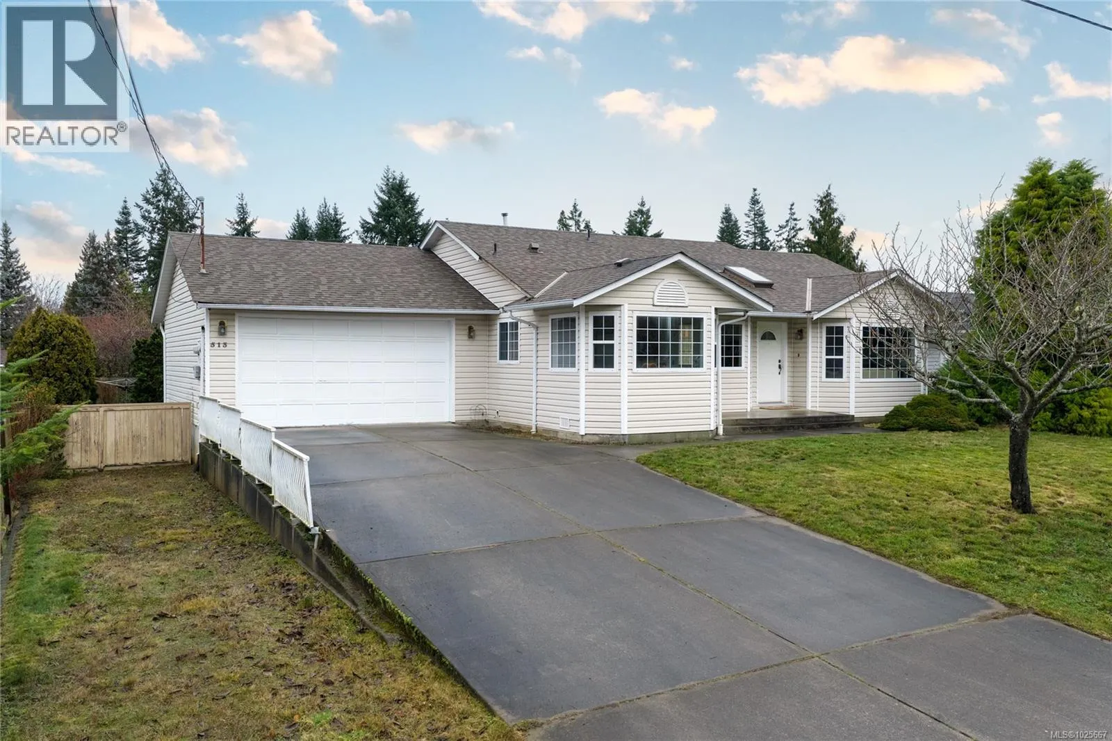 Set in a quiet Qualicum Beach location just a short walk to the beach and close to miles of scenic walking and nature trails, this 3-bedroom rancher offers practical single-level living on a crawl space. The home features an oversized garage ideal for storage, a workshop, or hobby space, along with dedicated RV parking that includes both water and electrical hook-ups. A built-in vacuum system adds everyday convenience. The property offers excellent outdoor functionality with underground irrigation systems installed in both the front and rear yards. Enjoy a large garden area complete with mature apple trees and two Bartlett pear trees, a covered patio for year-round use, and a spacious garden/tool shed providing ample additional storage. Heating is provided by a natural gas furnace, supplemented by baseboard heating. The home presents an opportunity for a buyer looking to renovate, update, or customize, allowing them to add value and make it their own. (id:27476)