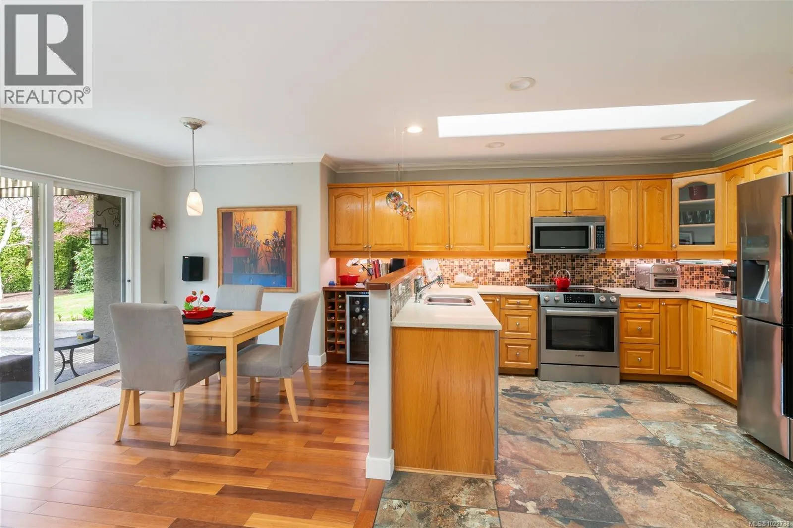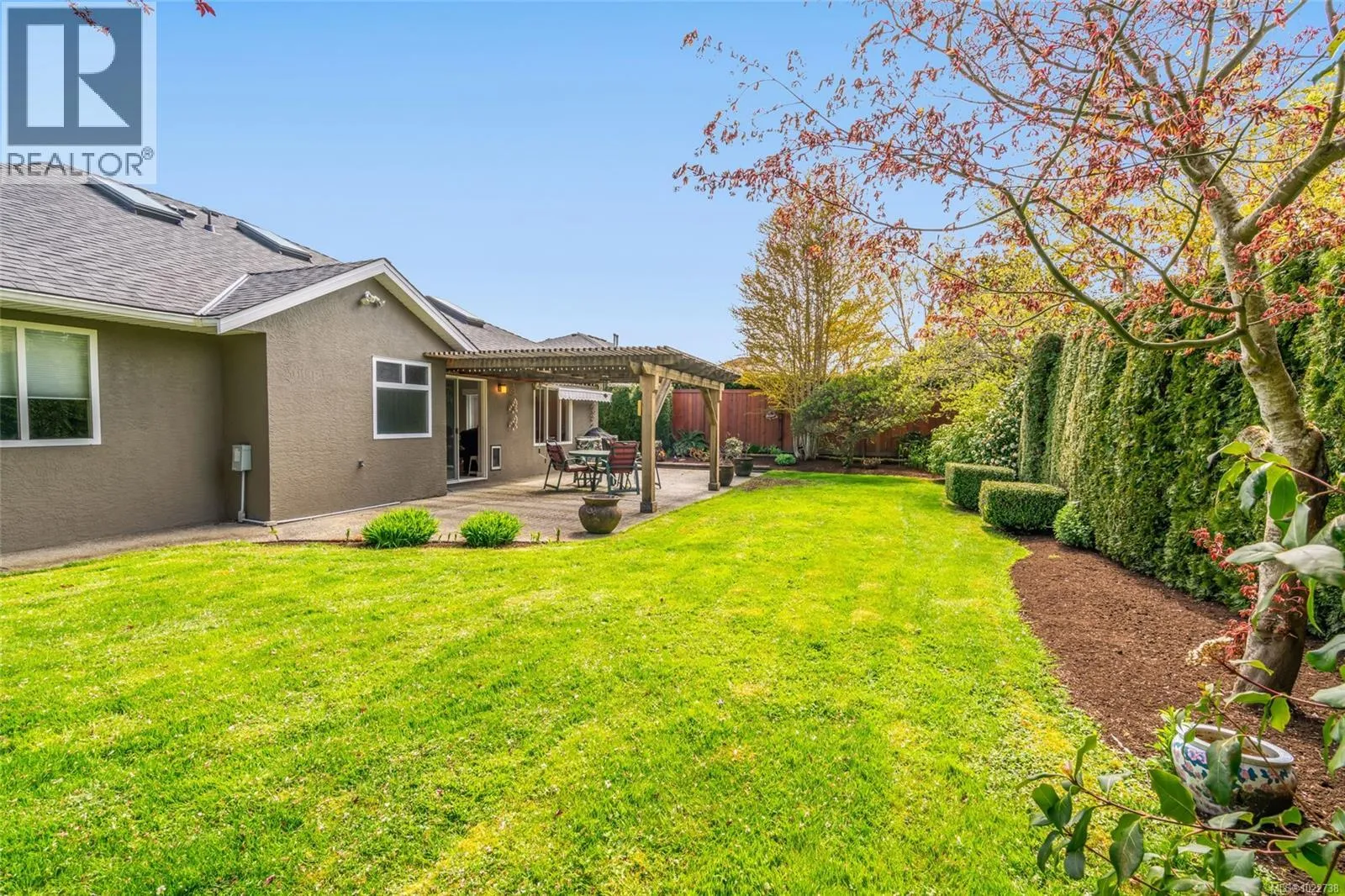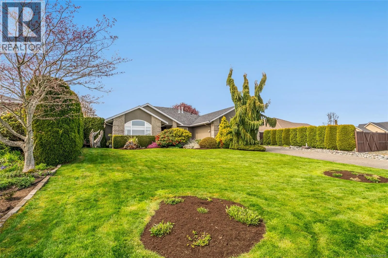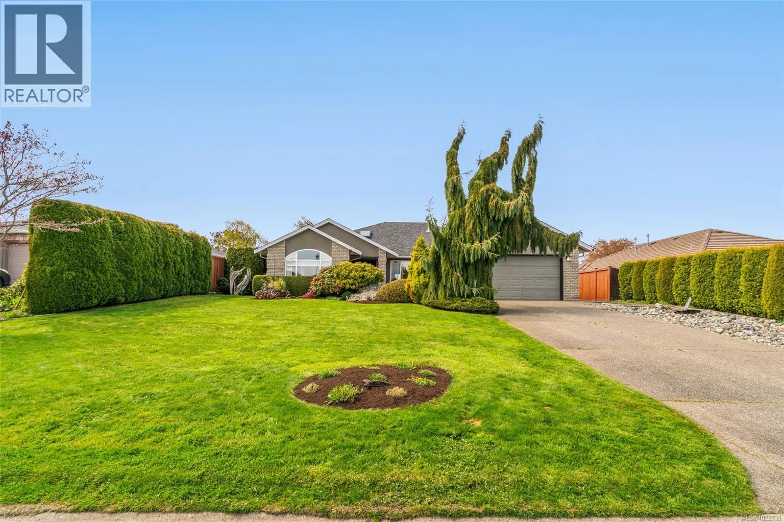 Discover this gorgeous, sun-filled Chartwell rancher featuring 3 spacious bedrooms and 2 luxurious baths. Thoughtfully updated with a newer 2 year old roof, Trane heat pump, fencing & tasteful lighting fixtures. This home sits on a beautifully landscaped .18-acre lot with a serene backyard garden. The formal living and dining areas flow into a gourmet kitchen with updated counters, backsplash, Bosch stainless steel appliances, and newer tile flooring, opening to a bright family room. Wood flooring, oversized windows with new coverings fill the space with natural light. The primary bedcroom boasts a walk-in closet and full ensuite. Enjoy a sunny patio, private yard, and heated double garage. Ideally located just minutes from Qualicum & Parksville, with easy access to golf courses, parks, trails, shopping, and essential amenities. For more details or to view this property, contact Lois Grant Marketing Services direct at 250-228-4567 or view our website at www.LoisGrant.com for more details. (id:27476)