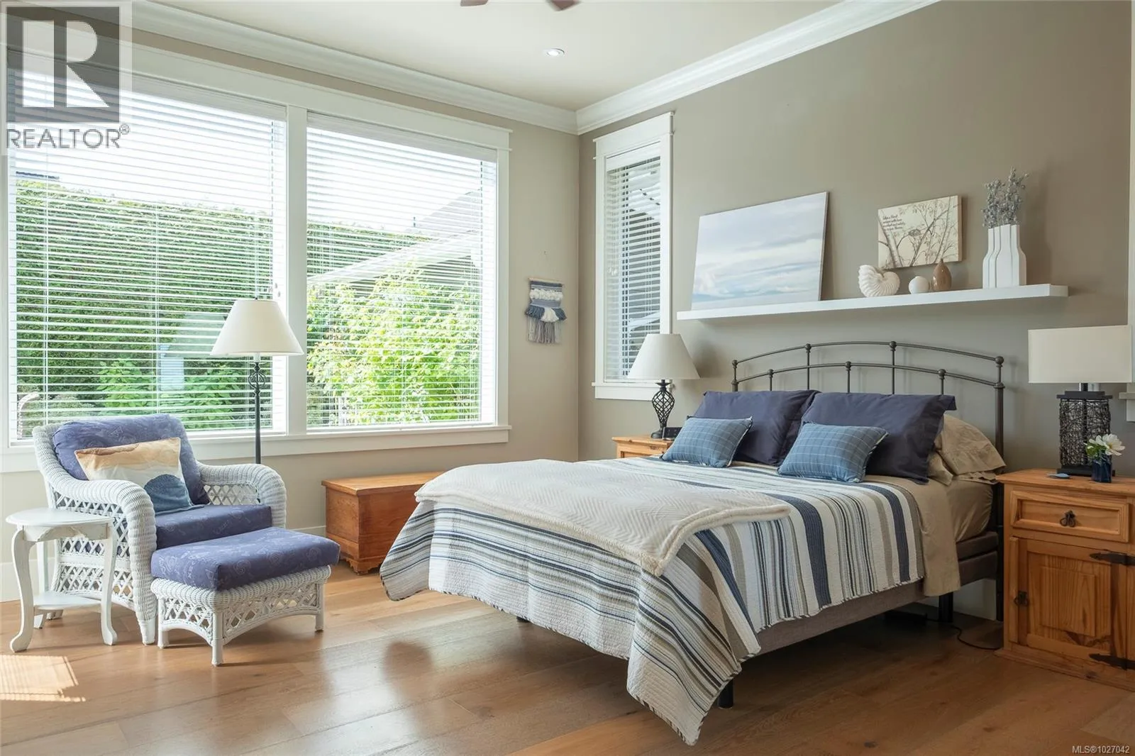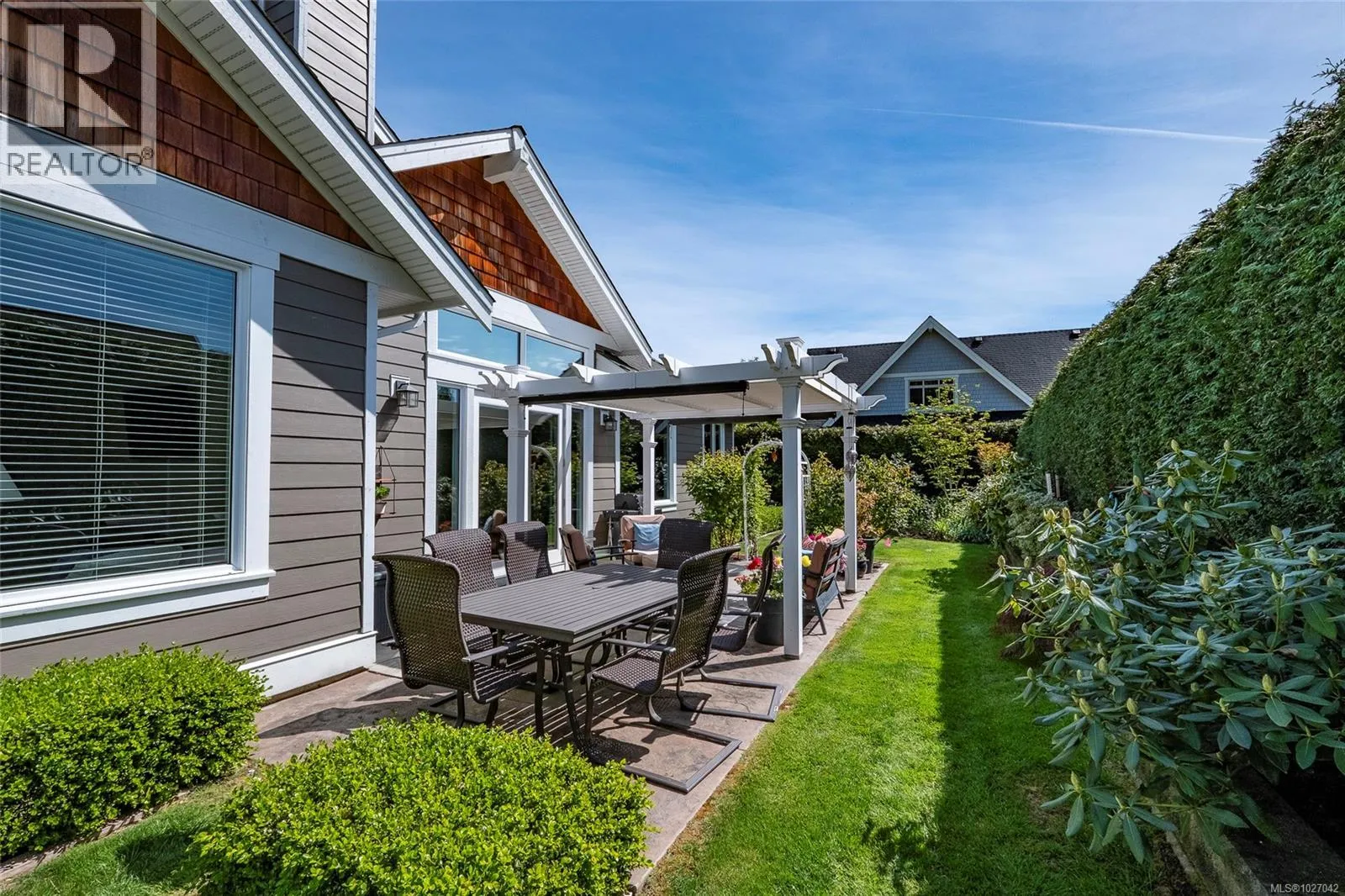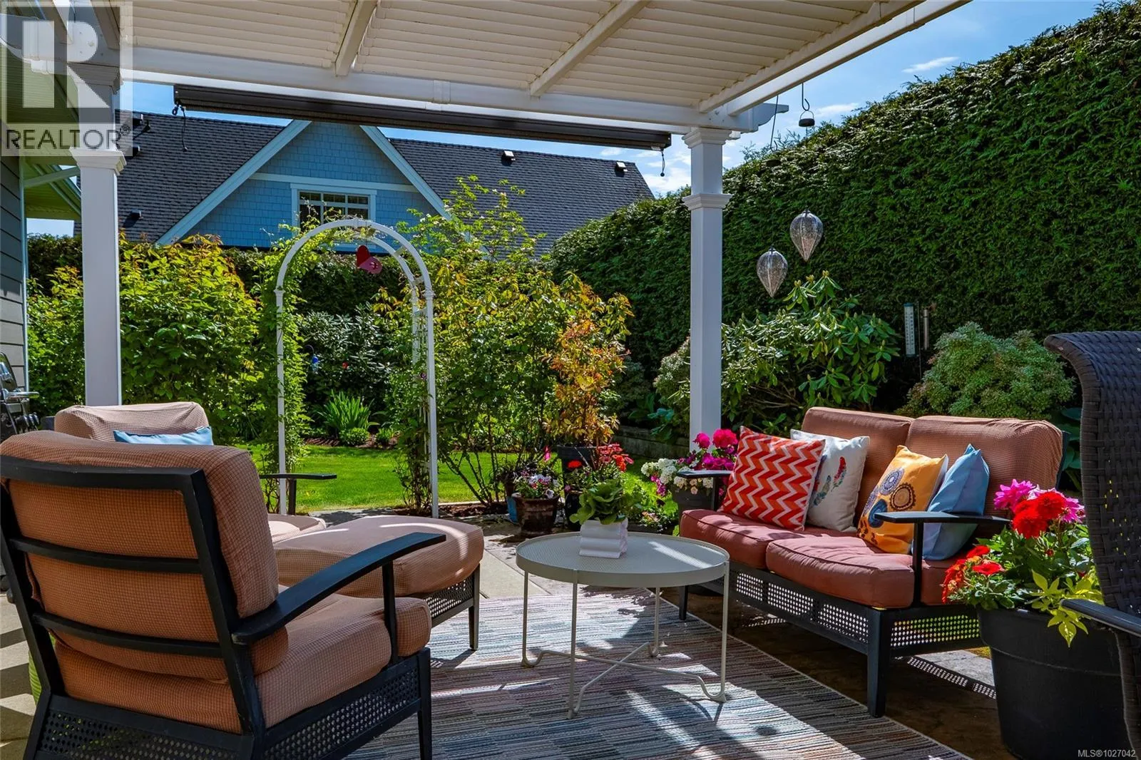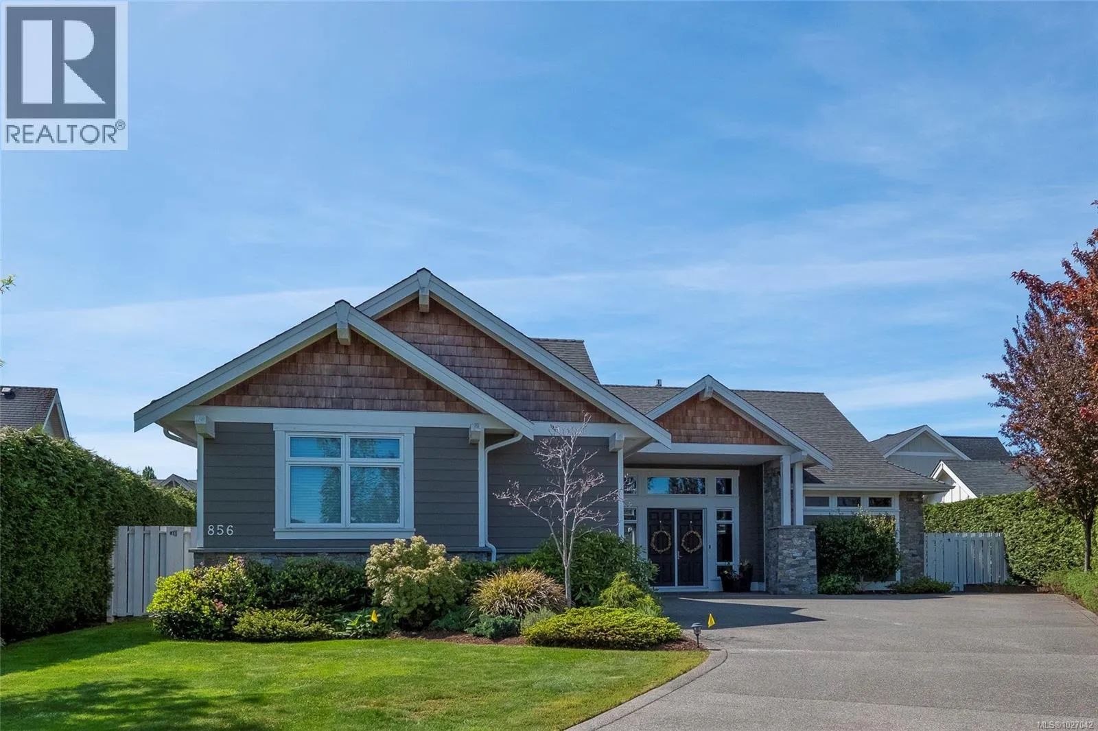 This exquisite custom-built rancher, completed in 2016, is nestled in an exclusive enclave of charming homes just steps from the beach. Boasting meticulous craftsmanship and high-end finishes, this residence offers luxury and comfort. Upon entering, you are greeted by an expansive open design with 11-foot ceilings. The chef's kitchen features a gas cooktop, double ovens, built-in microwave, an instant hot water tap, and a garburator. The home includes three spacious bedrooms and 2 ½ baths, with heated floors in both full bathrooms. For entertaining, there is a bar area with a wine fridge and a living room with a built-in entertainment center. Hardwood and ceramic floors add sophistication. The private garden offers sunny exposure and a sprinkler system. Additional features include HRV, a variable-speed heat pump, fire suppression sprinklers, hot water on demand, central vacuum, an oversized double garage, a garden shed, and phantom screens. 75'' TV in living room included in sale. (id:27476)
