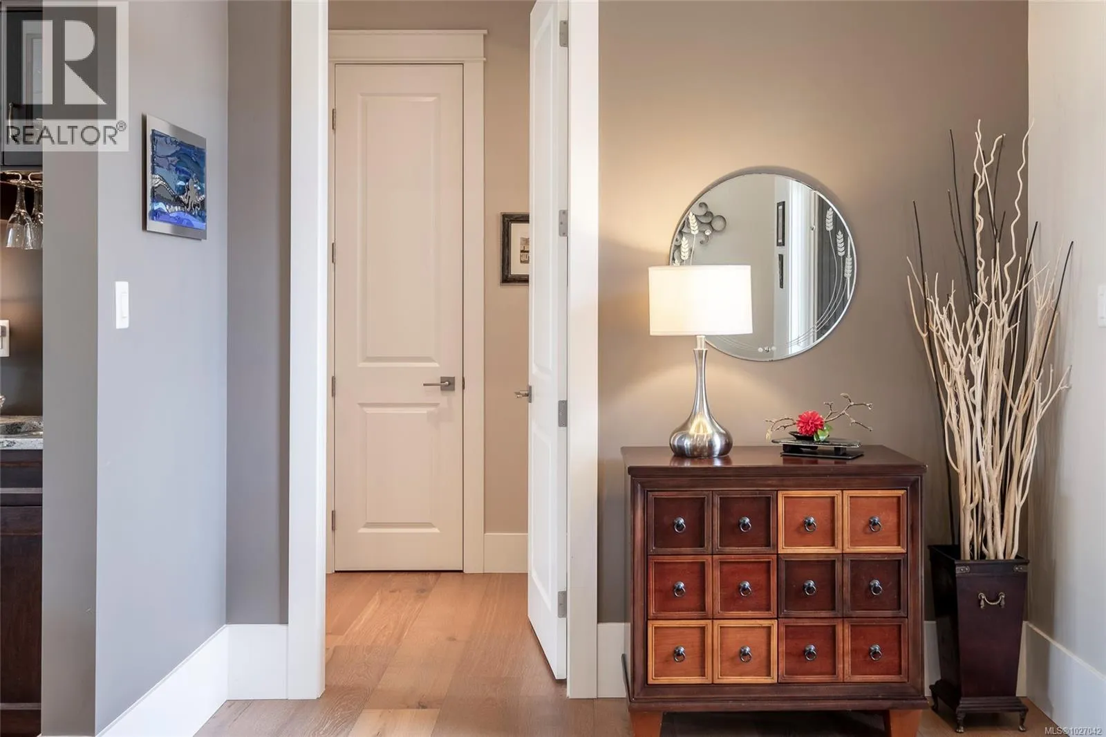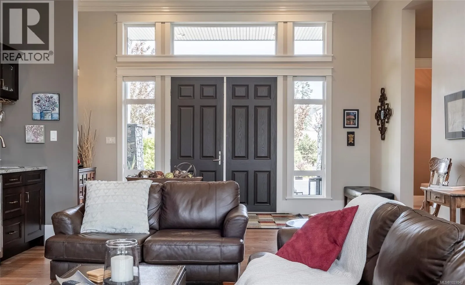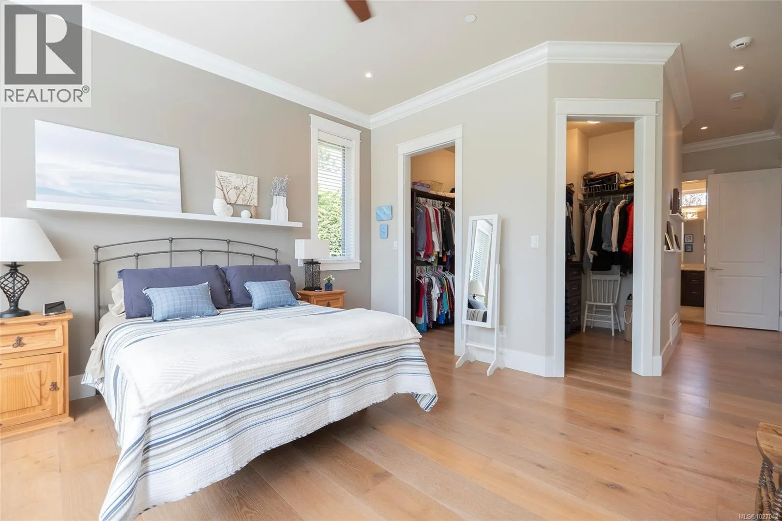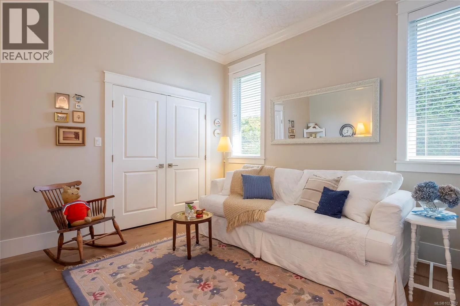 This exquisite custom-built rancher, completed in 2016, is nestled in an exclusive enclave of charming homes just steps from the beach. Boasting meticulous craftsmanship and high-end finishes, this residence offers luxury and comfort. Upon entering, you are greeted by an expansive open design with 11-foot ceilings. The chef's kitchen features a gas cooktop, double ovens, built-in microwave, an instant hot water tap, and a garburator. The home includes three spacious bedrooms and 2 ½ baths, with heated floors in both full bathrooms. For entertaining, there is a bar area with a wine fridge and a living room with a built-in entertainment center. Hardwood and ceramic floors add sophistication. The private garden offers sunny exposure and a sprinkler system. Additional features include HRV, a variable-speed heat pump, fire suppression sprinklers, hot water on demand, central vacuum, an oversized double garage, a garden shed, and phantom screens. 75'' TV in living room included in sale. (id:27476)