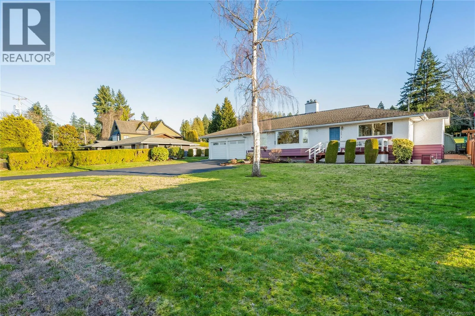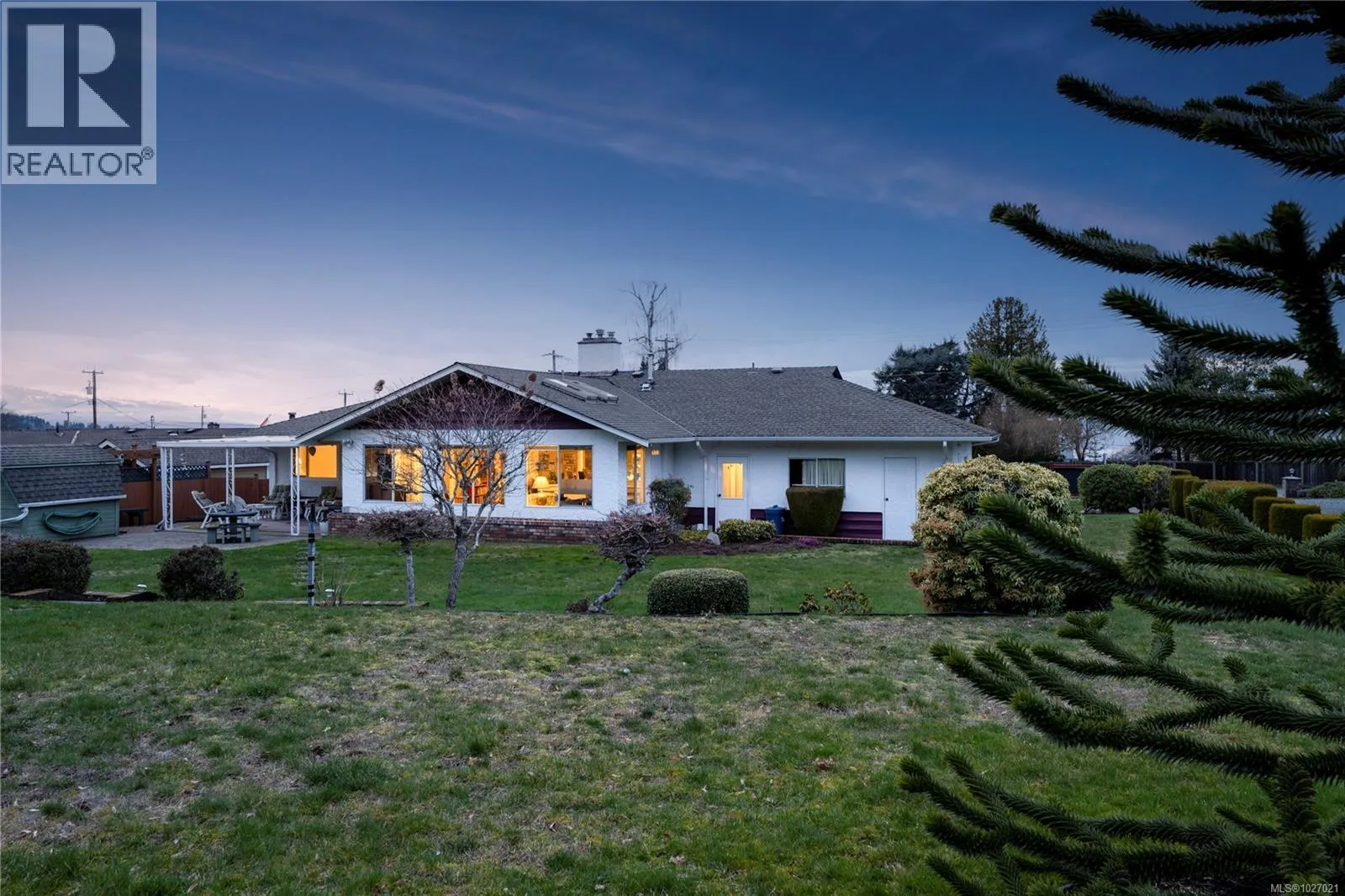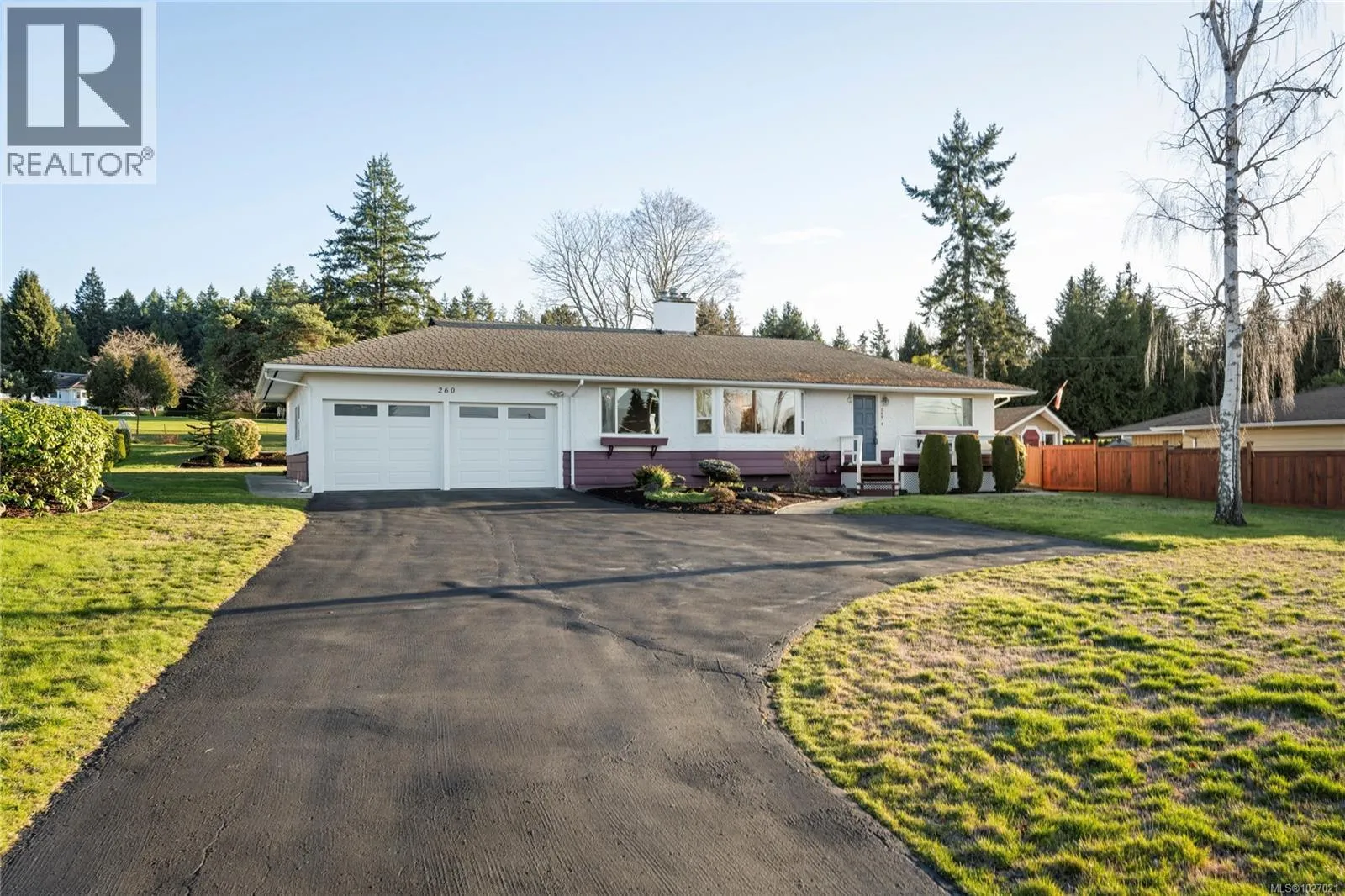 Welcome to this spacious 1,850 sqft rancher with exceptional views in a sought-after Qualicum Beach location. Set on a generous 0.43-acre lot backing directly onto the 7th tee of the Qualicum Beach Memorial Golf Course, this property captures sweeping ocean to coastal mountain views and stunning summer sunsets. Designed for easy one-level living, the home features a welcoming entryway with hardwood floors, a formal living and dining room ideal for entertaining, a large kitchen with maple cabinetry and walk in pantry, secondary living space with lots of space for an office & breakfast bar. The primary bedroom includes a 3-piece ensuite, while a spacious 4-piece main bath serves family or guests comfortably. Two natural gas fireplaces create warmth and ambiance, complemented by an efficient natural gas furnace. Step outside to enjoy the covered back patio overlooking the perfectly manicured yard and golf course beyond. Additional highlights include a double garage with brand new doors, a separate workshop for hobbies, and a new corrugated fence for privacy from the road. From your front porch, check the tide and take advantage of beach access directly across the street, all within a protected view corridor. A rare opportunity to secure a well-positioned rancher with golf course frontage, ocean views, and incredible outdoor space in one of Vancouver Islandâs most desirable seaside communities. Endless potential here..make a dream your reality! (id:27476)