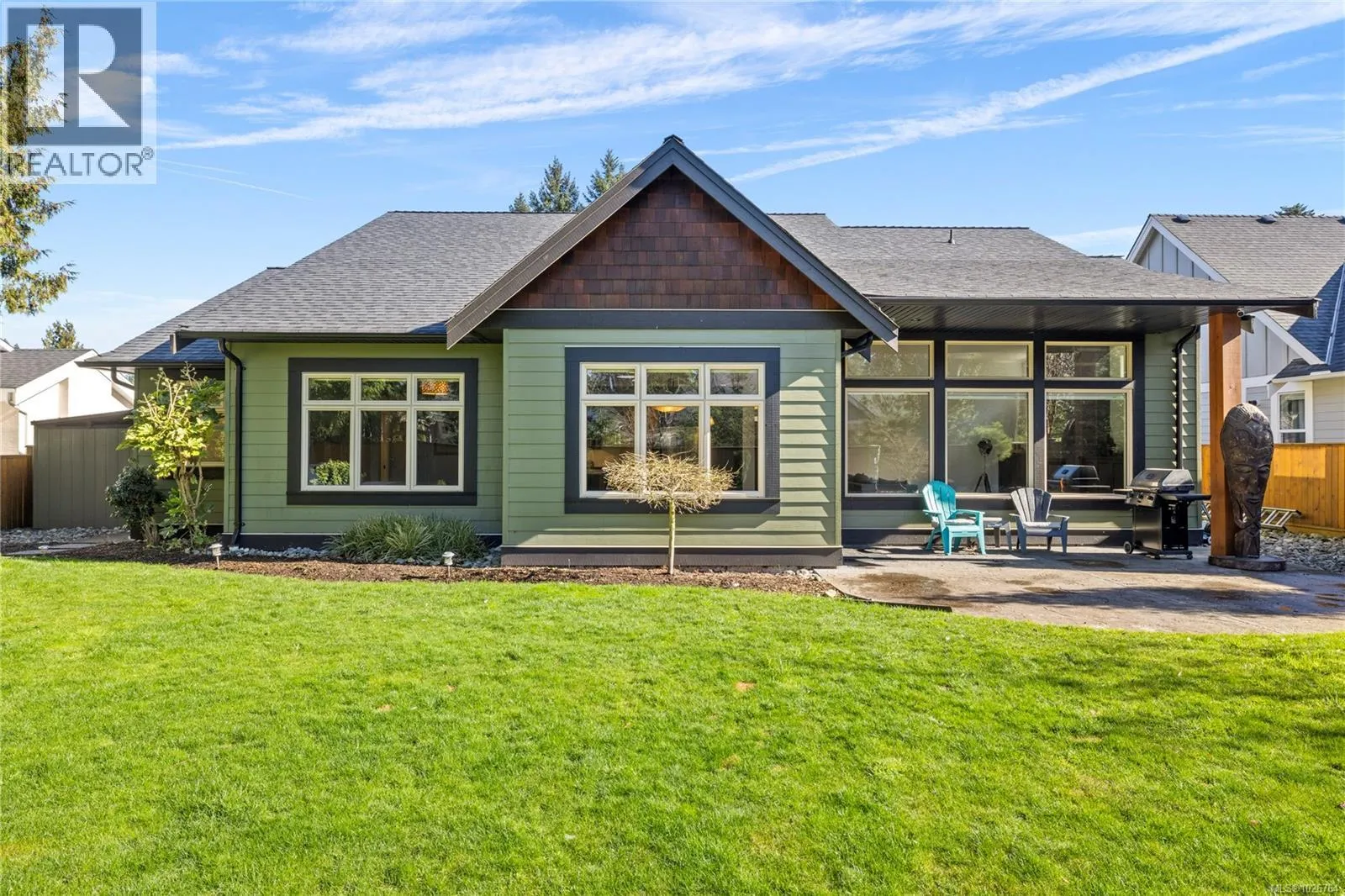 Eaglecrest Rancher at its finest! This exceptional 2,000+ sq ft rancher offers a thoughtfully designed, open layout that stands out for its comfort and functionality. Situated on a peaceful street and backing onto protected green space, this executive home is a short stroll to one of the communityâs most loved, sandy beaches. Custom built by the highly regarded KS Bate Construction, the home reflects superior quality and is crafted with refined finishes and millwork. The inviting great room (repainted) connects effortlessly to the private backyard and covered, stamped concrete patio, equipped with a gas hookup for a future fire pit. The spacious kitchen is complete with a generous island and pantry, while the great room has a dramatic floor-to-ceiling stacked, stone fireplace and custom cabinetry. The primary suite offers a peaceful escape with a luxurious ensuite, and spacious walk-in closet. The fully fenced, southwest backyard provides plenty of natural light, privacy, and space, while the front yard has gorgeous curb appeal. (id:27476)