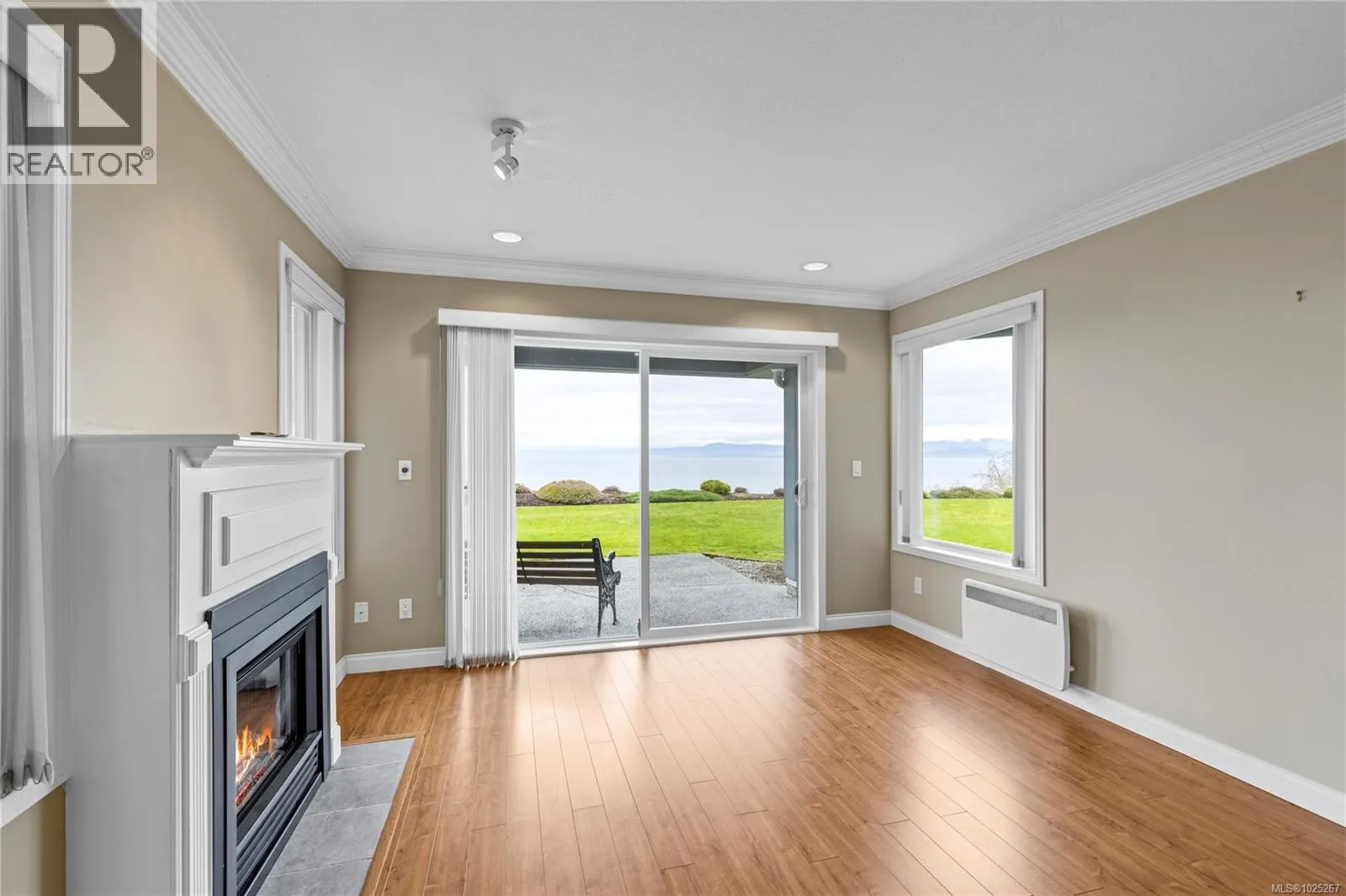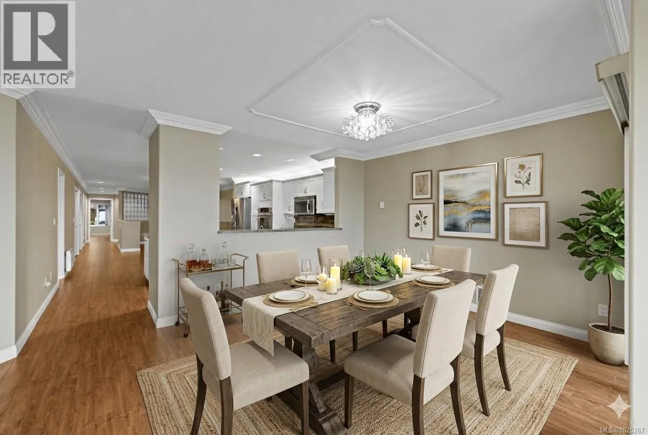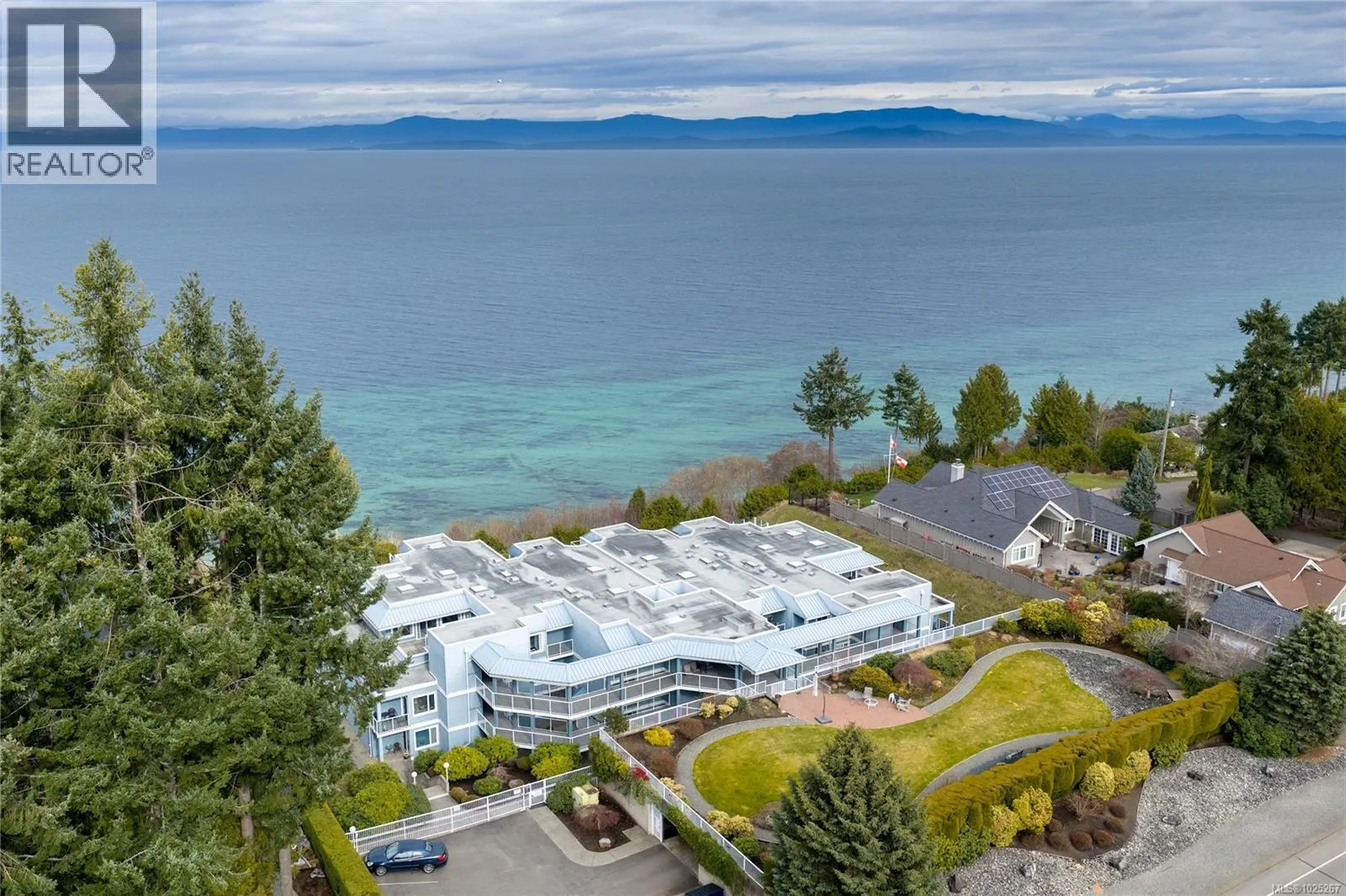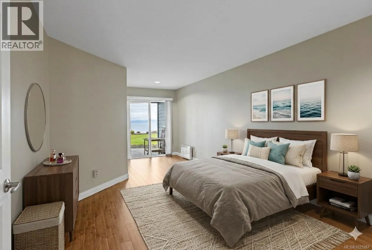 This beautiful 2-bedroom, 2-bathroom condo in The Crescent offers stunning panoramic views of the ocean and coastal mountains. Beautifully maintained, this home offers a spacious layout with lots of light and ocean views from the main living areas, patio, and primary bedroom. The generous kitchen features a large island and updated appliances, perfect for cooking and entertaining. The comfortable living room has a gas fireplace and large windows. The primary suite includes patio access, a walk-in closet, and a five-piece en-suite. Residents will enjoy one-level living within this gated 55+ community, which features a beautifully landscaped rooftop common garden area. Within walking distance to the beach, trails, golf, and shopping, this condo combines comfort, convenience, and breathtaking views in a prime Qualicum Beach location. Additional conveniences include a private storage area near the unit entrance and underground parking. (id:27476)