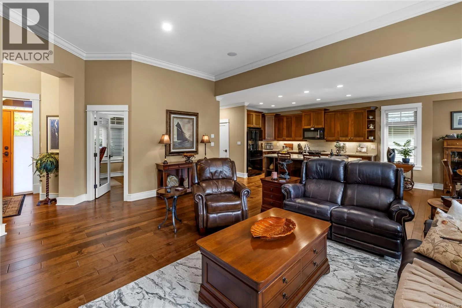 Executive Living in Eaglewood! Welcome to this beautifully appointed single-level detached executive townhome in the highly desirable Eaglewood community. Perfectly situated just off prestigious Pintail Drive and mere steps to Qualicumâs most stunning sandy beach, the location is second to none. This thoughtfully designed home offers 3 bedrooms, with one currently being used as a lovely den, and 2 bathrooms, including a spacious primary ensuite with a soaker tub and separate shower. The open-concept layout highlights a fabulous great room featuring custom milled cabinetry, floating shelves, and a cozy ambiance with a gas fireplace. The island kitchen, complete with a dedicated dining area, is ideal for both everyday living and entertaining. Extensive updates bring added comfort and style: hardwood floors throughout, crown mouldings, upgraded lighting, built-in sound in the great room, den, and bathrooms, plus an epoxy-finished garage floor with a hot/cold frost-free tap. Outdoors, a very private back patio invites you to relax and unwind in a serene setting. This is an exceptional opportunity to enjoy a refined lifestyle in one of Qualicum Beachâs most sought-after communities. (id:27476)