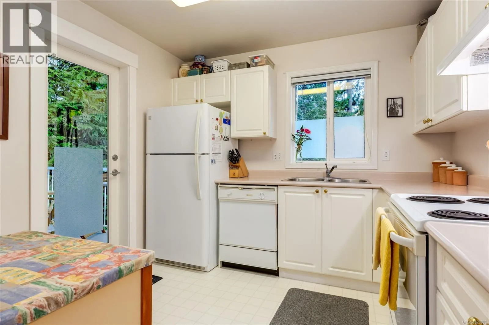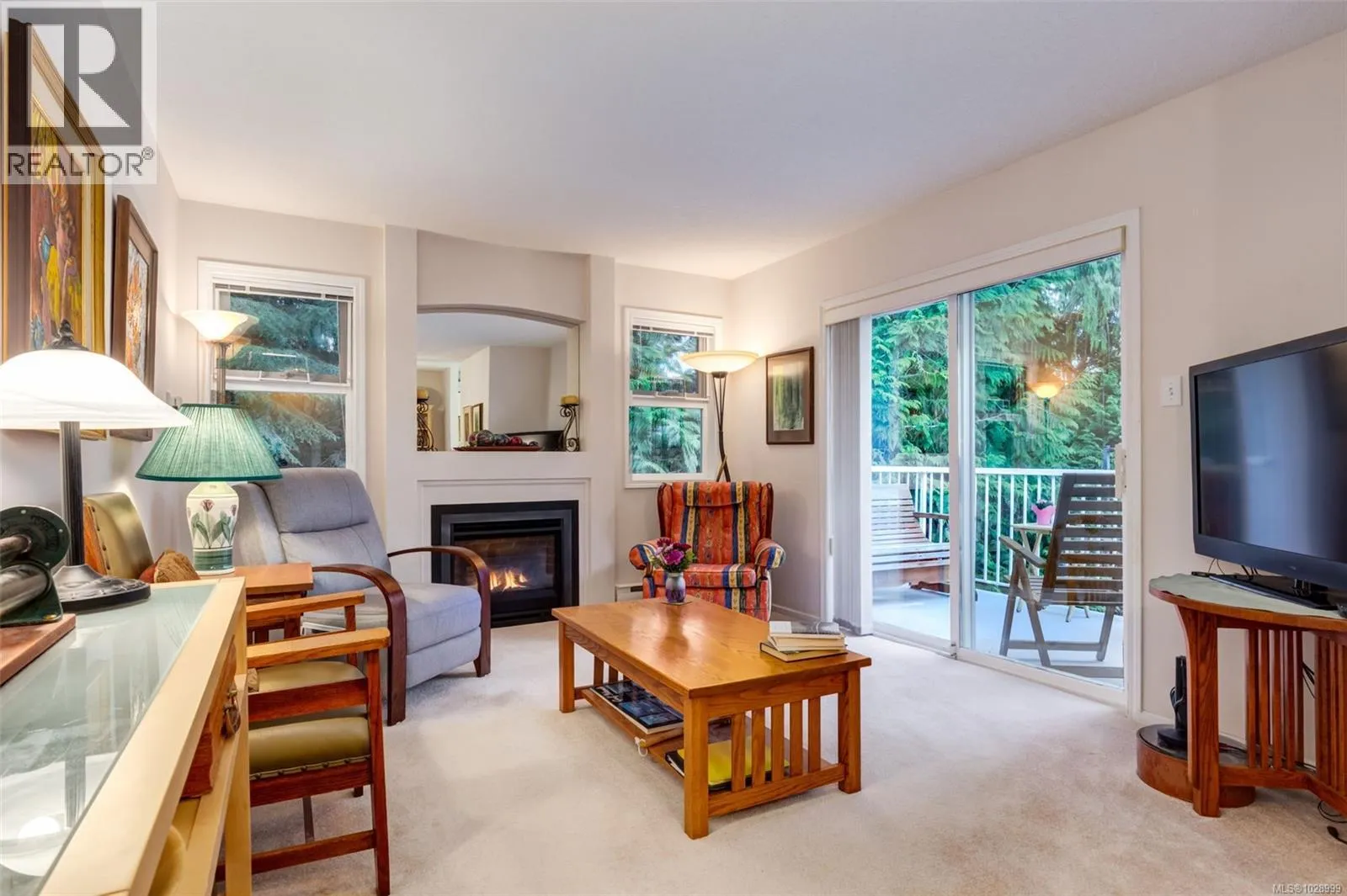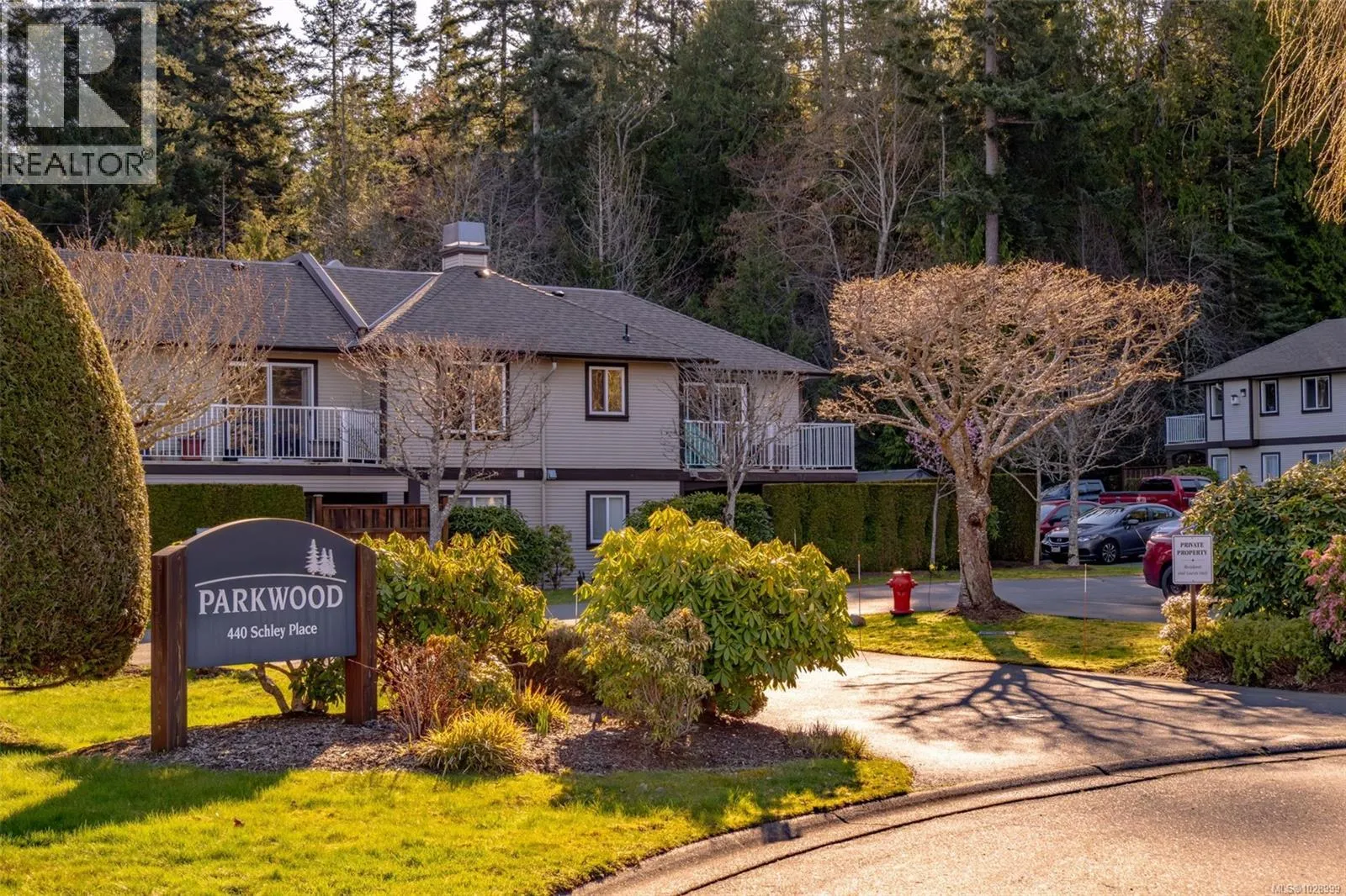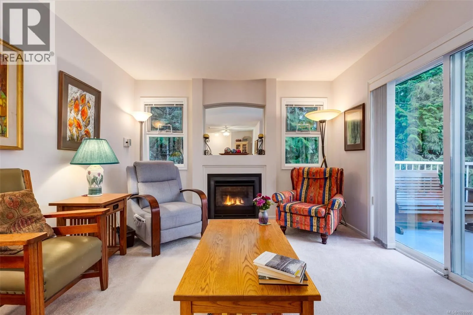 Welcome to Parkwood! This well-maintained, top-floor corner unit offers unmatched privacy and a bright, airy interior bathed in natural light from skylights. The spacious 2-bedroom, 2-bathroom layout features a cozy living area with a natural gas fireplace and a primary suite complete with a walk-through closet and ensuite. Enjoy ultimate peace of mind with a brand-new hot water tank, alongside the convenience of in-suite laundry, a large storage locker, and a private balcony overlooking lush gardens and mature trees. Perfectly situated in a highly desirable, well-managed building that provides secure entry and elevator access near bus routes, you are just steps from the Ravensong Wood trails leading directly to the village for shopping, dining, and the aquatic centre, or a short, easy stroll to the ocean. Ample resident and visitor parking is available; please verify all data and measurements if important to the purchase. (id:27476)