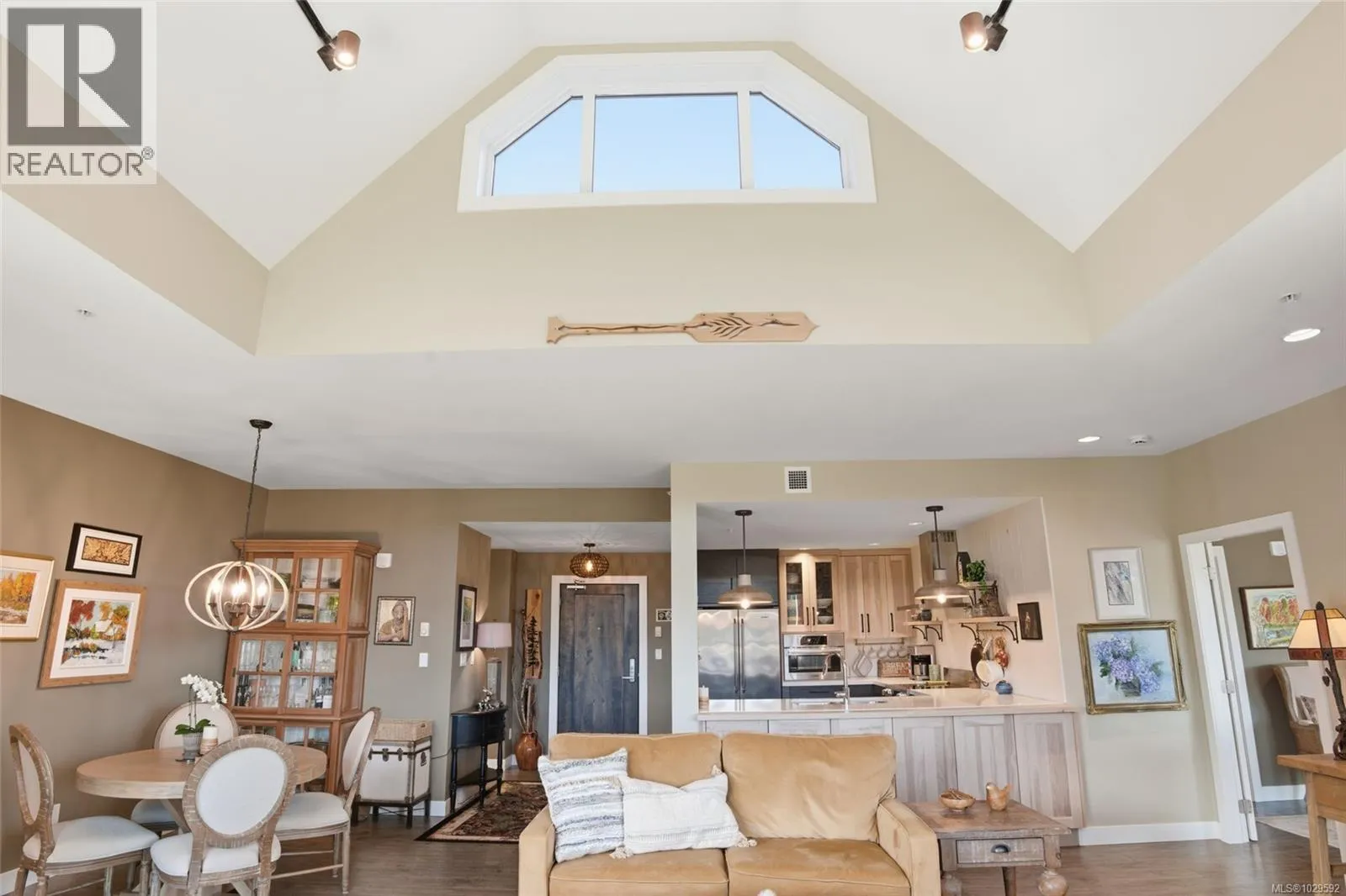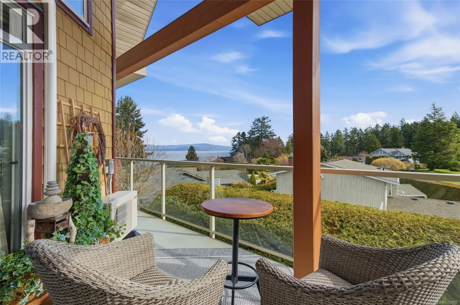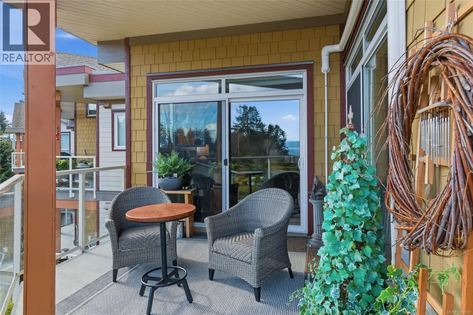Top Floor Qualicum Beach Condo with Ocean Views! Enjoy captivating views of Qualicum Beach and the picturesque Strait of Georgia from this airy and well-appointed 2 Bed/2 Bath Executive Condo, boasting expansive picture windows, stylish architectural detailing, and quality finishes, great separation between the Bedrooms, and in-unit laundry. A large wrap-around balcony showcases panoramic views of Qualicum Beach and the ocean, as well as Lasqueti and Texada Islands. 'Cambridge Manor' welcomes all ages, allows pets, and features secure entry plus elevator access. Included is one UG parking space and a storage locker, and you are just a short stroll away from the beach and moments from the Village Center. A front door with a keyless touchpad opens to a stunning Great Room combining Kitchen, Living, and Dining Areas, featuring varied ceiling heights, quality laminate flooring, and a mini-split heat pump for year-round comfort. The Gourmet Kitchen offers quartz countertops, vertical shiplap walls, wood cabinetry with display shelving, and premium stainless appliances, including a âBoschâ microwave and âDacorâ fridge and range with a sleek hood fan. The Dining Area offer room for a china cabinet, while the Living Room features an electric fireplace, vaulted ceiling, clerestory windows, and a ceiling fan. A sliding door leads to a covered wrap-around balcony with beautiful views of the Strait of Georgia, Lasqueti, and Texada Islandsâideal for morning coffee, relaxing afternoons, or sunset dining. The spacious Primary Suite has balcony access, a ceiling fan, walk-in closet, and a 5-piece ensuite with heated travertine floors, soaker tub, and glass shower. A second Bedroom offers balcony access, and completing the home are a 4-piece Main Bath and a Laundry Room with sink and cupboards. This captivating Condo offers mid-eastern Vancouver Island living at its very best! Visit our website for more info. (id:27476)