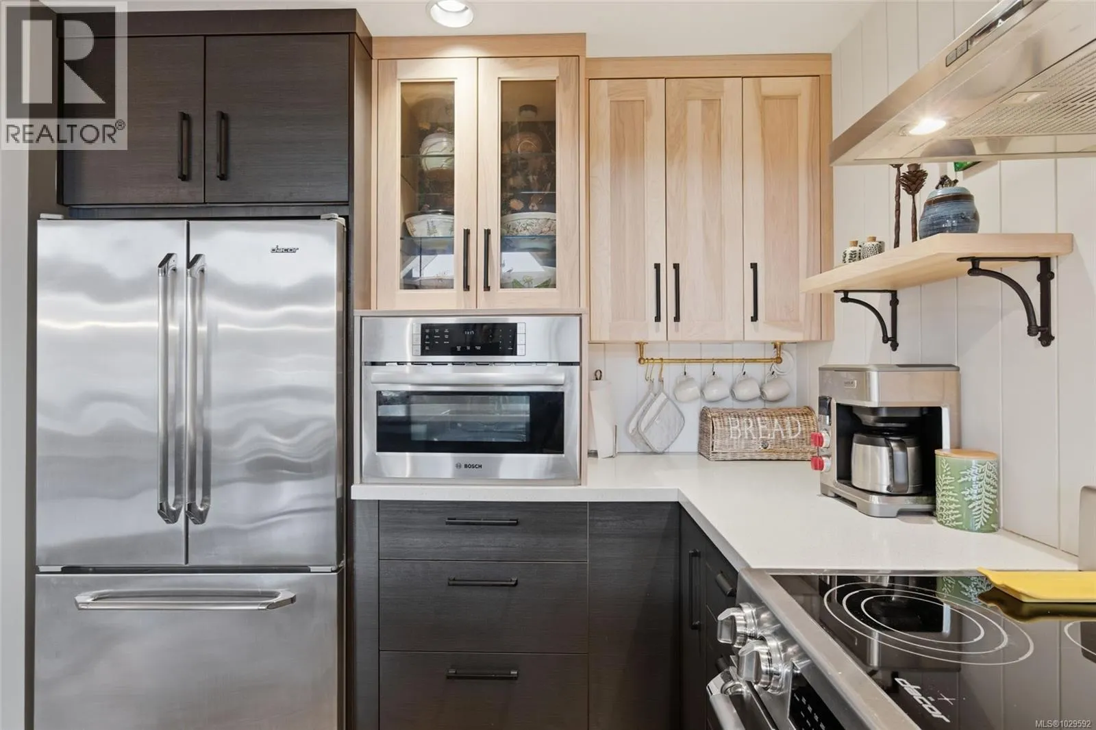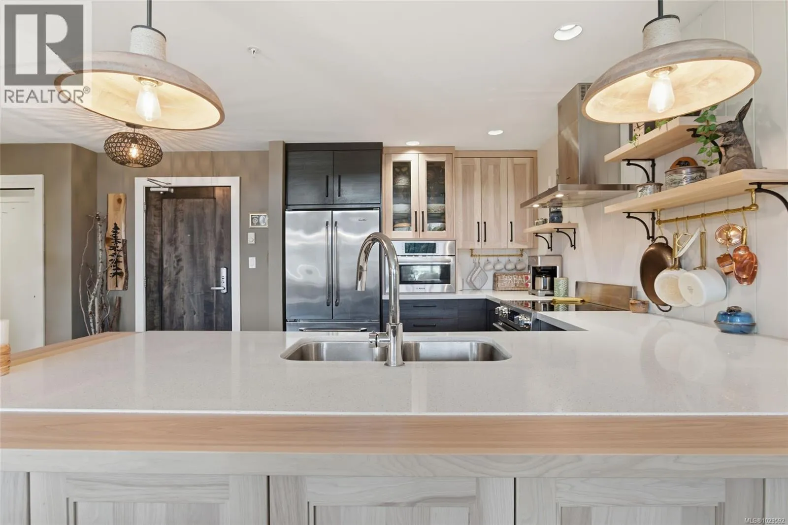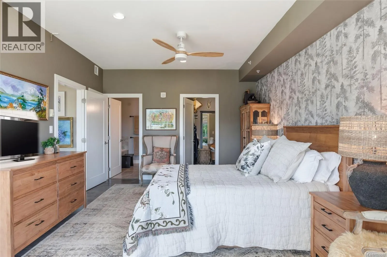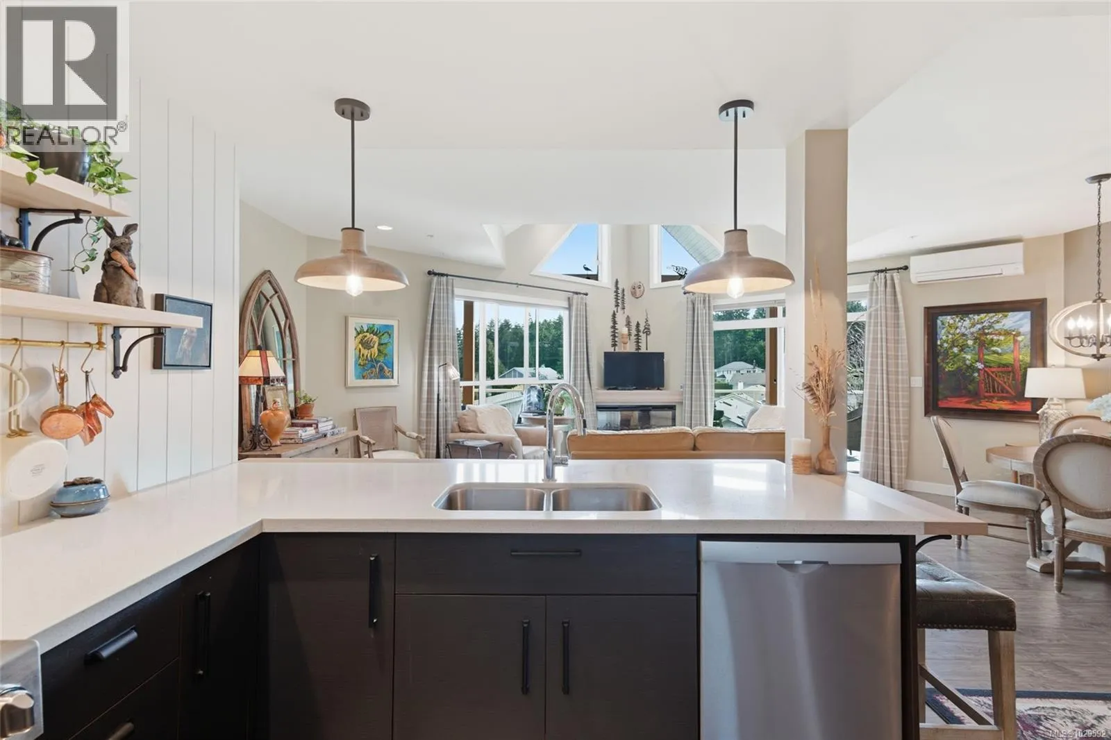 Top Floor Qualicum Beach Condo with Ocean Views! Enjoy captivating views of Qualicum Beach and the picturesque Strait of Georgia from this airy and well-appointed 2 Bed/2 Bath Executive Condo, boasting expansive picture windows, stylish architectural detailing, and quality finishes, great separation between the Bedrooms, and in-unit laundry. A large wrap-around balcony showcases panoramic views of Qualicum Beach and the ocean, as well as Lasqueti and Texada Islands. 'Cambridge Manor' welcomes all ages, allows pets, and features secure entry plus elevator access. Included is one UG parking space and a storage locker, and you are just a short stroll away from the beach and moments from the Village Center. A front door with a keyless touchpad opens to a stunning Great Room combining Kitchen, Living, and Dining Areas, featuring varied ceiling heights, quality laminate flooring, and a mini-split heat pump for year-round comfort. The Gourmet Kitchen offers quartz countertops, vertical shiplap walls, wood cabinetry with display shelving, and premium stainless appliances, including a âBoschâ microwave and âDacorâ fridge and range with a sleek hood fan. The Dining Area offer room for a china cabinet, while the Living Room features an electric fireplace, vaulted ceiling, clerestory windows, and a ceiling fan. A sliding door leads to a covered wrap-around balcony with beautiful views of the Strait of Georgia, Lasqueti, and Texada Islandsâideal for morning coffee, relaxing afternoons, or sunset dining. The spacious Primary Suite has balcony access, a ceiling fan, walk-in closet, and a 5-piece ensuite with heated travertine floors, soaker tub, and glass shower. A second Bedroom offers balcony access, and completing the home are a 4-piece Main Bath and a Laundry Room with sink and cupboards. This captivating Condo offers mid-eastern Vancouver Island living at its very best! Visit our website for more info. (id:27476)