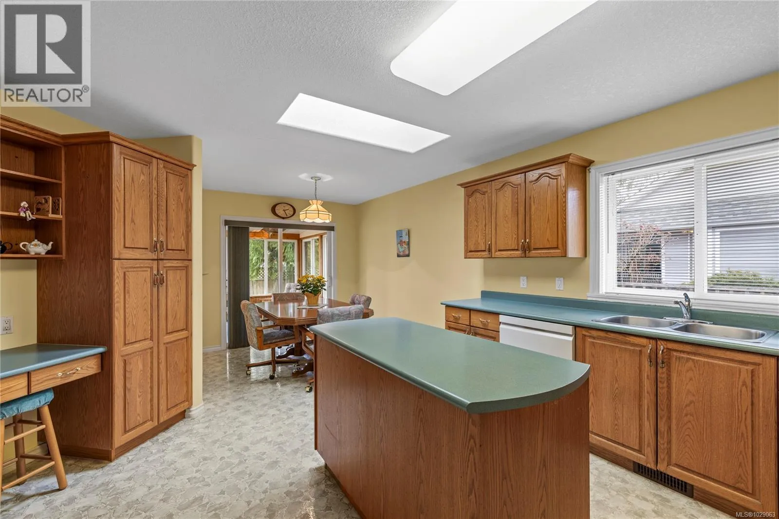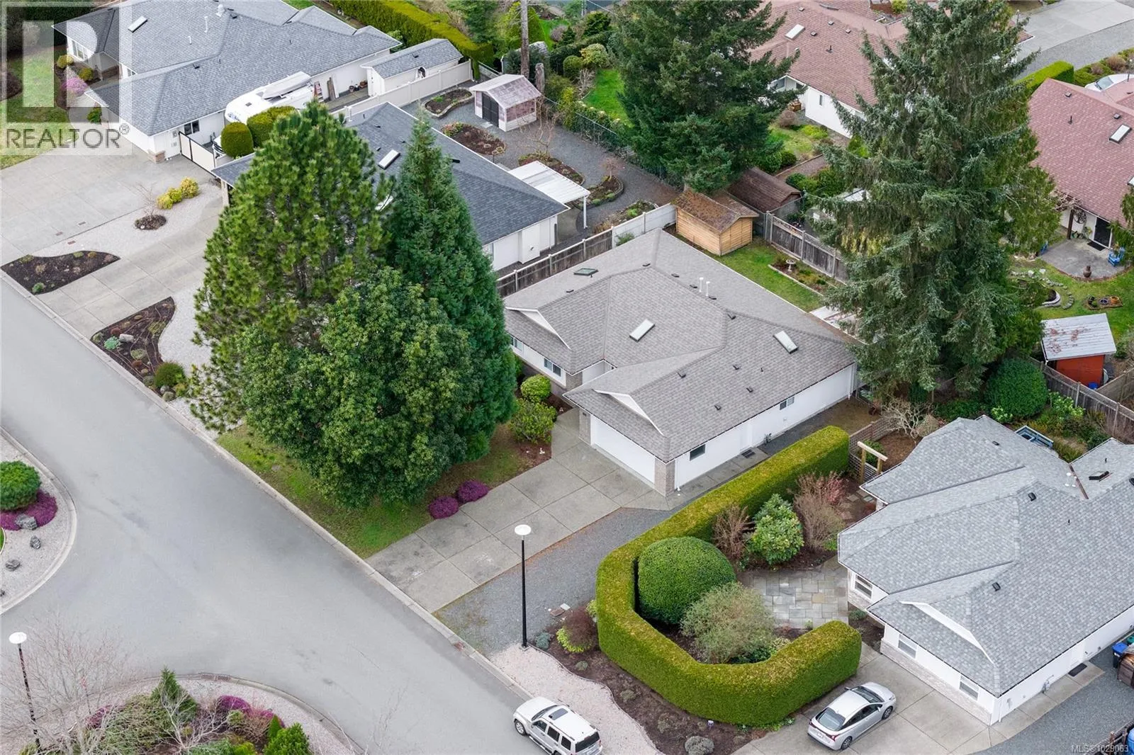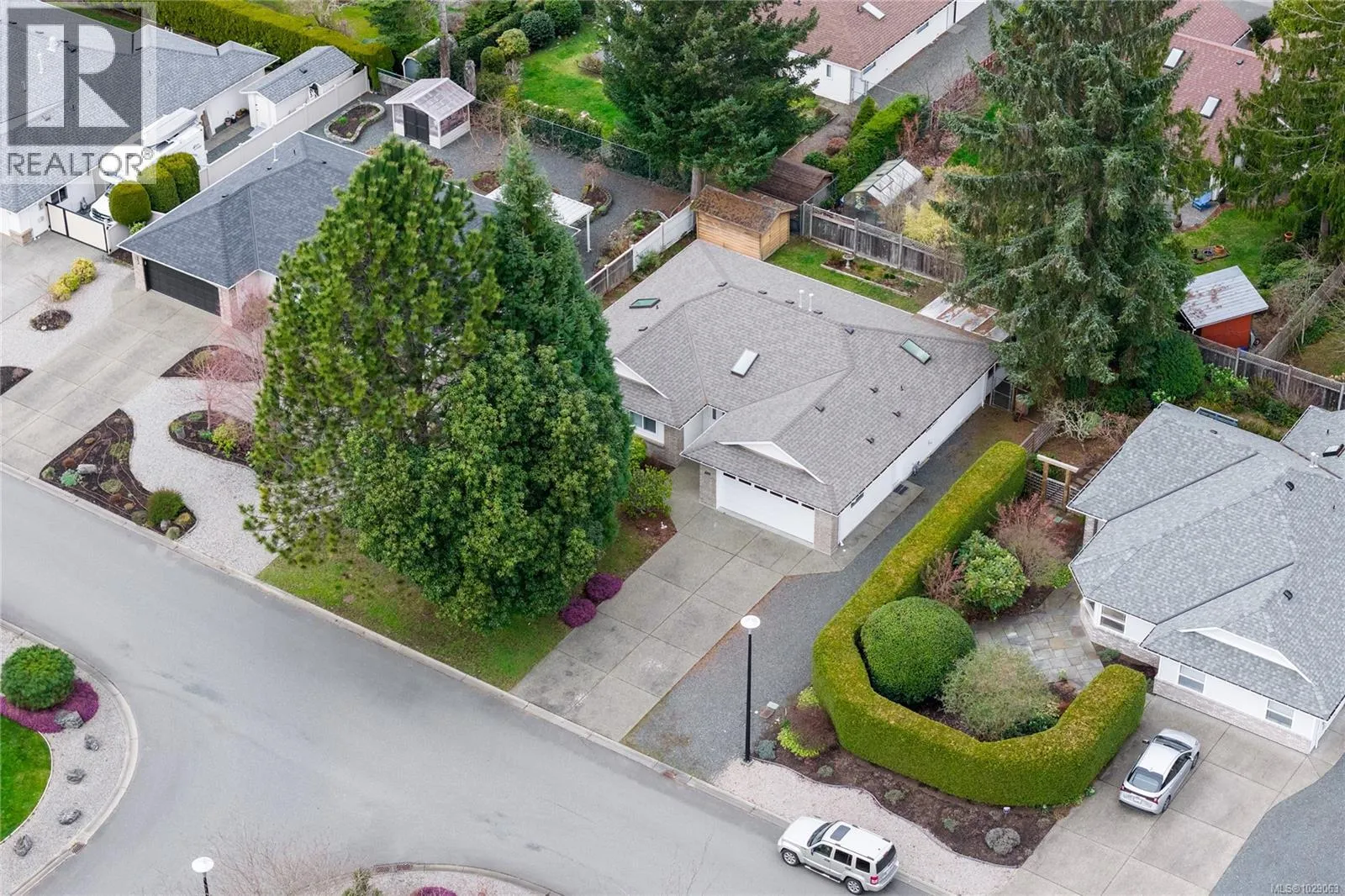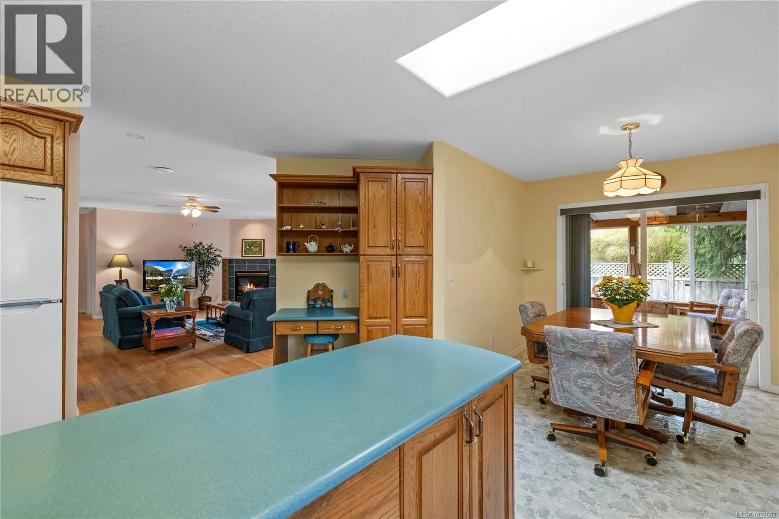 Brand New Roof on this cute, 1570sf, crawlspace Rancher in Qualicum Beach! New HRV & HW tank as well, so all the heavy lifting has been done. The expansive kitchen, with a central island & skylight, is open to a pretty dining area & an attractive sunroom beyond. The North facing sunroom, w/windows on 3 sides & 2 skylights above, makes for a bright reading room, workplace or quiet spot for a cup of tea. A sliding door gives easy access to the back deck & garden. Located well away from the 2 other BRs, is the spacious Primary BR, with walk through closets to a 3pc bath, with yet another skylight. The living room can house a formal dining area or not, has hardwood flooring & a lovely gas fireplace in the corner. Good access from here to the back deck & garden as well. A wonderful neighbourhood for walking or biking, easy access to the Community Park, forest trail around the corner & the Rodway Trail at the end of Arbutus leads to The Shady Rest & the sandy swimming Beach! RV parking too! (id:27476)
