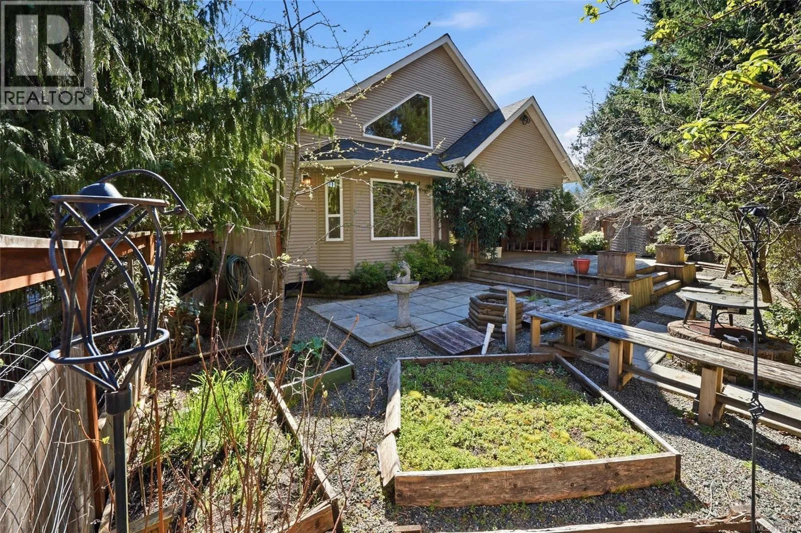 Charming LQRV Country Home with Detached Shop! Perfectly located in the gated rural community of Little Qualicum River Village, just 20 minutes from Qualicum Beach, this spacious and bright West Coast-style home sits on a low-maintenance .18-acre lot. This charming home offers main level living including 3 Beds and 2.5 Baths. Sunny south-facing windows fill the home with natural light, while quality woodwork adds warmth and character. Enjoy multiple decks and a patio for outdoor living, mountain views, a detached Garage/Workshop, parking for vehicles and RV, and a small garden area. From a sunny front deck with southern exposure, a front door opens to a tiled foyer. The Great Room blends the Kitchen, Living, and Dining areas. The Living Room features a bay window with clerestory above, a vaulted two-storey ceiling, a propane fireplace, and 'wood-finish' vinyl flooring. The Kitchen offers maple cabinetry with crown molding, ample counter space, inset lighting, a pantry closet, tile flooring, and stainless steel appliances. The Dining Room opens to a spacious second deck for outdoor living. A covered BBQ area with decorative wood panels allows year-round use. One side extends to a sunny deck with a sunburst fence detail, while the other leads to a concrete patio with firepit. The fenced yard is framed by gardens and mature evergreens. The main level includes a Primary Bedroom with a double closet and 2-piece ensuite, a second Bedroom, a 4-piece Bath with tub/shower combo, and a laundry closet. Upstairs is a loft-style 3rd Bedroom/Flex Room, ideal for guests, office, or studio. It includes vaulted ceilings, a 4-piece Bath, walk-in closet, and a covered west-facing balcony with mountain views. Short stroll to Little Qualicum River, close Little Qualicum River Falls Park, short drive to Parksville and North Nanaimo shopping. Visit our website for more info. (id:27476)