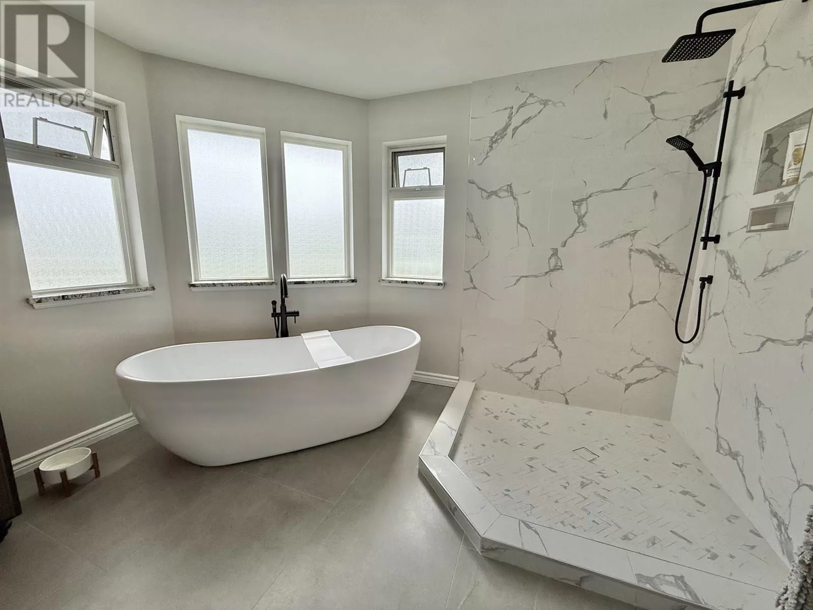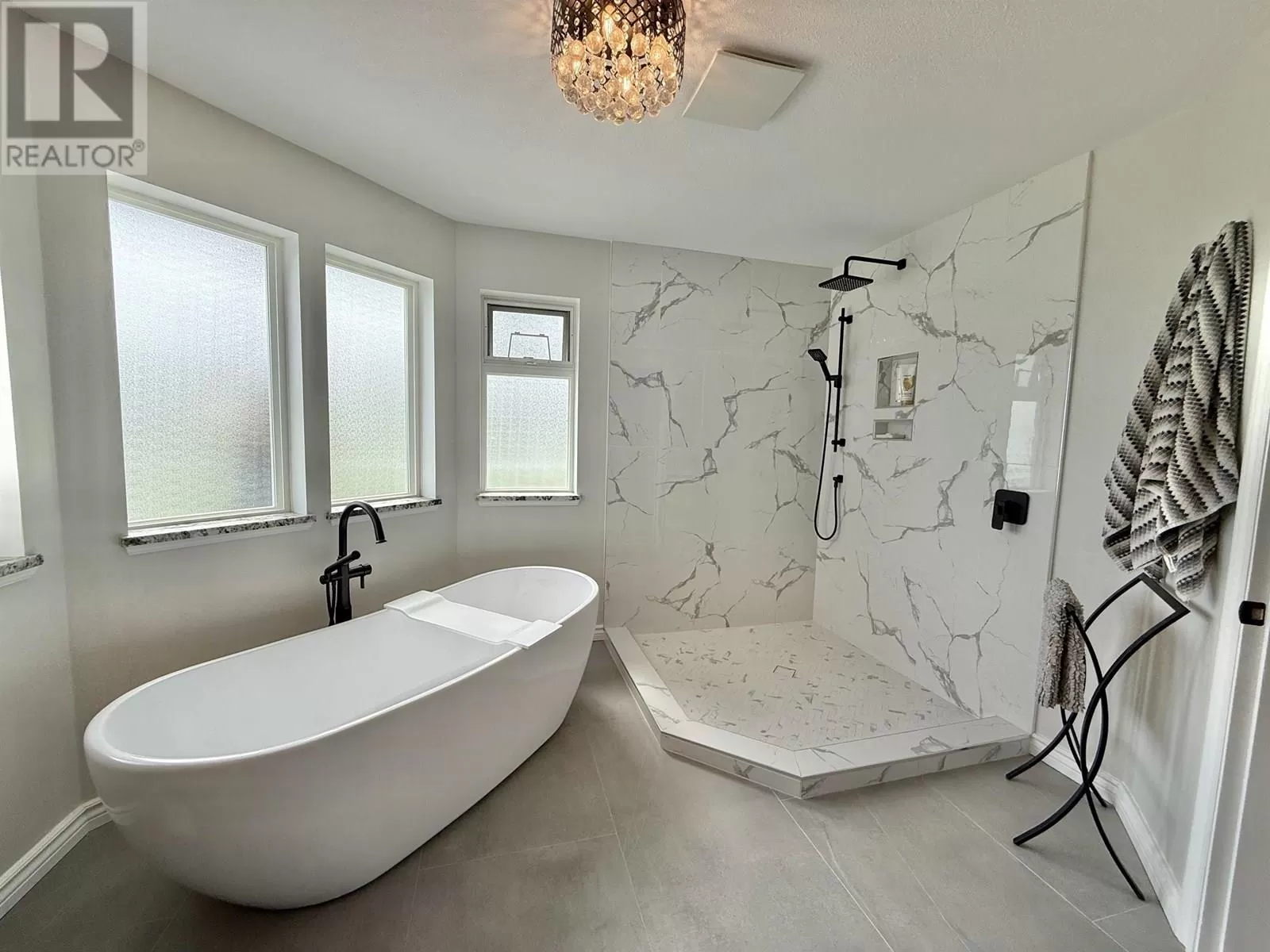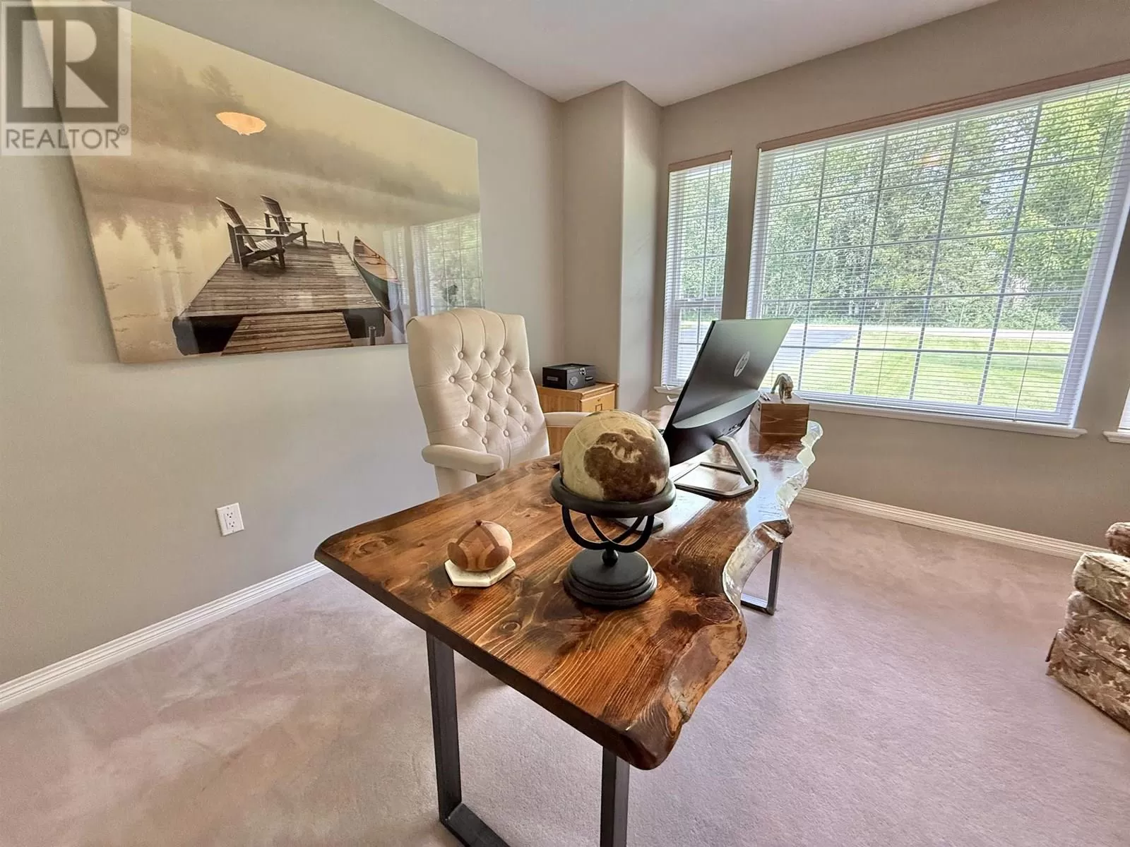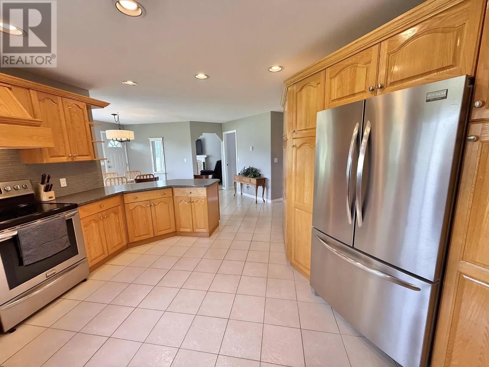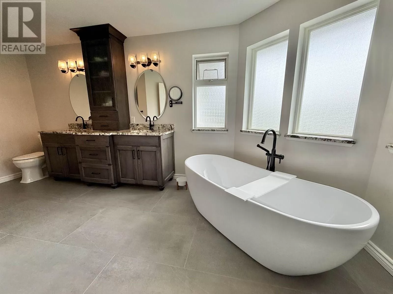 * PREC - Personal Real Estate Corporation. Beautiful executive 5-bedroom, 2.5-bath home backing onto the 11th hole at Quesnel Golf Club! The stunning primary bdrm features a private sundeck & a luxurious ensuite with a standalone soaker tub, double vanity, and walk-in marble-tiled shower. Enjoy the comfort of in-floor heating throughout the home (including the triple bay garage), plus natural gas fireplaces in both the living and family rooms. A grand 17-ft ceiling, with curved staircase, greets you in the impressive entryway. The spacious oak kitchen includes an eating nook, complemented by a separate formal dining area. Additionally you will find lots of newer fixtures & in-ground sprinklers. There is also a covered patio in your landscaped backyard. All set on a 0.5-acre lot in one of Quesnelâs most desirable neighbourhoods. (id:27476)