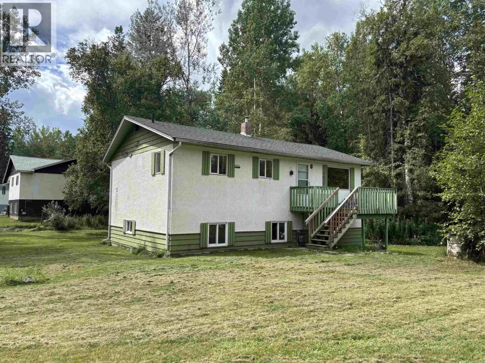MINUTES SOUTH OF QUESNEL RED BLUFF AREA! Great starter home featuring beautiful 0.61 acre corner lot, Spacious kitchen with eating area and lots of cupboards. Spacious living room with door out to 14x8.6 deck for entertaining. Two bedrooms up and one down. All new water system recently done/paperwork on file. Laundry upstairs and back door off to small deck. Four piece bathroom up. Family room down and utility room. Basement entry with work shop attached. Needs some loving. A great start. (id:27476)