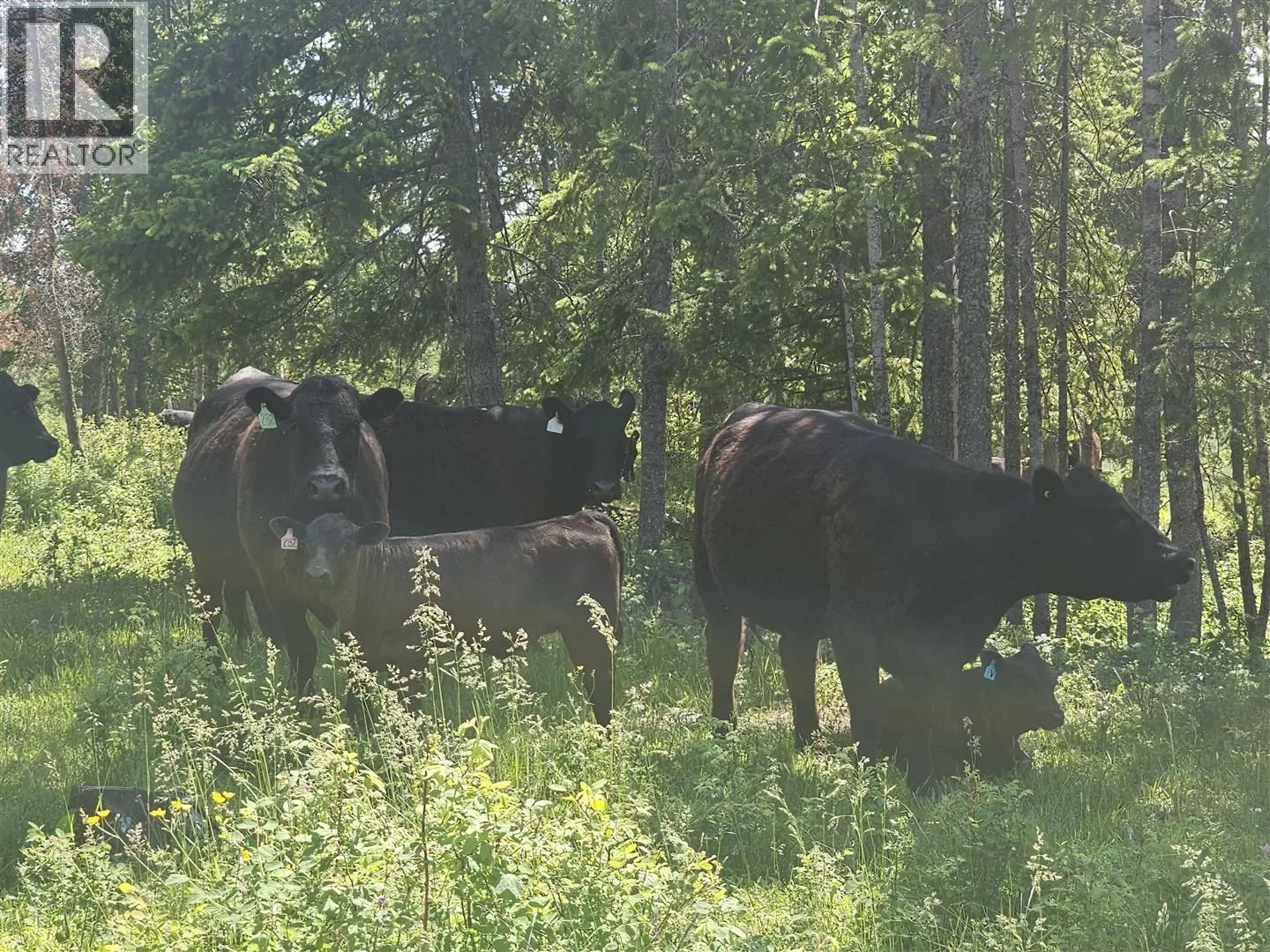 The "52 North Ranch" is a 466-acre ranch in 2 titles just 10 mins south of Quesnel, BC, convenient paved access close to amenities, making it ideal for combining town work with a ranching life. 120 acres of hay land, producing 250-300 tonnes annually, with additional 100-150 tonnes from a lease. Irrigation water rights from Dale Lake+ 10,000 m3 irrigation pond. Includes 9 fenced pastures for rotational grazing, supporting 125 head of cattle w/ full cattle infrastructure. 5-bed, 3-bath ranch house with modern updates, multiple barns, a large, heated workshop, guest cabin, greenhouse, & equipment sheds. A BC Hydro ROW runs through part of the land, prioritizing the ranch for fire protection. The ranch is well-setup & can be run by one person. Full list of equipment for purchase separately. (id:27476)