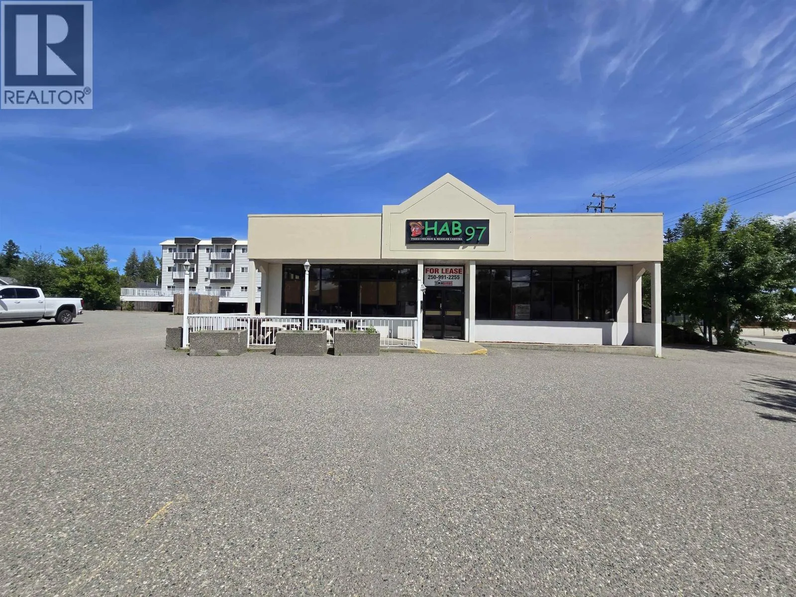 Excellent high-visibility location for lease on Highway 97, the main route through Quesnel. This 2,450 sq. ft. stand alone building features a large pylon sign, ample parking, a drive-thru window and expansive, bright windows spanning the entire front half, allowing for abundant natural light and excellent visibility. Formerly a restaurant, it includes a walk-in fridge and freezer, three bathrooms, and an outdoor patio. The front vestibule offers a welcoming entry, and the location suits various uses, including but not limited to a professional office, retail store, or clinic. Conveniently situated in the heart of Quesnel across from the hospital and surrounded by high-density residential and commercial buildings. C-3 zoning allows for an abundance of options. Donât miss this prime opportunity! * PREC - Personal Real Estate Corporation (id:27476)