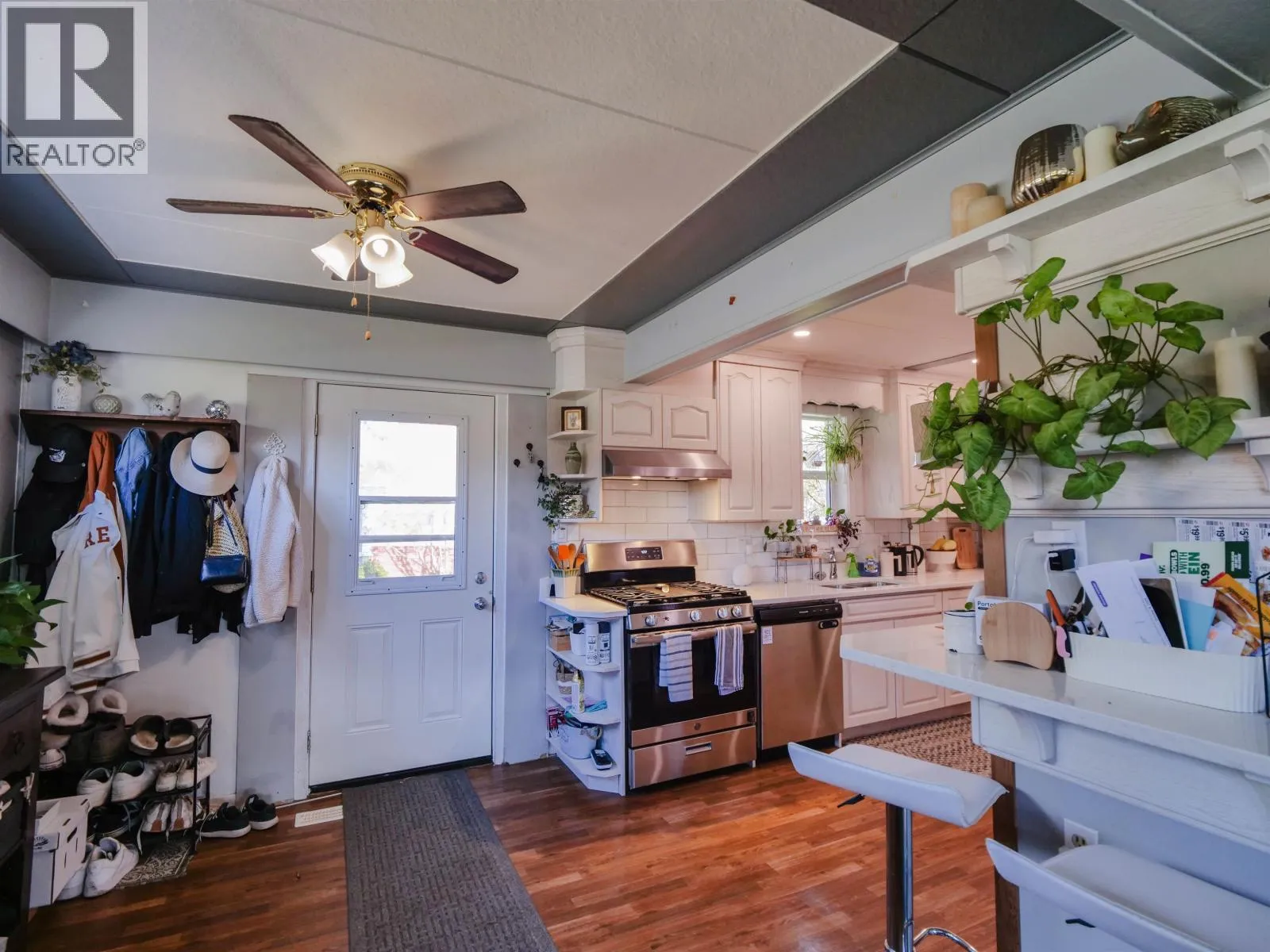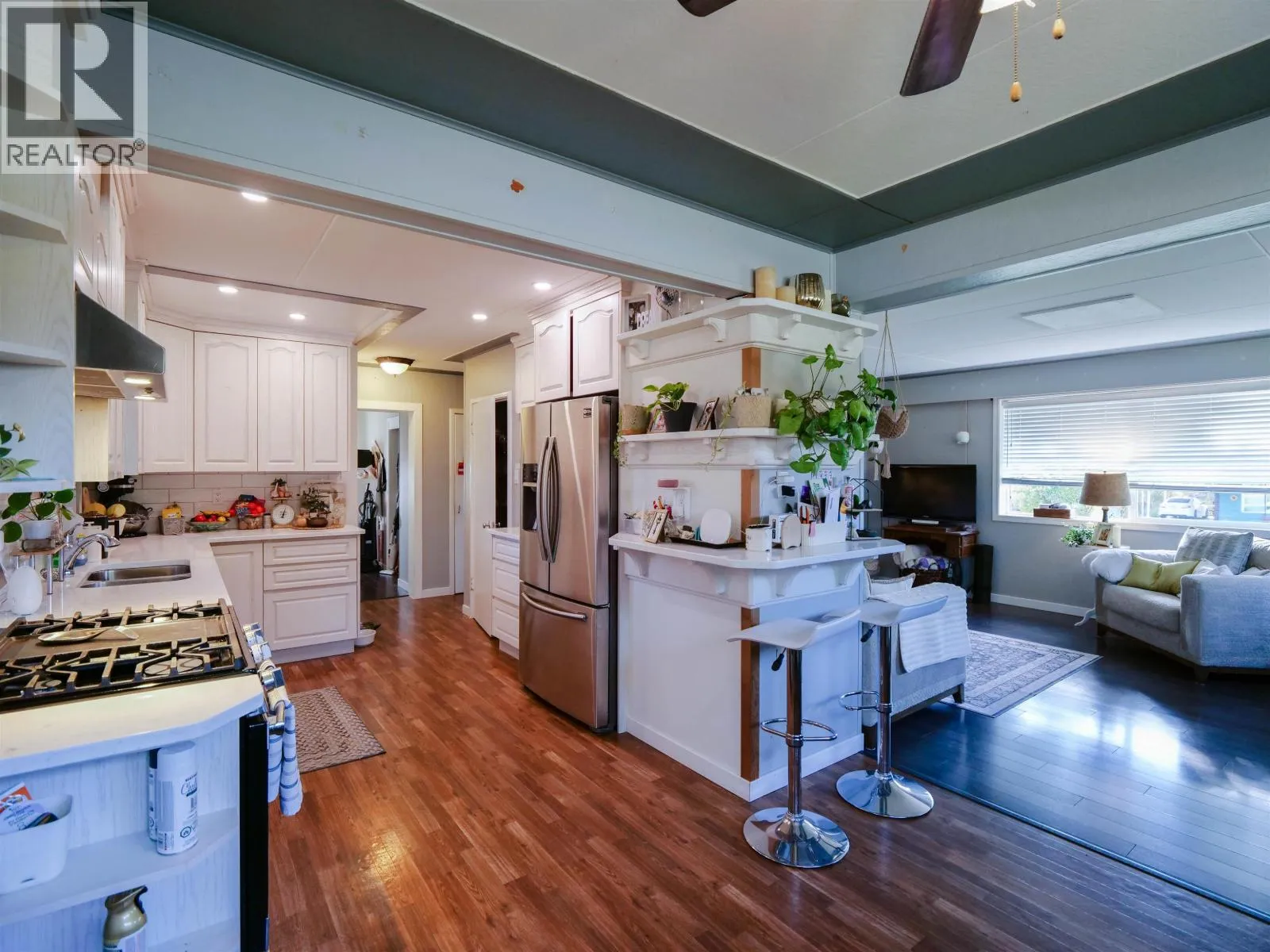 * PREC - Personal Real Estate Corporation. Charming and updated character home in the heart of North Quesnel! This well-cared-for 4 bed 2 bath 1.5-storey with full basement is just steps from the hospital, Fraser River, Riverwalk Trail, and all downtown amenities. Inside youâll find a stunning white kitchen with quartz countertops, stainless steel appliances, and a gas stoveâperfect for home chefs! Both bathrooms are modern and stylish, one featuring a beautifully tiled 4 foot standup shower. Additional updates include a newer roof and vinyl windows. The fenced yard, covered deck with BBQ hookup, detached garage, and convenient loop driveway add comfort and function. Sitting on a large double lot with two titles, this property offers space, character, and lasting value in one of Quesnelâs most sought-after areas! (id:27476)