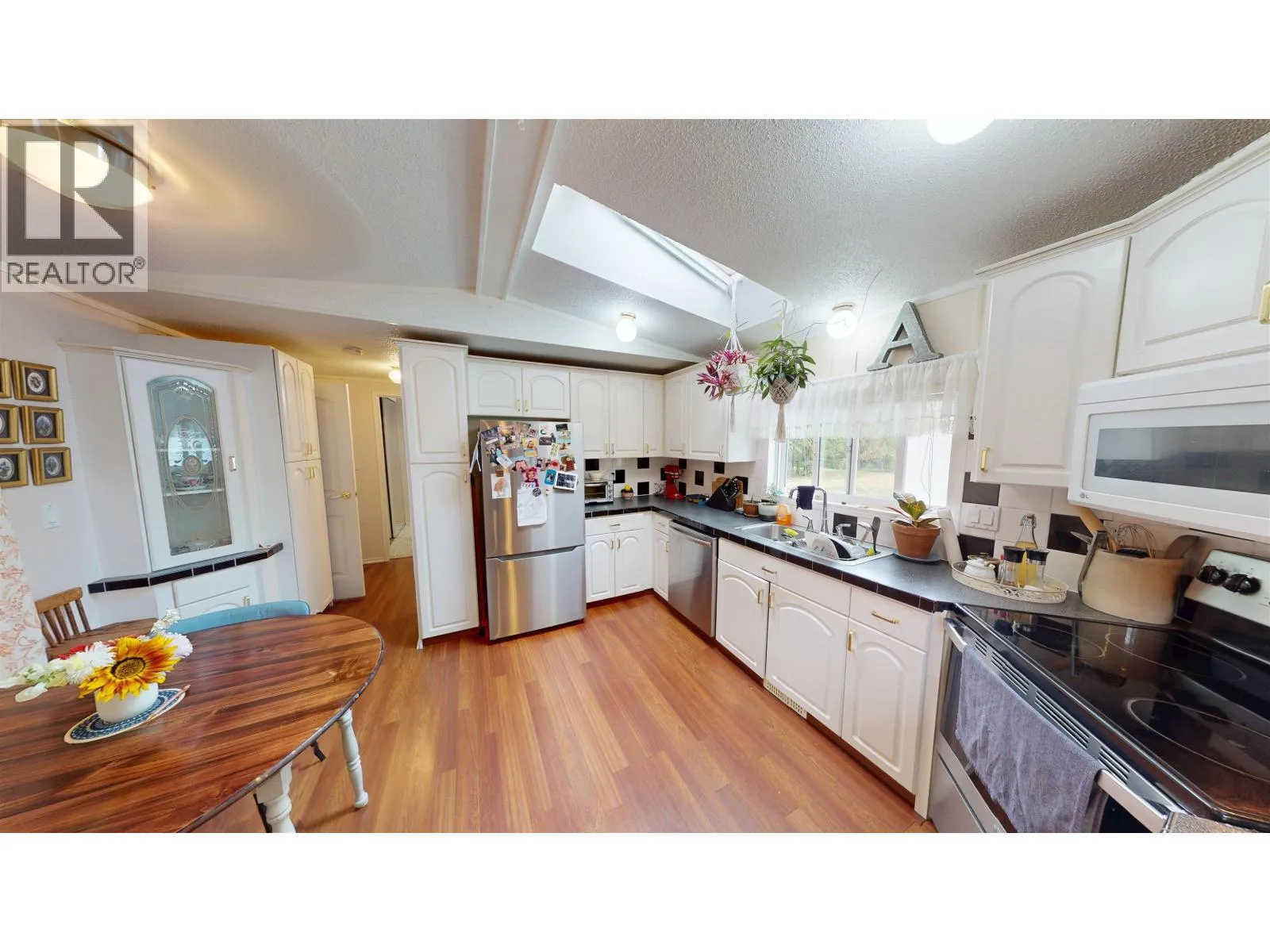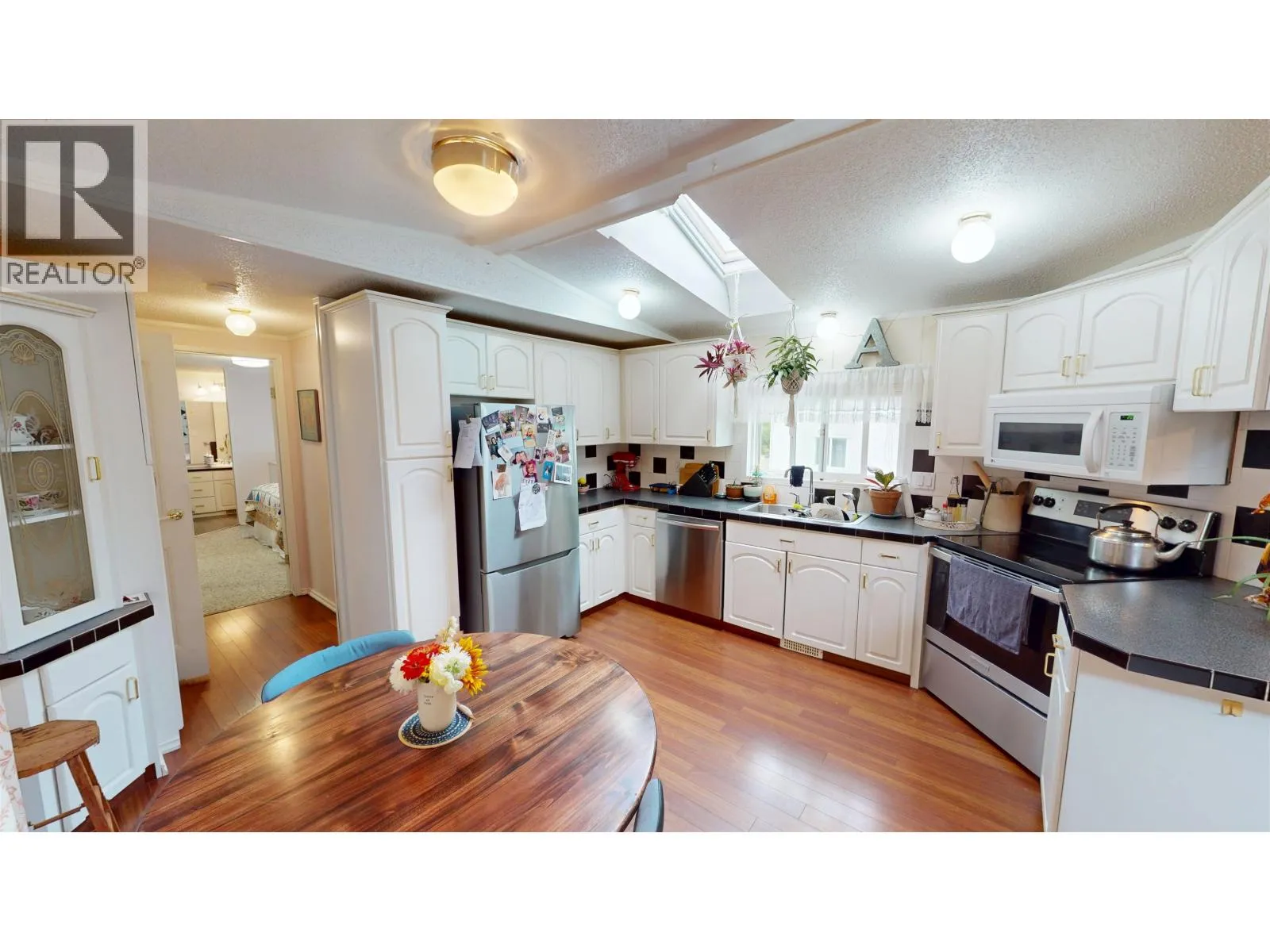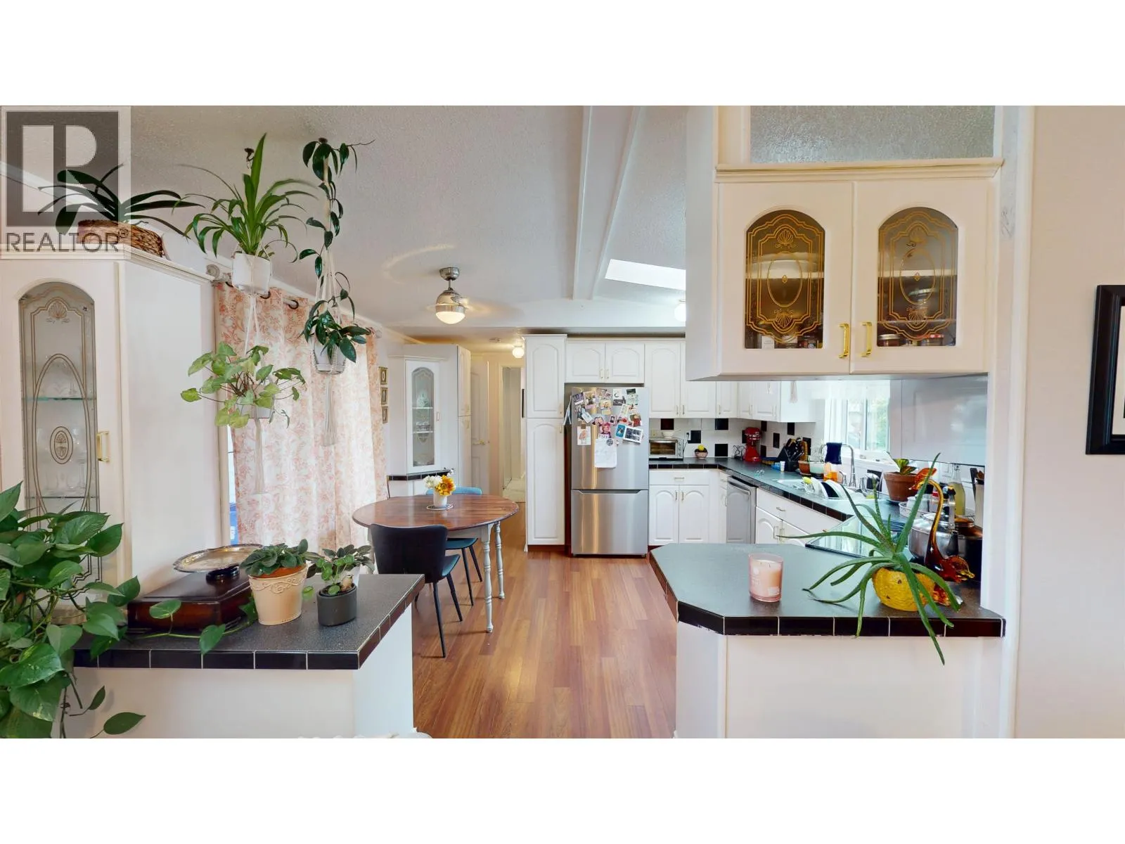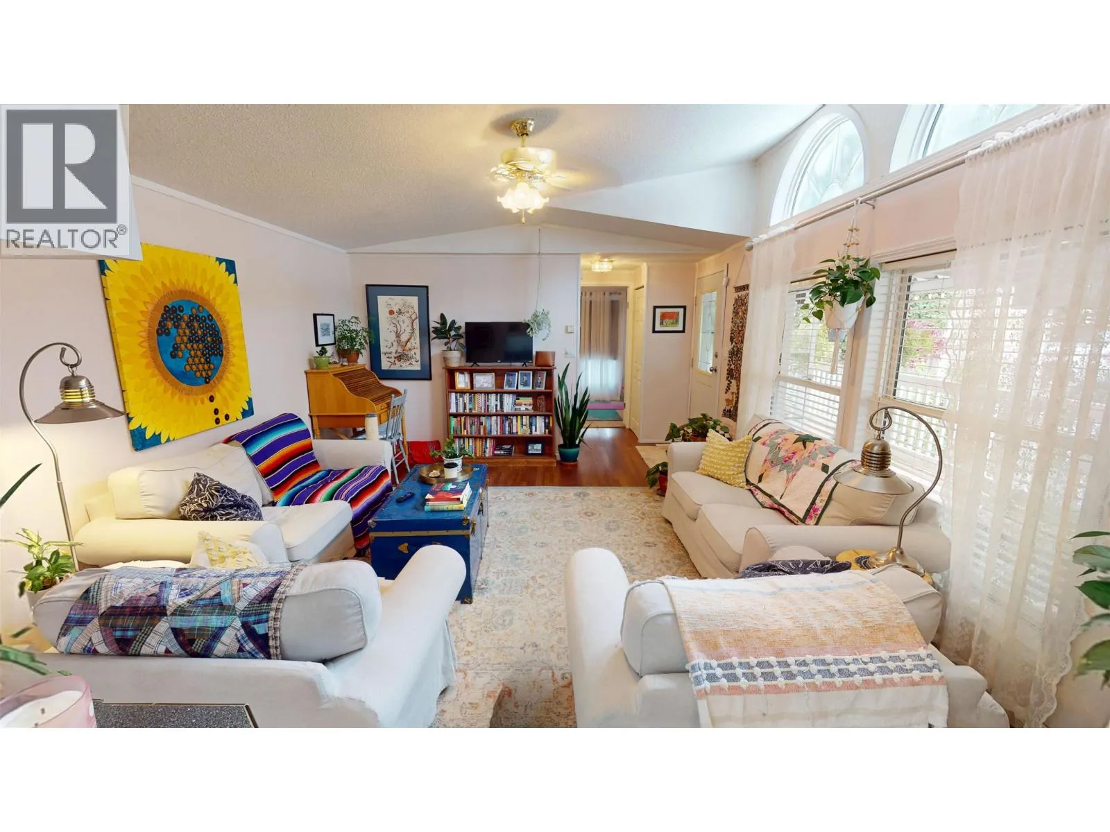 * PREC - Personal Real Estate Corporation. This 1995 two-bedroom, two-bathroom mobile home shines with pride of ownership and an abundance of natural light. The vaulted ceilings and arched living room windows give the space an open, airy feel, while the kitchen skylight brightens the heart of the home. The layout offers easy flow between living spaces, plus an addition that works perfectly as a mudroom or extra storage area. The primary suite includes a relaxing ensuite with a jetted tub, creating a true retreat at the end of the day. Step outside to enjoy a covered deck, ideal for year-round use, and a private yard with storage shed. Youâll love the peaceful setting and sense of space â a rare find in park living! (id:27476)