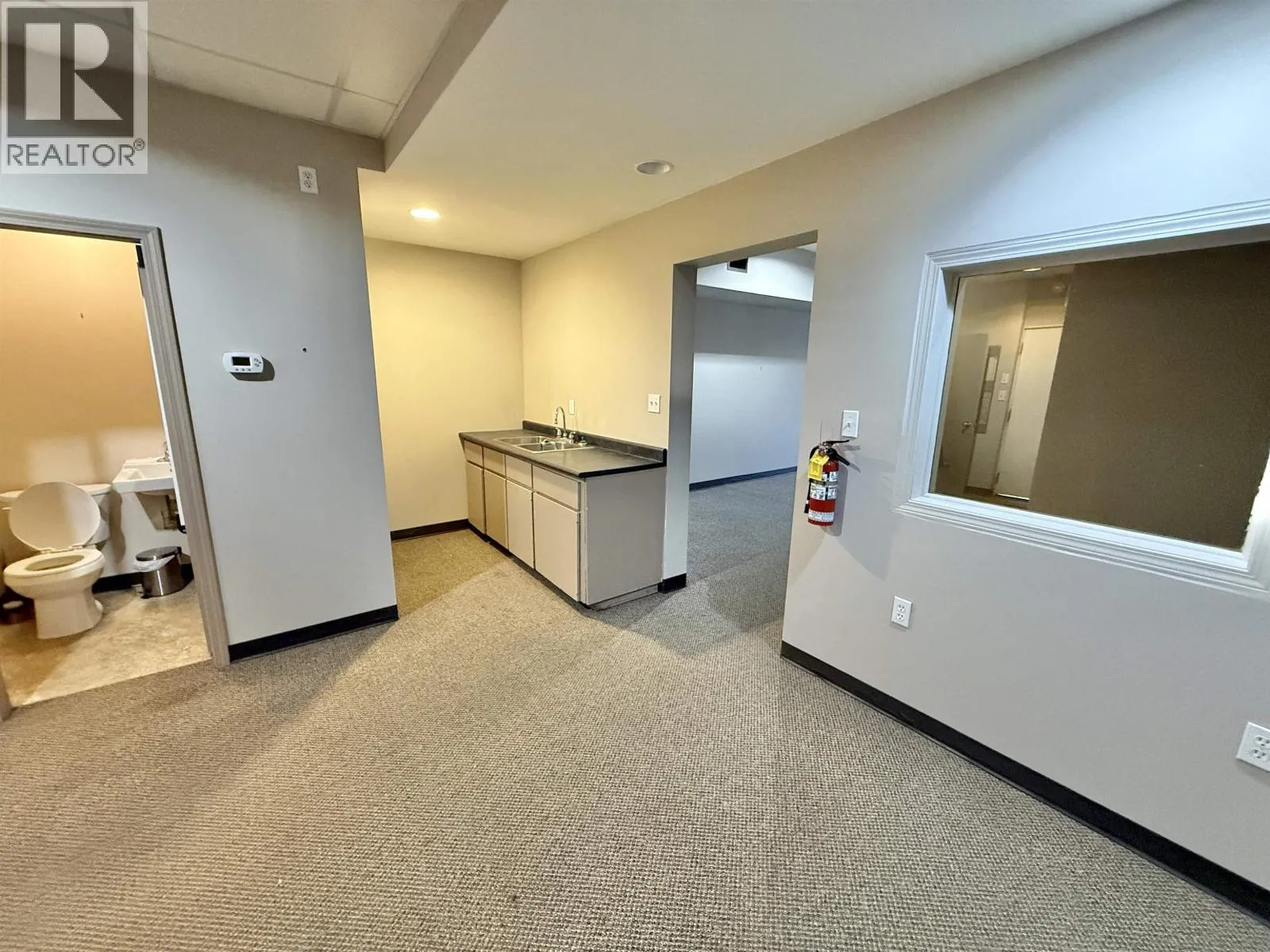 Move-in ready office space available for lease at PRIME LOCATION on Quesnel's most popular Reid Street. This 1260 square foot unit is surrounded by successful businesses in the district. The space is currently vacant and has office space including open reception and seating area, 2 spacious offices, staff room/kitchenette, and tons of storage. This area includes a variety of businesses such as restaurants, communication/tech companies, financial institutions and more! Building has front parking for customers and rear parking for staff. (id:27476)