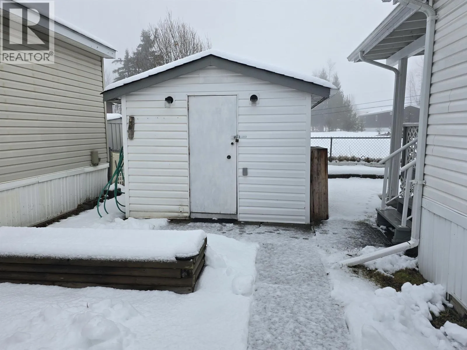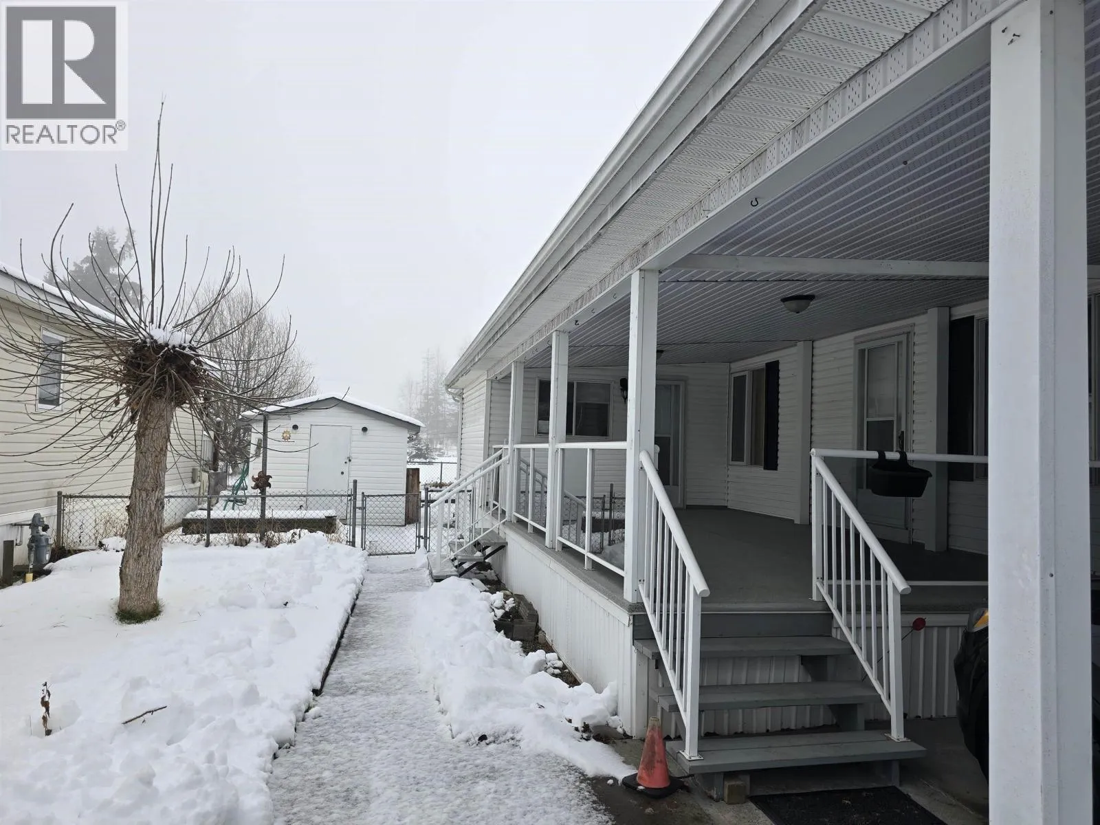 This lovingly maintained 1996 manufactured home is located in one of South Quesnel's most desirable 55+ parks, offering comfort, convenience, & an easy lifestyle. Enjoy the fantastic outdoor spaces, including a huge covered front deck, carport, & a second covered deck at the back-perfect for morning coffee or evening relaxation. The property also features a great garden area & a handy storage shed for all your tools & supplies. Inside, the home features an open-concept kitchen, dining, & living room, creating a bright & welcoming layout. A large mudroom addition provides extra flexibility for storage or hobbies. With a newer roof & eavestroughing, this home is move-in ready & beautifully maintained. A wonderful option for those seeking comfort & community in a peaceful 55+ setting. (id:27476)