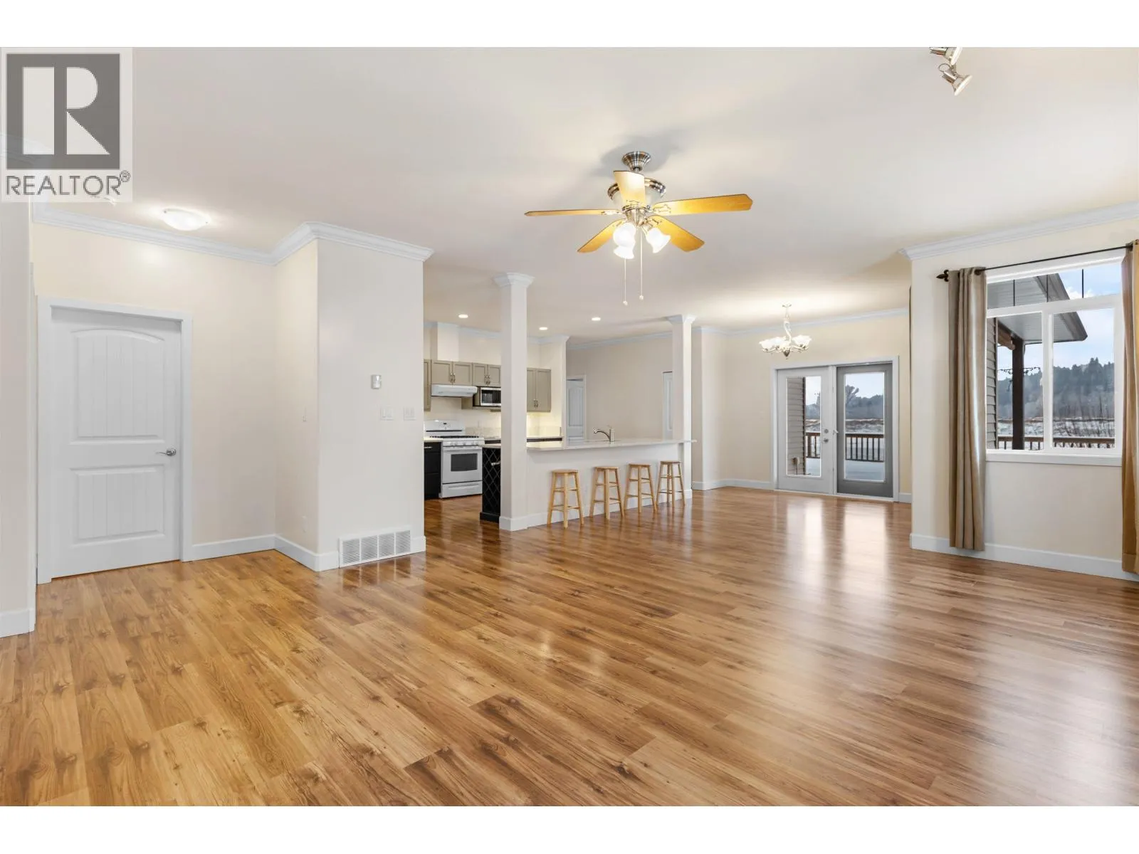 Rare riverfront rancher living, perfectly kept and move-in ready. This 3-bedroom, 2-bathroom gem sits on one of the largest lots in the River Walks strata -- a true rarity with direct river frontage most homes here will never offer. Bright, open-concept living is anchored by a stunning 11' quartz island, ideal for hosting and everyday connection. The spacious primary retreat features a walk-in closet and a serene ensuite for ultimate comfort. Step onto your oversized deck and take in uninterrupted river views, lush landscaping, and a fully manicured yard - a private sanctuary for morning coffee, gatherings, and wildlife watching. With an attached garage and a peaceful yet convenient in-town location, this home delivers effortless, high-reward living. A home like this doesn't come up often. (id:27476)