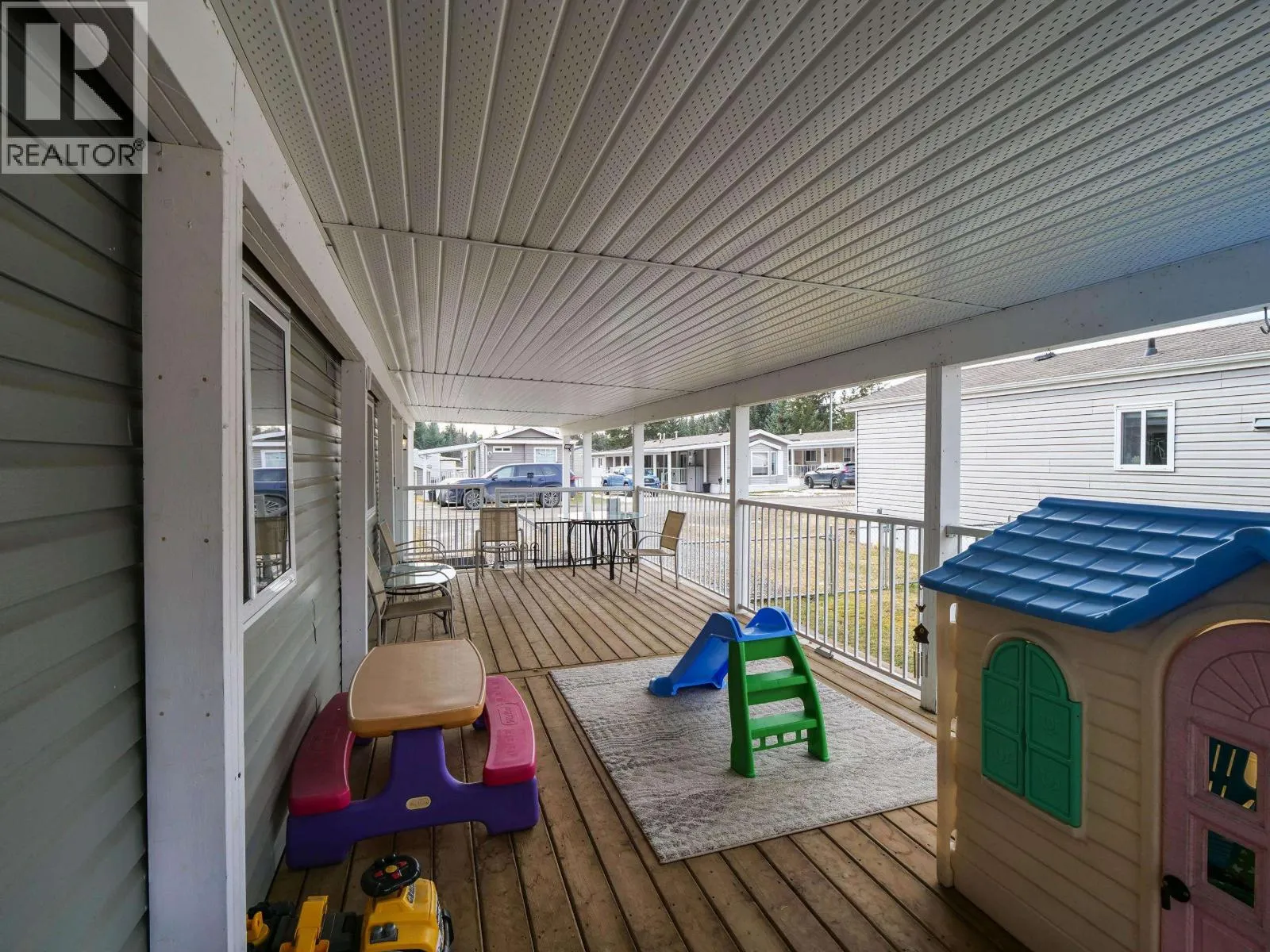 Exceptionally well maintained and showing like new, this beautiful 2 bed 2 bath 2014 manufactured home sits in a quiet park on a dead-end cul-de-sac close to all amenities and connected to full city services. The bright interior features vaulted ceilings, a beautiful white kitchen, and an excellent layout with the primary bedroom and ensuite at one end plus the second bedroom with main bath at the other. Step outside to a massive covered deck, single carport, and an oversized fenced yard with shed. This lot offers loads of parking compared to others in the park. Clean, cozy, and move-in ready - nothing to do but move in and enjoy. (id:27476)