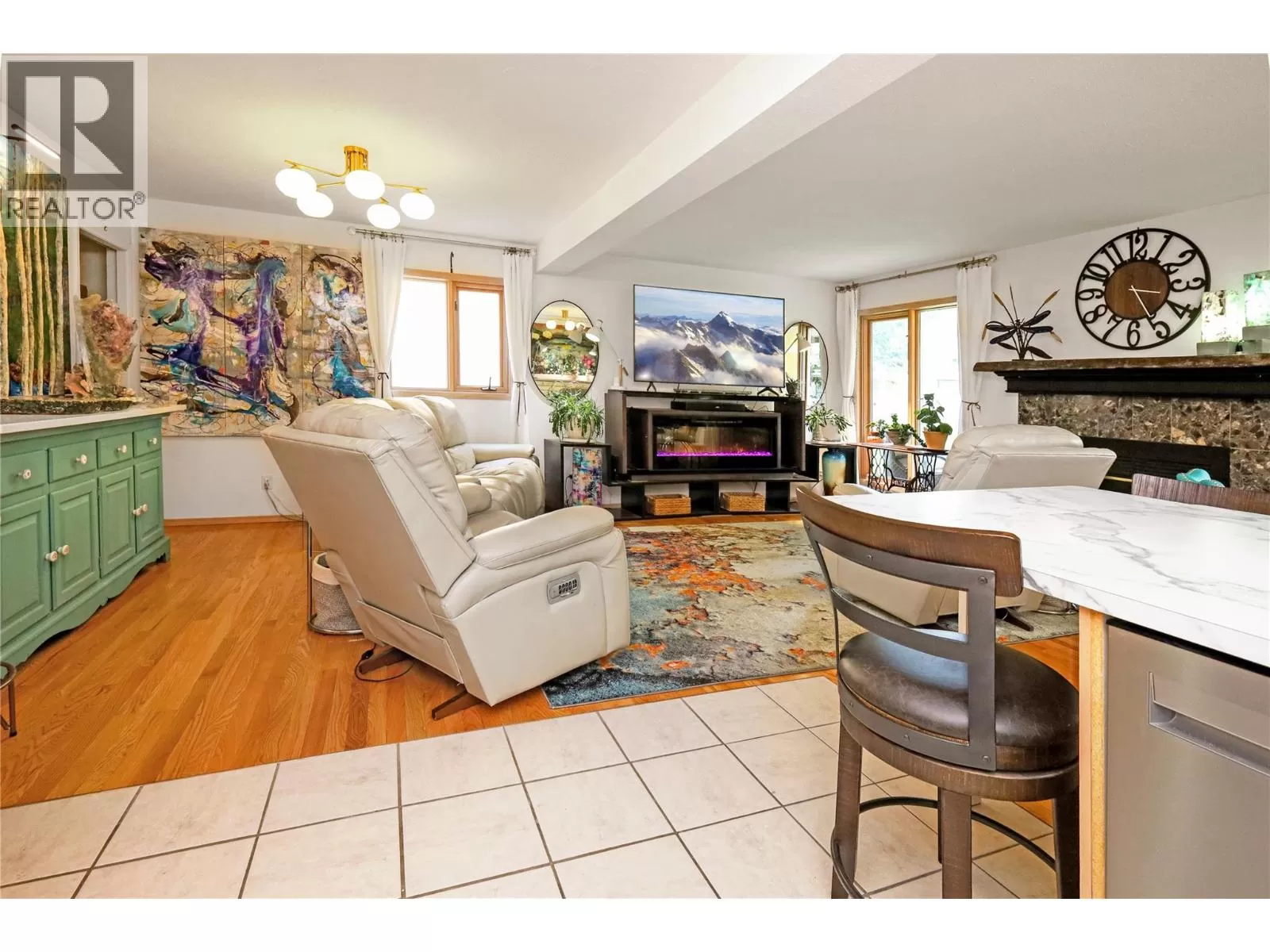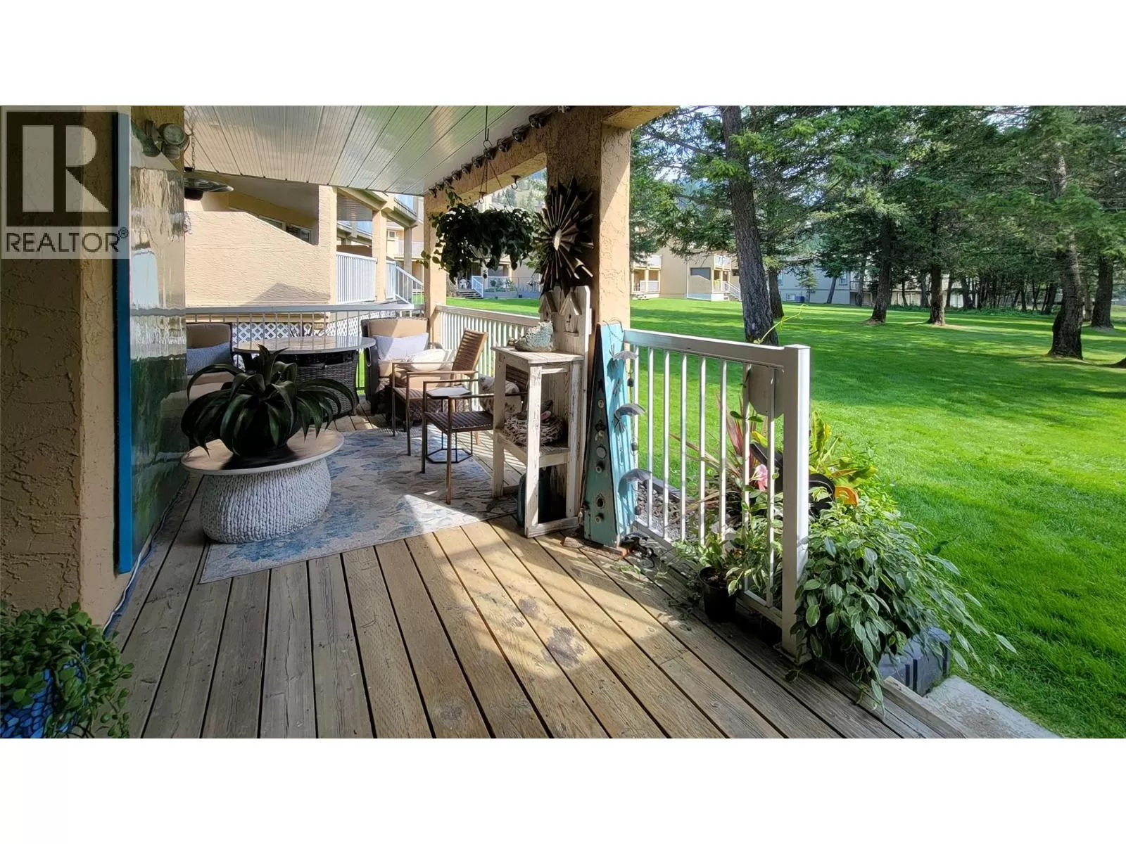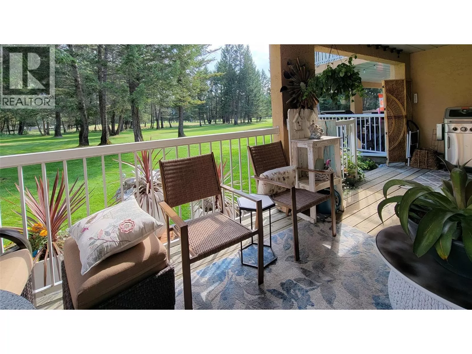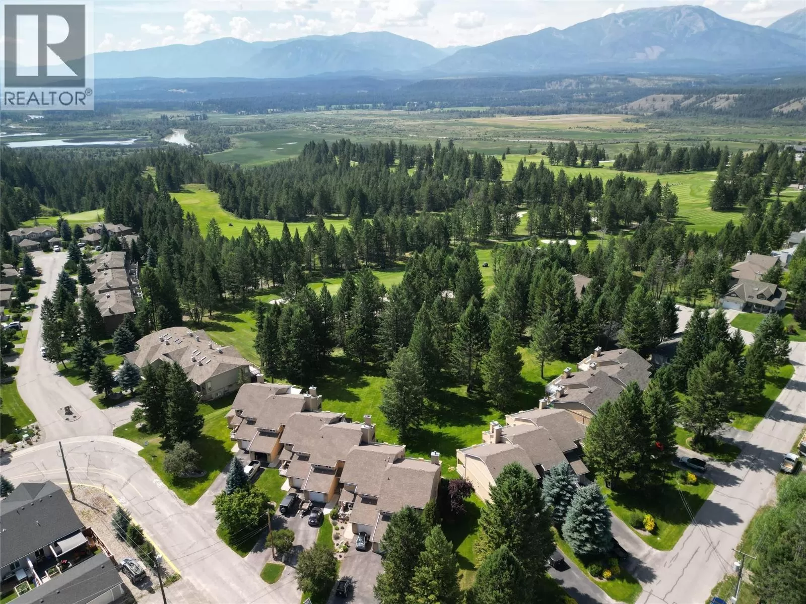 Discover your mountain retreat, perfectly located in a quiet neighbourhood just a short walk from Main Street. This spacious townhome is ideal for those who love mountain life, with easy access to all the activities Radium has to offerâfrom golfing and biking to skiing and hiking. Step inside to a generously sized foyer and then into the open main floor, featuring beautiful hardwood & tile floors and a real wood fireplace, perfect for cozy evenings after a day on the slopes or a round of golf. The kitchen has been thoughtfully updated with elegant glass-front kitchen cabinets, and a peninsula countertop extension provides lots of room to prepare meals or just sit down and watch TV. Enjoy the Radium Springs Golf Course views from your walk-out deck or step onto the upper balcony to soak in the mountain air. With two spacious bedrooms, two full bathrooms, and abundant natural light from the windows, this end unit is a comfortable and inviting space. A single-attached garage and a driveway that fits two more vehicles. Recent upgrades, including new roof shingles (2023), garage doors, and a waterproof membrane on the upper balcony. The strata maintains the landscaping, snow removal in the winter and building exteriors. End your day relaxing on the front porch swing, knowing youâve found the perfect base for your mountain adventures. (id:27476)