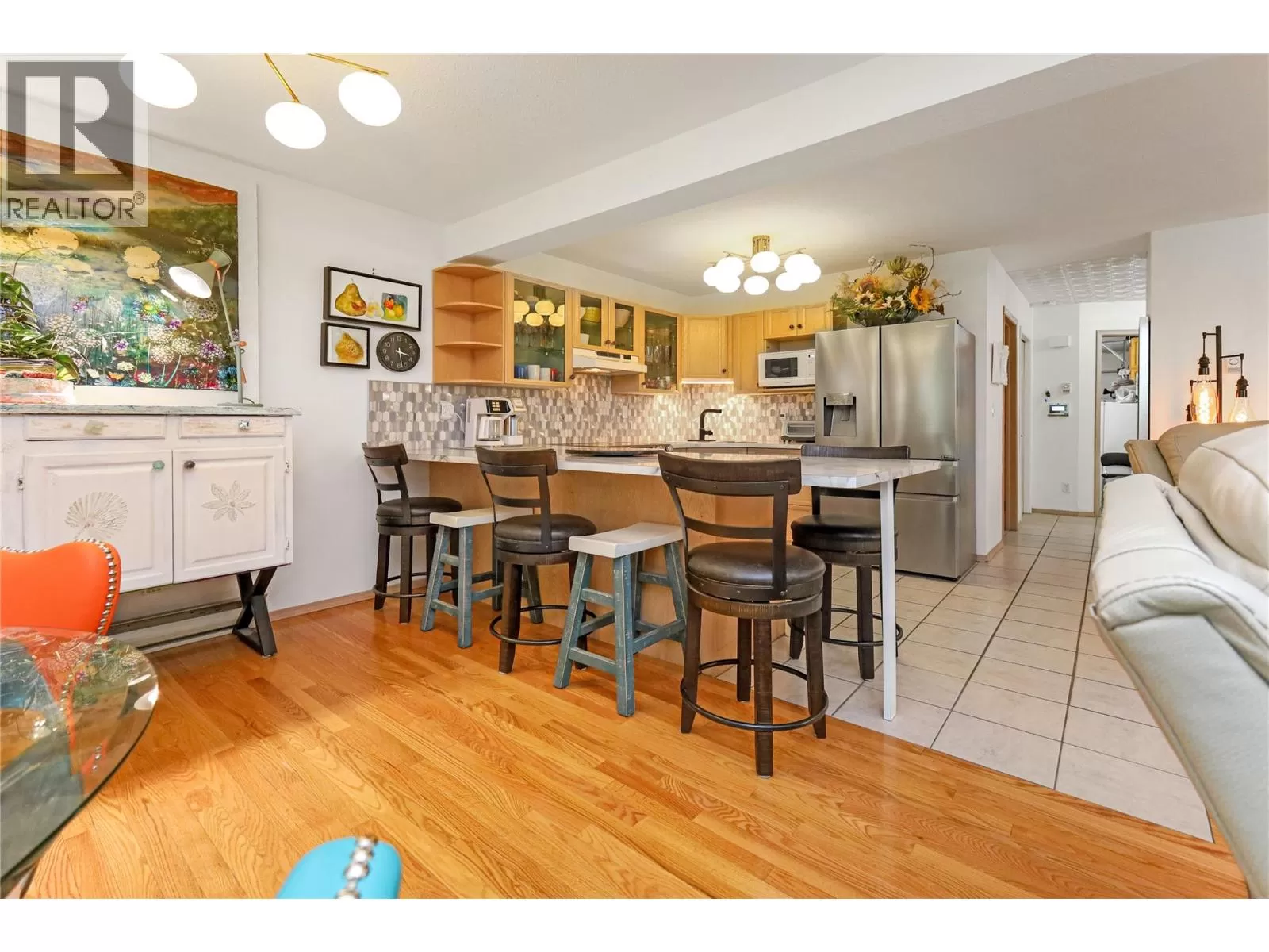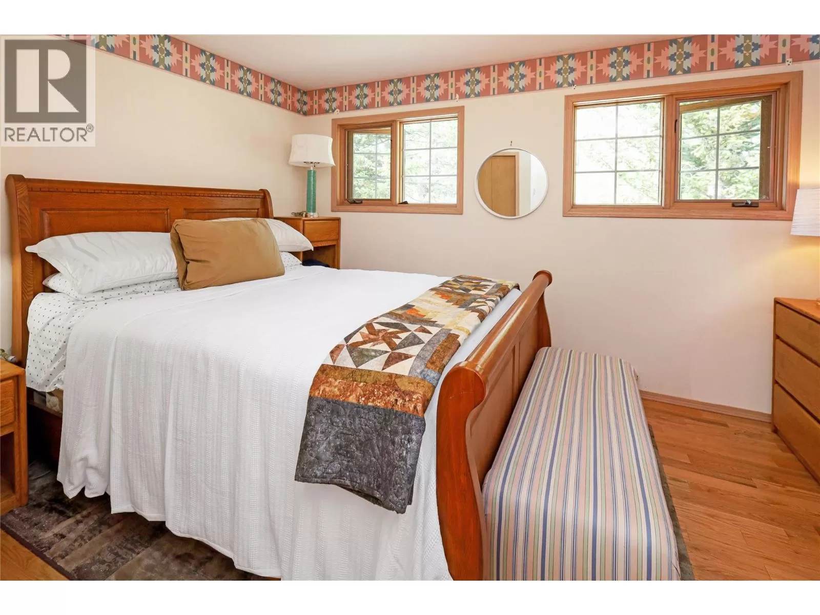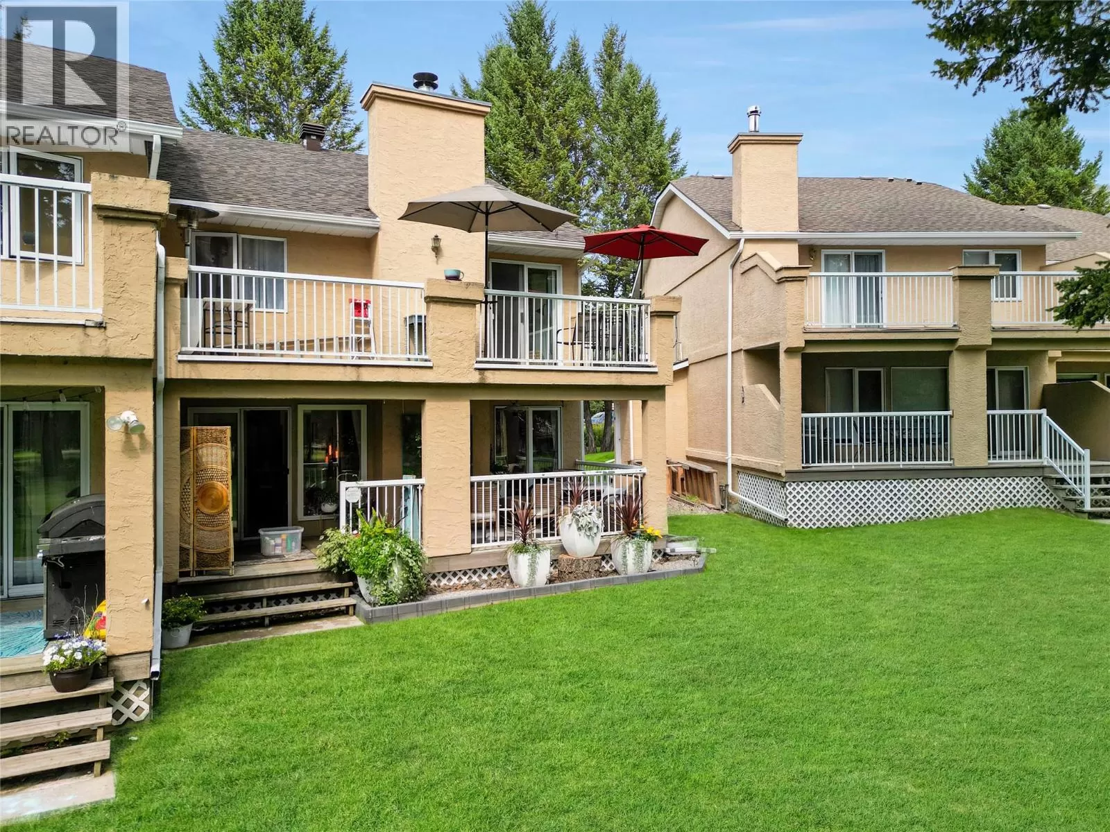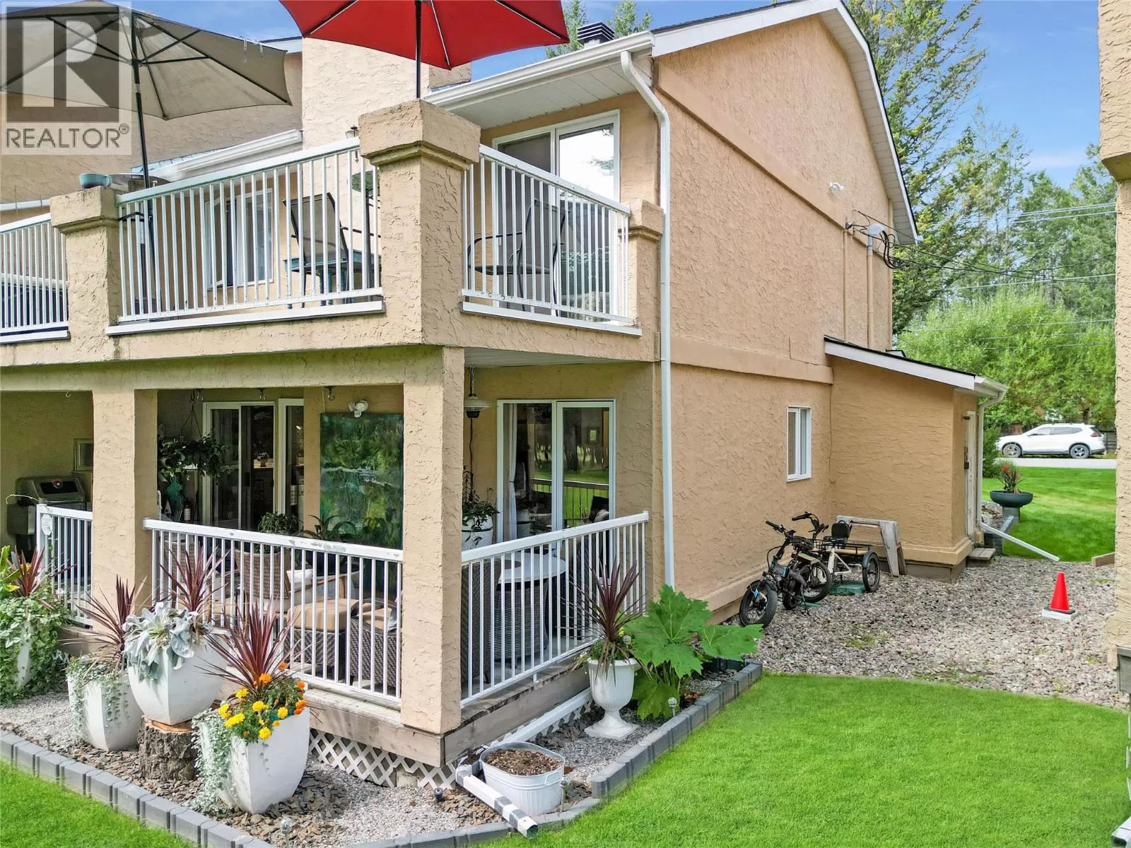 Discover your mountain retreat, perfectly located in a quiet neighbourhood just a short walk from Main Street. This spacious townhome is ideal for those who love mountain life, with easy access to all the activities Radium has to offerâfrom golfing and biking to skiing and hiking. Step inside to a generously sized foyer and then into the open main floor, featuring beautiful hardwood & tile floors and a real wood fireplace, perfect for cozy evenings after a day on the slopes or a round of golf. The kitchen has been thoughtfully updated with elegant glass-front kitchen cabinets, and a peninsula countertop extension provides lots of room to prepare meals or just sit down and watch TV. Enjoy the Radium Springs Golf Course views from your walk-out deck or step onto the upper balcony to soak in the mountain air. With two spacious bedrooms, two full bathrooms, and abundant natural light from the windows, this end unit is a comfortable and inviting space. A single-attached garage and a driveway that fits two more vehicles. Recent upgrades, including new roof shingles (2023), garage doors, and a waterproof membrane on the upper balcony. The strata maintains the landscaping, snow removal in the winter and building exteriors. End your day relaxing on the front porch swing, knowing youâve found the perfect base for your mountain adventures. (id:27476)