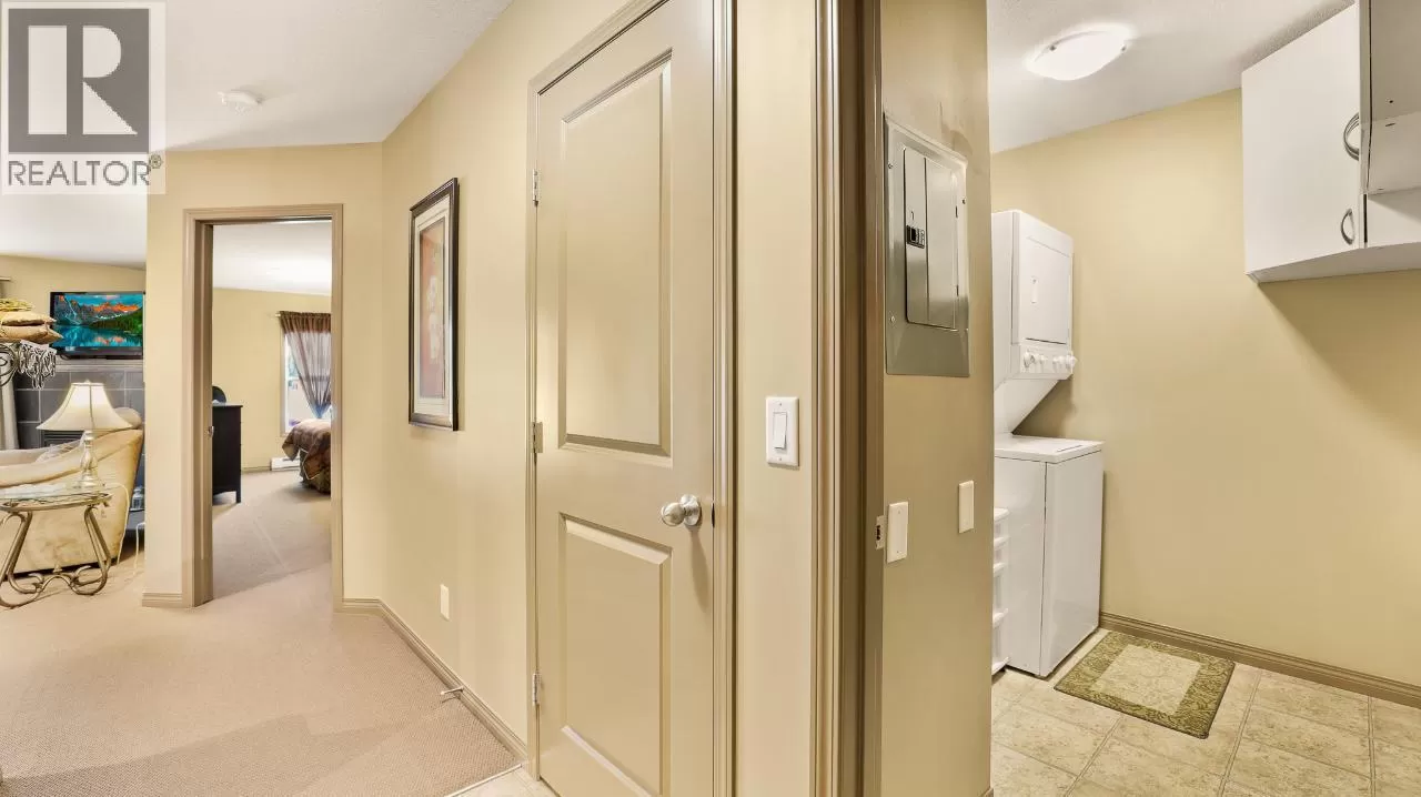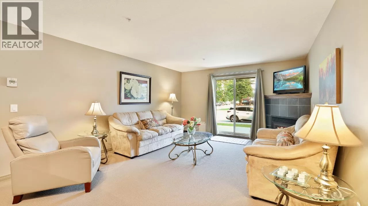 Introducing this charming 2-bedroom, 2-bathroom ground floor unit at 107, 4874 Stanley Street. This property is perfect for full-time living or a recreational retreat. The spacious dining room features built-in cabinets, and the large living room is warmed by a cosy fireplace, making it an inviting space for social gatherings or quiet nights in. The open concept kitchen comes with abundant storage and a sit-up bar, providing the ideal setting for culinary adventures. The master suite is complete with an ensuite bathroom and a walk-through closet, while the guest bedroom also boasts a walk-in closet. With the green space just a step away from your door, this apartment promises tranquility and nature at its finest. The property benefits from a dedicated laundry room and a parking space, ensuring maximum convenience. Located within walking distance of Radium's amenities and close to several golf courses, it combines tranquillity with accessibility. This well-maintained apartment has never been rented and is being sold fully furnished and ready to move in. Immerse yourself in the idyllic setting of the Radium Hot Springs and experience the perfect balance of convenience and comfort. Don't miss out on the chance to call this property home! (id:27476)