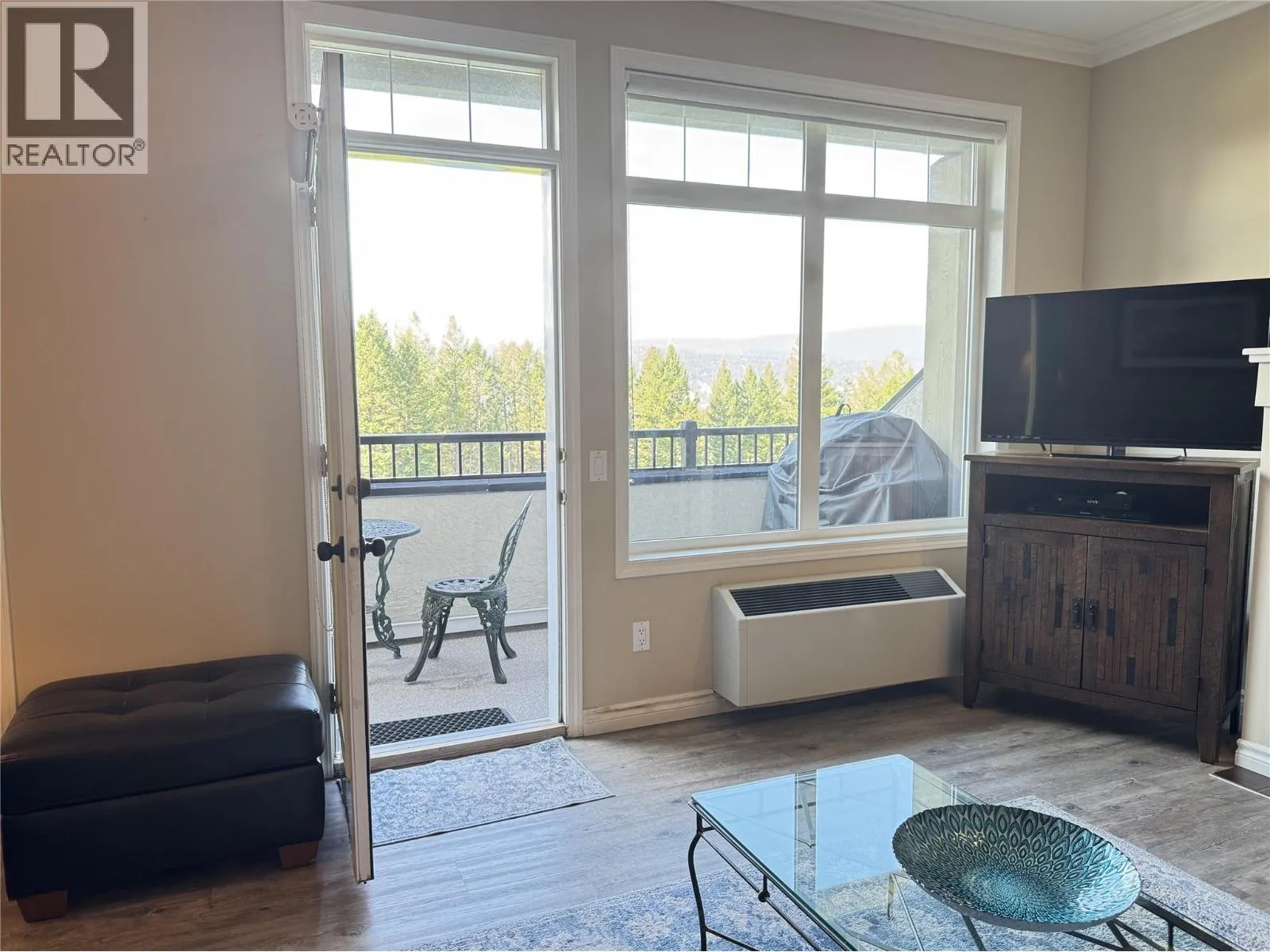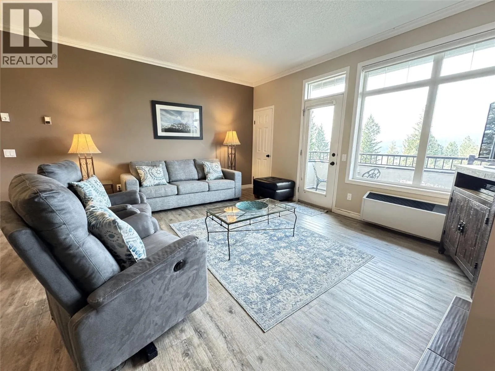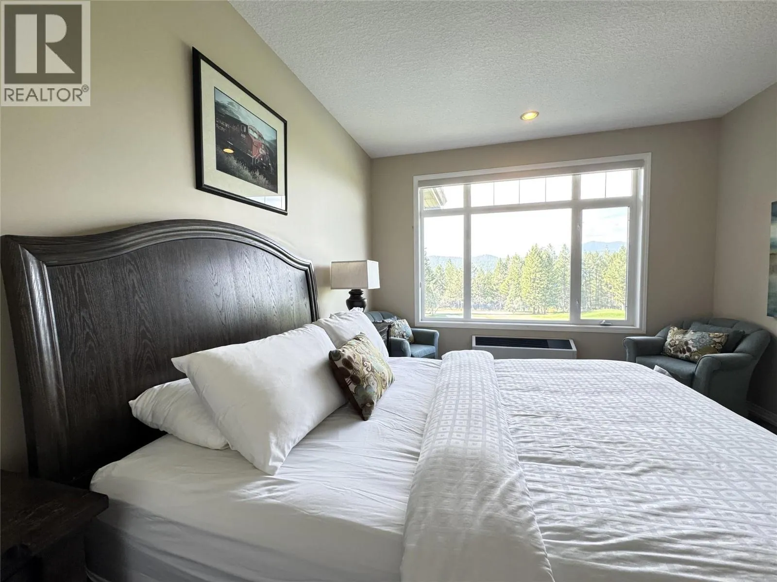 Top-Floor End Unit with Panoramic Views in a Beautiful Resort Setting. Discover this rare full-ownership opportunity in a stunning resort community! This spacious top-floor end unit offers sweeping views of the golf course and mountains, perfectly framed by the large panoramic window in the primary bedroom. Natural light floods the spacious, open-concept living area, creating a warm, inviting space to relax and unwind. With modern decor, high-end finishes, and thoughtful upgradesâincluding an electric blackout blind in the primary bedroomâthis home is move-in ready and comes fully furnished. Simply unpack your bags and start enjoying mountain living. The unique lock-off second bedroom with private balcony and pull-out sofa adds valuable flexibility, ideal for hosting guests or generating rental income. Enjoy year-round adventure with golf, hiking, and biking in the summer, world-class skiing in the winter, and rejuvenating hot springs just minutes away. Resort amenities include an ownersâ lounge, outdoor pool, two jetted hot tubs, fitness centre, and a childrenâs playground. Whether youâre seeking a full-time residence, a family getaway, or a rental opportunity, this property offers the perfect blend of luxury, comfort, and mountain lifestyle. Schedule a viewing today. (id:27476)
