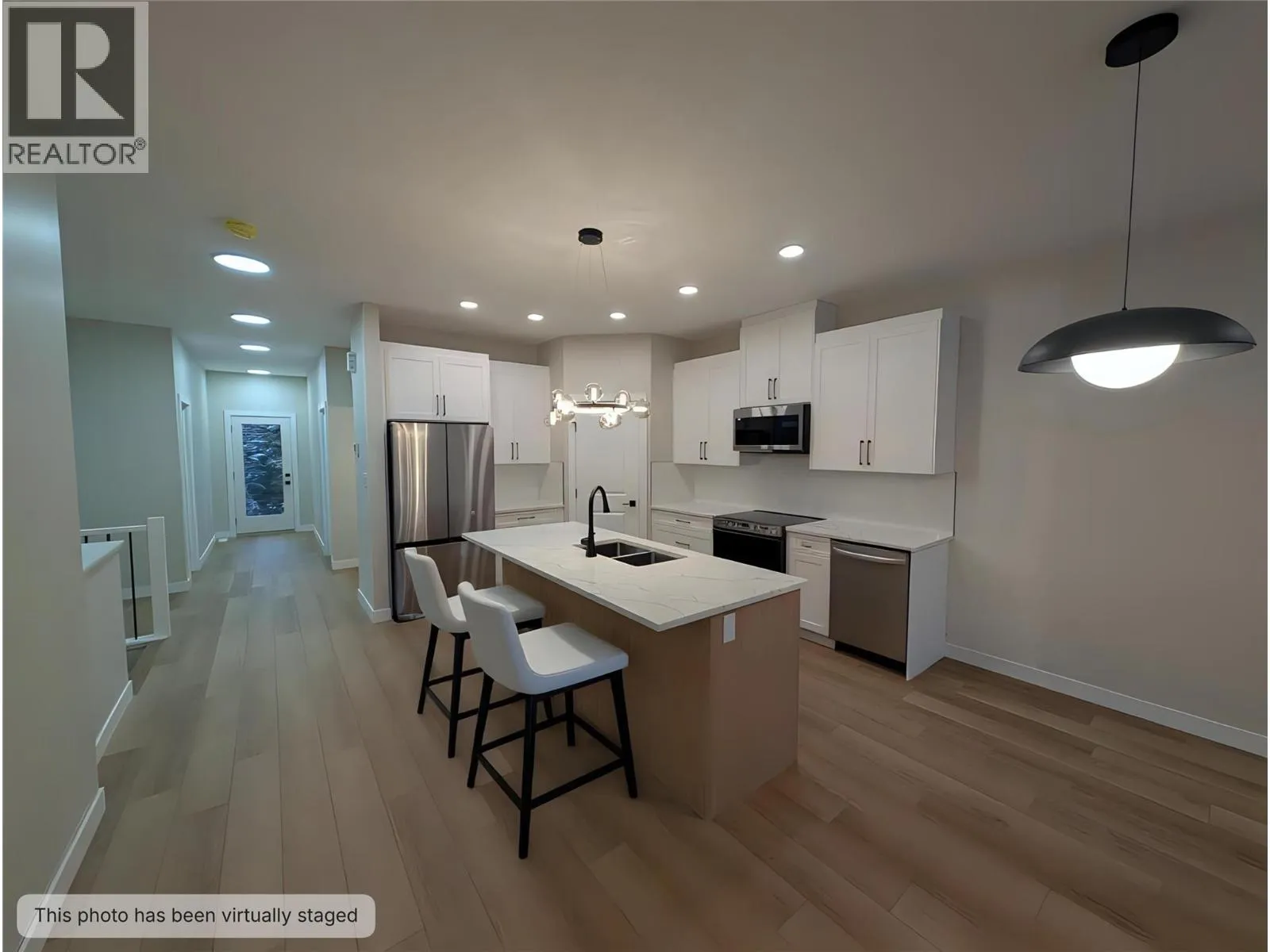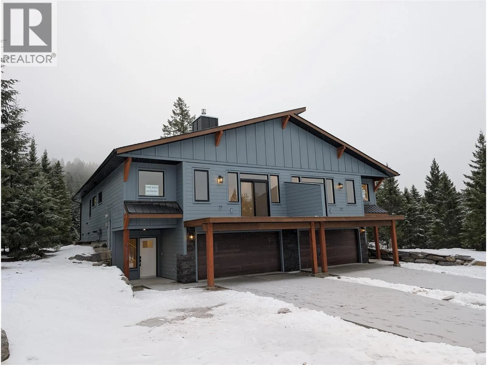 Welcome to 7114 Morgan Lane, a brand-new home in the charming community of Elk Park Ranch, just a few minutes north of Radium Hot Springs. Offering fee-simple ownership and more than 2,300 sq. ft. of living space, this thoughtfully designed residence blends comfort, style, and high-quality construction. With three bedrooms upstairs and one on the lower level plus three full bathrooms, the home suits families, downsizers, or recreation buyers seeking spacious and modern living. Key Features include, 9 Foot ceilings on the Main level, Black aluminum clad Lux Windows, Double-car garage, which is fully insulated, drywalled and painted, ICF concrete party wall for enhanced soundproofing and energy efficiency, kitchen cabinets in White Chantilly Lace shaker doors, with Wood grain island, quartz countertops, and Samsung stainless steel appliance package, black hardware on doors and plumbing fixtures for a contemporary aesthetic. Convenient, main floor laundry room with LG stacking washer dryer, a Carrier electric forced-air furnace with cold climate Heat Pump, Continental Propane Gas Fireplace with modern tile finishing in the living room, front west-facing pressure treated deck with glass railings and amazing views of the Purcell Mountains and a rear pressure-treated deck overlooking green space and offering unobstructed Rocky Mountain views. The craftsmanship and finishes throughout the home inside and out are sure to impress even the most discerning buyer. Price includes GST. (id:27476)