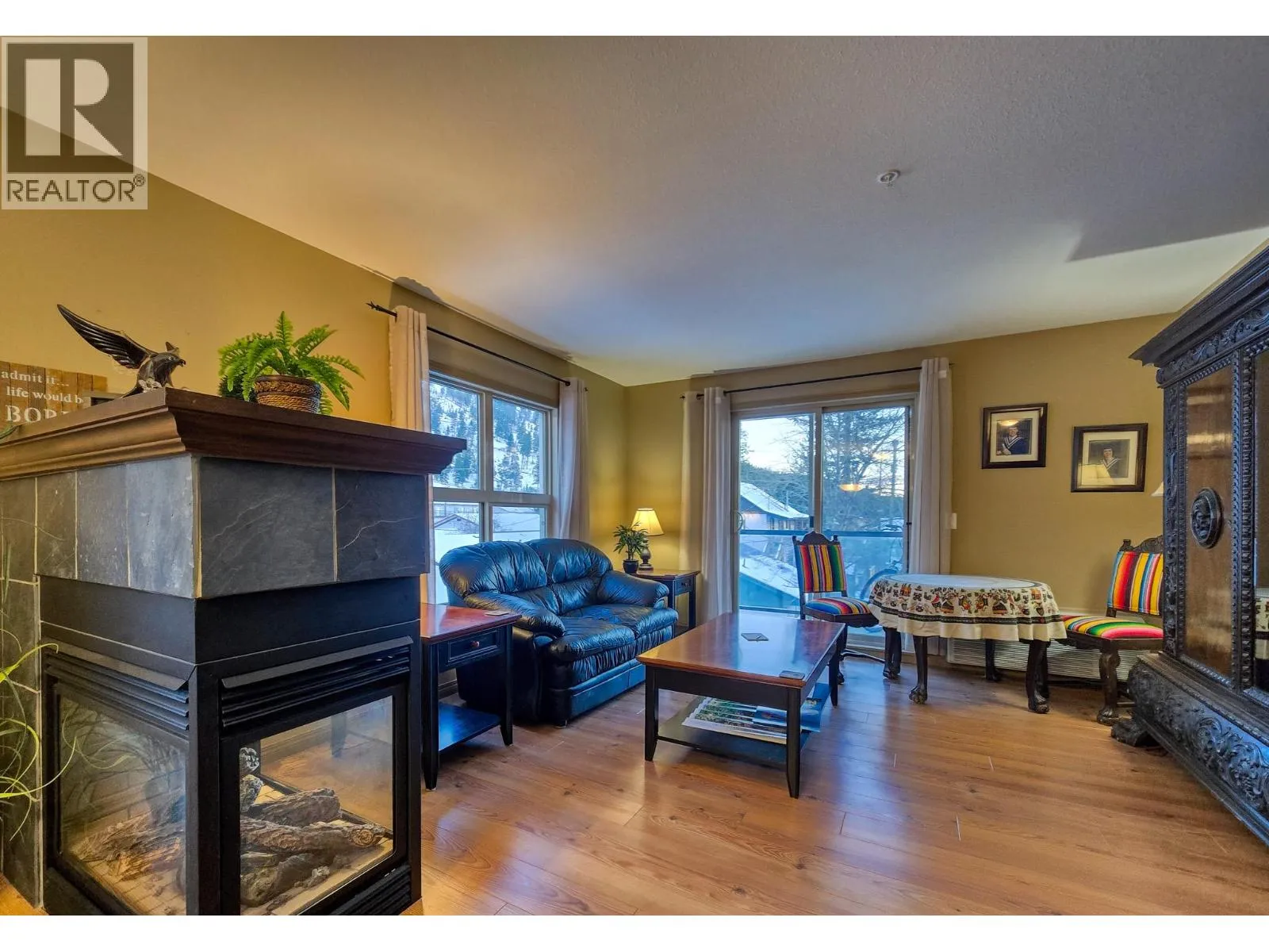 *Spacious! *Second floor! *Two bedroom/Two Bath plus DEN! *South facing! *Corner unt! Welcome to #2210 at 'The Pinewood' in Radium! Room to stretch out and enjoy! Viable for full time living, a perfect option to downsize and age in place, but also a smart long term rental investment or even a weekend recreational retreat. When you first enter the space you notice the open concept large kitchen which flows into the dinning room and living room area. Tasteful laminate flooring and double sided gas fireplace are nice features, but the extra natural light from being a corner unit really makes this a dream! The covered south facing deck gives you views of the Purcell Mountains & Rocky Mountains. The den space is a real bonus, whether you use it as a home office, or a guest/third bedroom- it really makes this unit more practical and functional compared to the smaller two bedroom layouts. Covered and heated underground parking with locking storage cage! Strata fees of $503.17 include your electricity & gas! Being sold furnished! Don't hesitate on this beautiful offering! (id:27476)