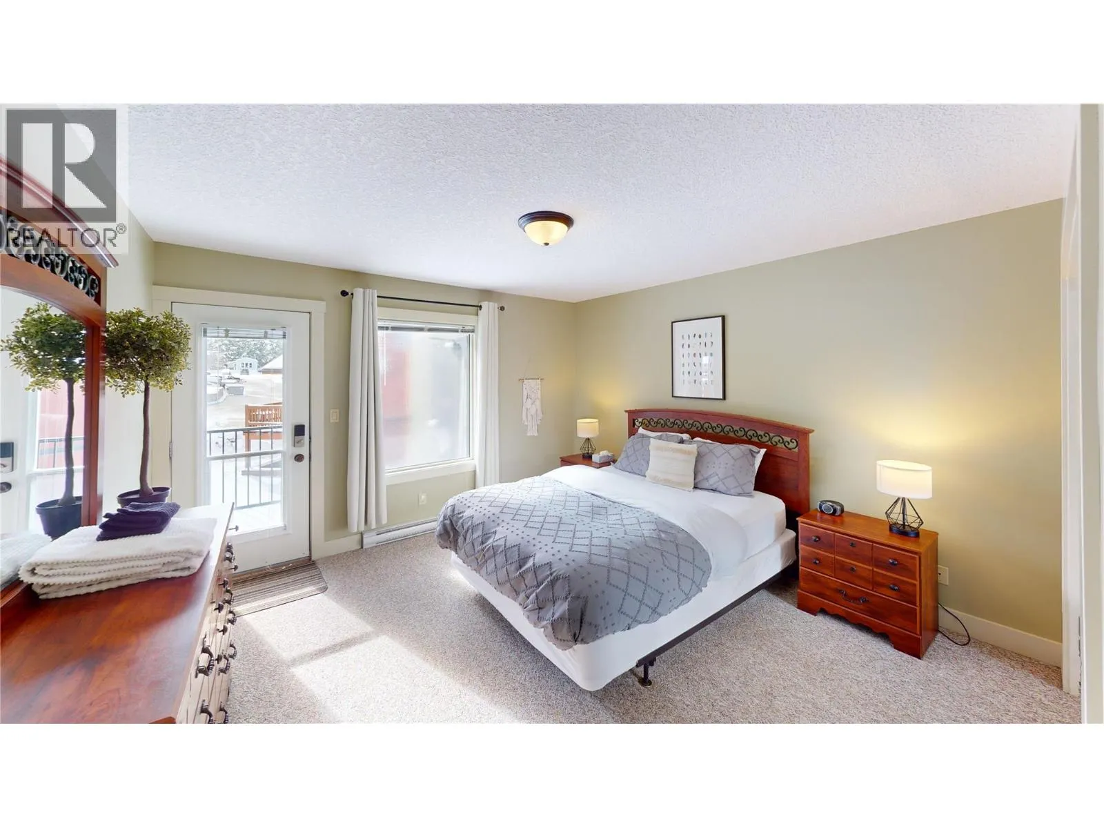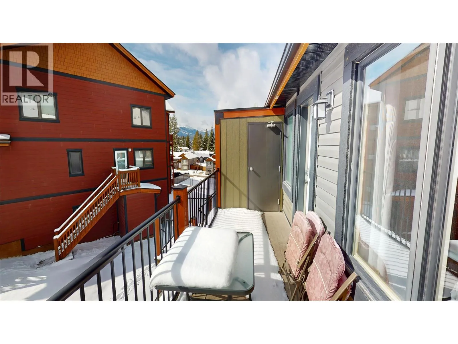 Easy Living Top Floor - Copper Horn Towne Unit in Radium Hot Springs. This affordable, turnkey two-bedroom, one-bath unit is flooded with natural light and comes fully furnished. The open kitchen, dining, and living area, plus a full bathroom with a spacious corner soaker tub and separate shower, make this unit ideal for full-time living or for recreationalists who enjoy seasonal valley fun. The wood-burning stove is perfect for chilly winter days and adds a cozy mountain feel. High ceilings, large windows, and two balconies offer bright, open space. The northeast balcony is perfect for morning coffee with a Rocky Mountain view, while the larger south-facing patio provides great afternoon sun. Copper Horn Towne is walking distance to all Radium has to offer: golf courses, hot pools, restaurants, cafes, shopping, trails, and a short drive to Panorama or Kicking Horse Resort. (id:27476)