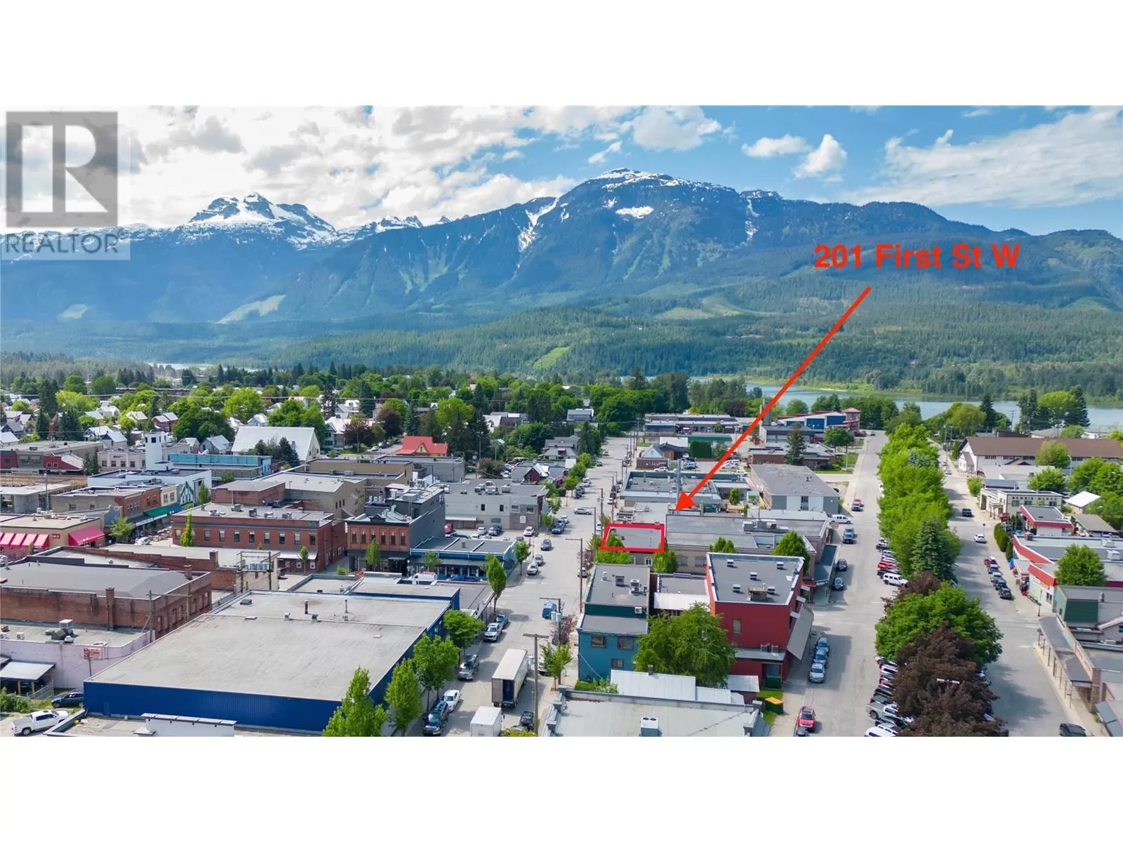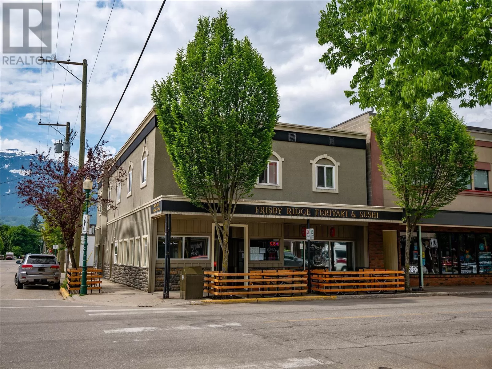 Prime C1 zoned building in high traffic location now available in downtown Revelstoke. Located in the retail heart of one of North America's most desirable mountain destinations, 201 First St features nearly 2500 sq ft of ground floor commercial space with reputable and long serving businesses holding leases. 2100 sq ft is currently leased by a sushi restaurant, while 315 sq ft is in use as a barbershop. The second floor feature 5 apartments, including 2 studios, 2 one bedroom units, and a 1 bedroom + den unit. The building has been well maintained, including new siding and windows in 2006 and a new torch on roof in 2014. Two forced air furnaces supply heating to the building, while 2 air conditioning units and a heat pump provide cooling for the commercial units independently and the residential units collectively. With strong rental growth in the Revelstoke market on both the commercial and residential sides, 201 First St is an opportunity not to be missed! (id:27476)