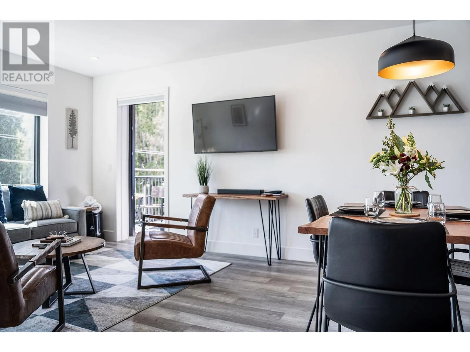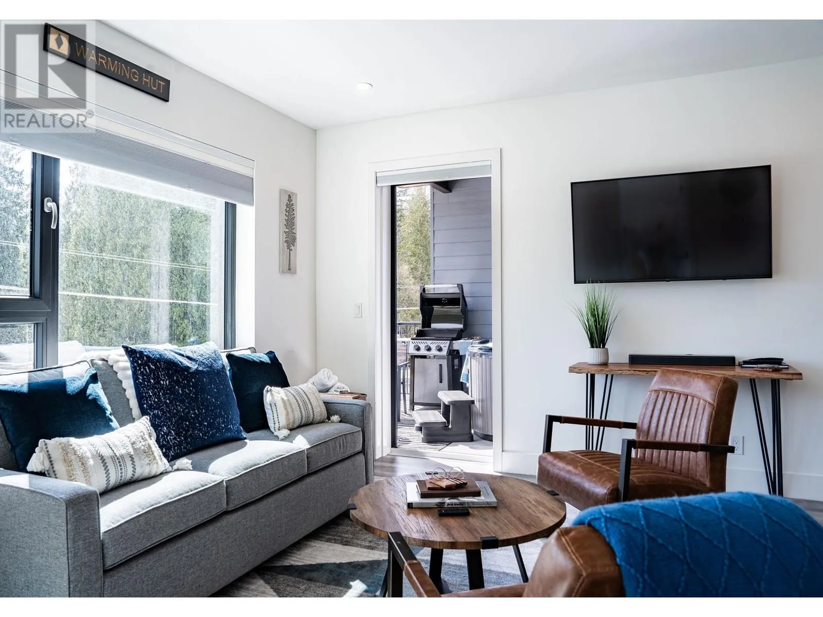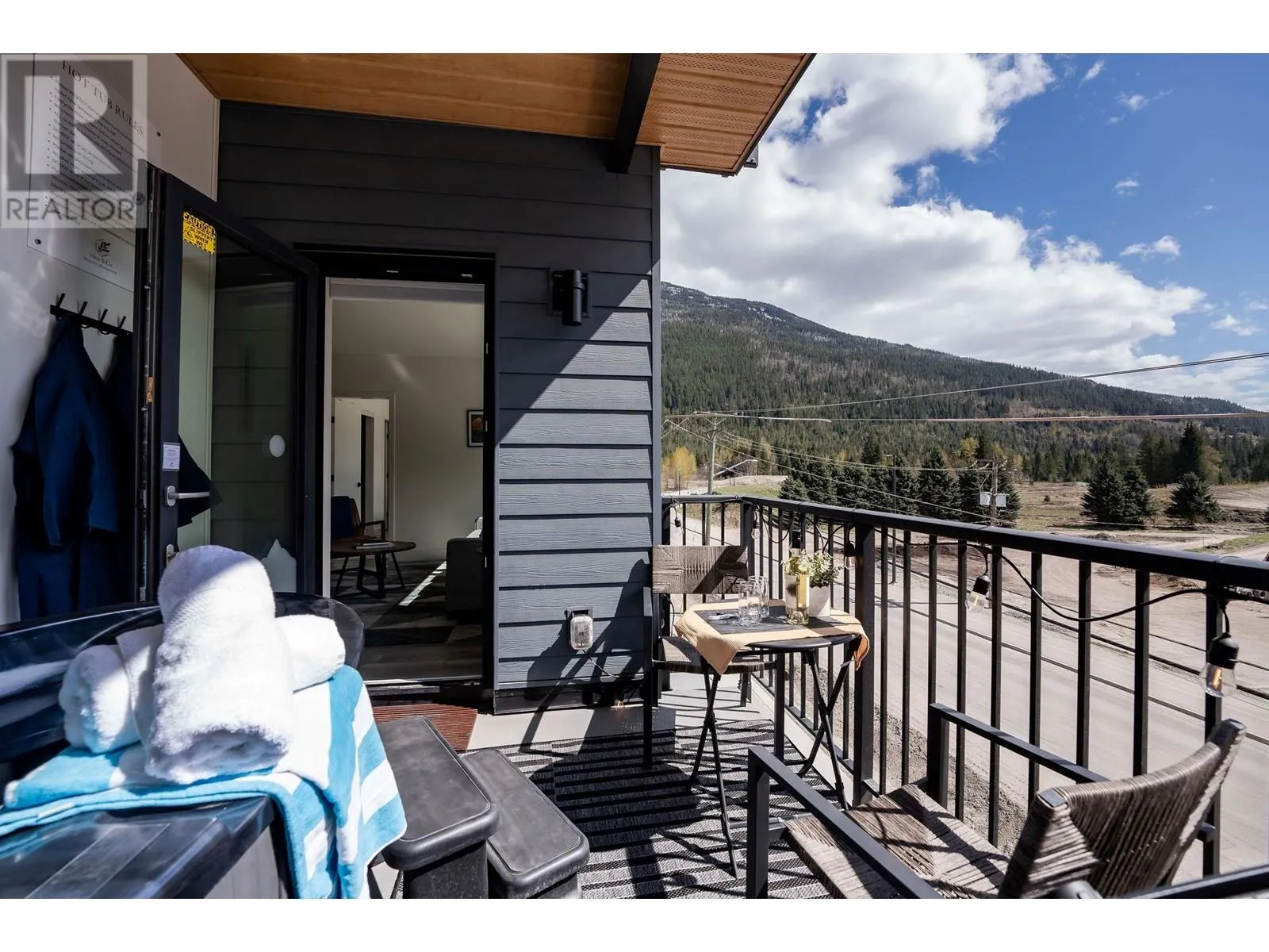 Welcome to Unit 3301 at the newly constructed Mackenzie Plaza! This unique south-facing, 2-bedroom, 2-bathroom, 899 sq. ft. corner unit sits adjacent to the soon-to-be-completed Cabot Pacific Golf Course and steps from Revelstoke Mountain Resort. Completed in 2023, this turnkey property has already demonstrated strong vacation rental revenue. Beautifully designed with a Forest After Dark inspired palette, the unit features quartz countertops, soft-close cabinetry, and sleek handleless drawers. Built with steel framing, concrete sub floors, and high-quality windows, the developers prioritized soundproofing and energy efficiency, while a high-efficiency heat pump ensures comfortable heating and cooling year-round. This unit includes several premium upgrades, such as two dedicated underground secured parking stalls, an 86 sq. ft. secured galvanized steel storage locker, additional main-floor storage, and secured underground bike storage. It also features top-down bottom-up blackout blinds for privacy and light control. Designed with vacation rental guests in mind, this unit offers thoughtful amenities, including boot and towel warmersâperfect for apres-ski comfort. Mackenzie Plaza provides convenient commercial amenities, including a coffee shop, gym, co-working space, grocery store, liquor store, and art gallery. Unwind on your private patio or in your two-person hot tub while soaking in the breathtaking Monashee Mountain views. Call today for more details! (id:27476)