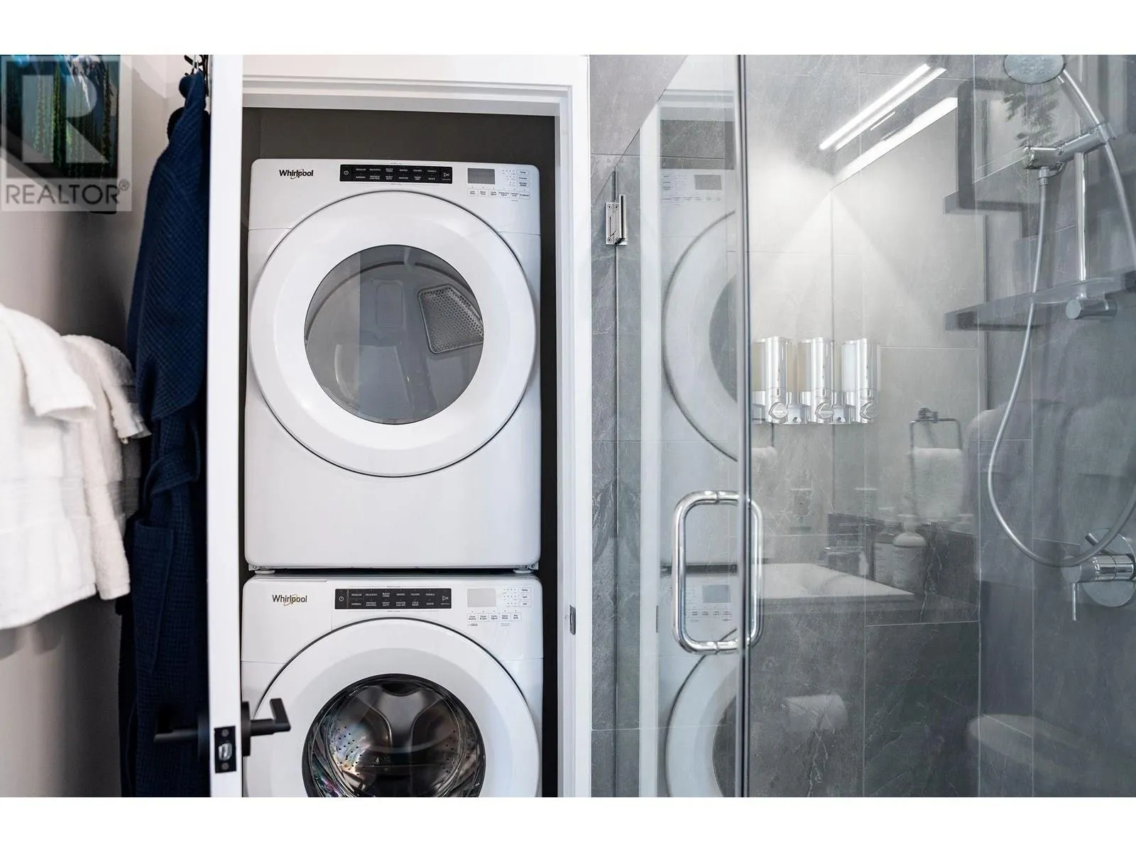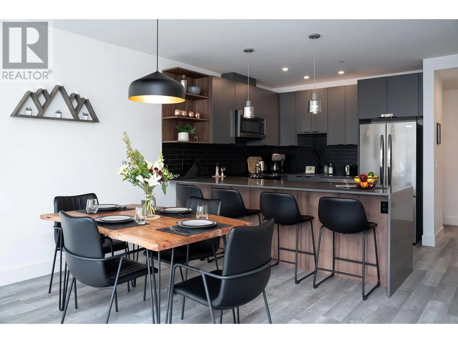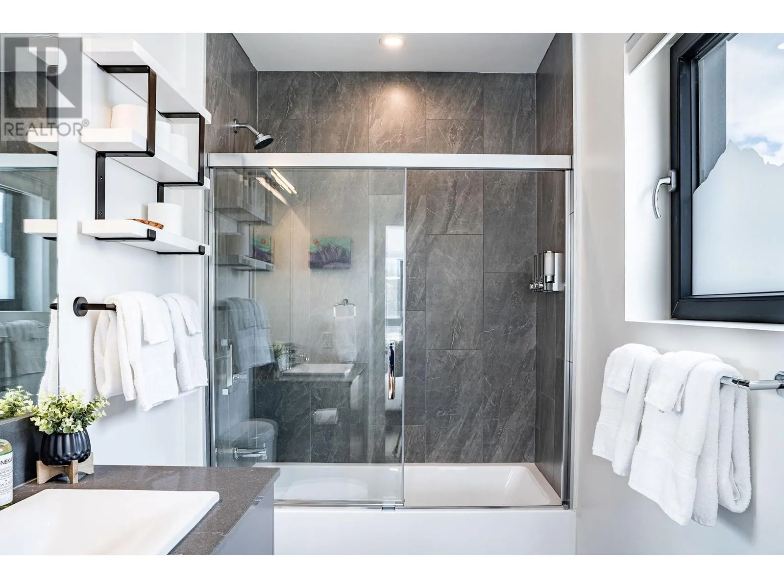 Welcome to Unit 3301 at the newly constructed Mackenzie Plaza! This unique south-facing, 2-bedroom, 2-bathroom, 899 sq. ft. corner unit sits adjacent to the soon-to-be-completed Cabot Pacific Golf Course and steps from Revelstoke Mountain Resort. Completed in 2023, this turnkey property has already demonstrated strong vacation rental revenue. Beautifully designed with a Forest After Dark inspired palette, the unit features quartz countertops, soft-close cabinetry, and sleek handleless drawers. Built with steel framing, concrete sub floors, and high-quality windows, the developers prioritized soundproofing and energy efficiency, while a high-efficiency heat pump ensures comfortable heating and cooling year-round. This unit includes several premium upgrades, such as two dedicated underground secured parking stalls, an 86 sq. ft. secured galvanized steel storage locker, additional main-floor storage, and secured underground bike storage. It also features top-down bottom-up blackout blinds for privacy and light control. Designed with vacation rental guests in mind, this unit offers thoughtful amenities, including boot and towel warmersâperfect for apres-ski comfort. Mackenzie Plaza provides convenient commercial amenities, including a coffee shop, gym, co-working space, grocery store, liquor store, and art gallery. Unwind on your private patio or in your two-person hot tub while soaking in the breathtaking Monashee Mountain views. Call today for more details! (id:27476)
