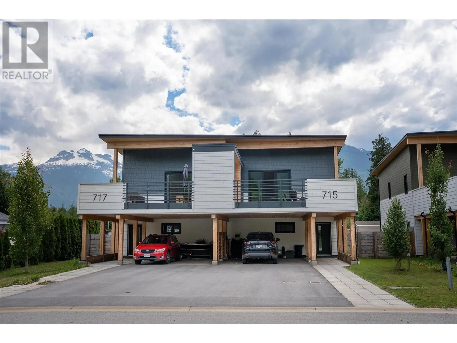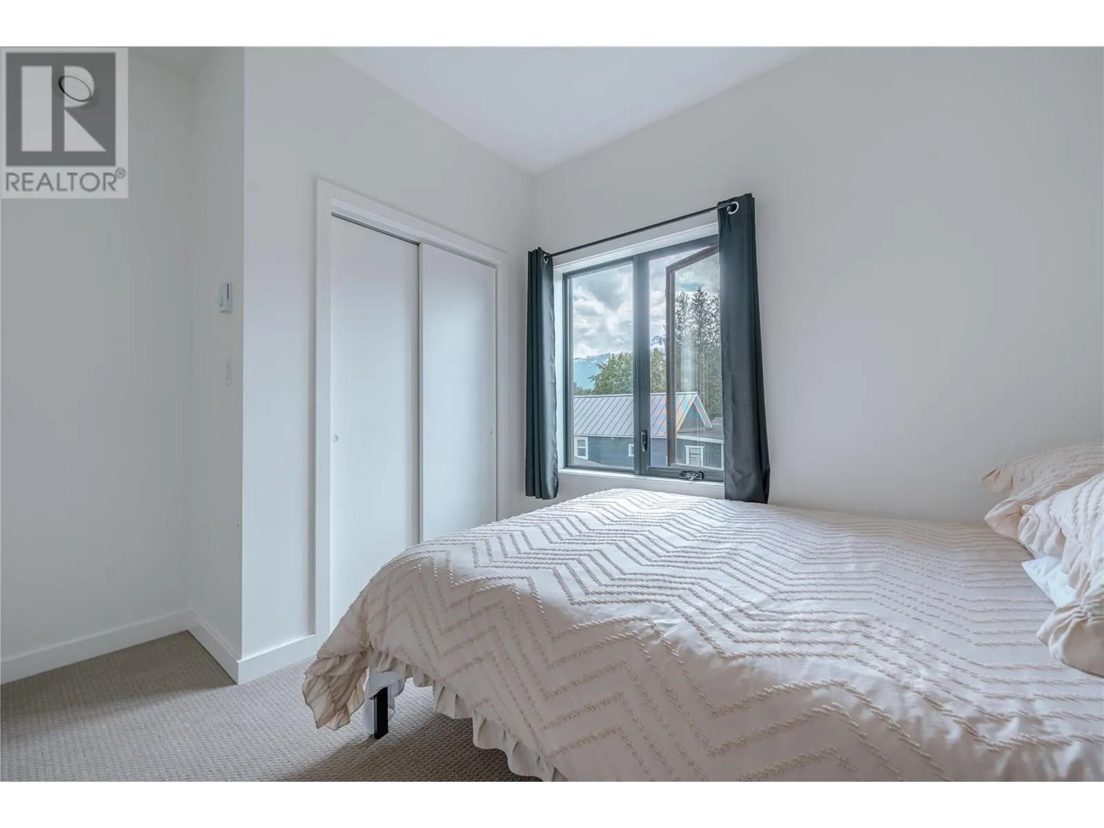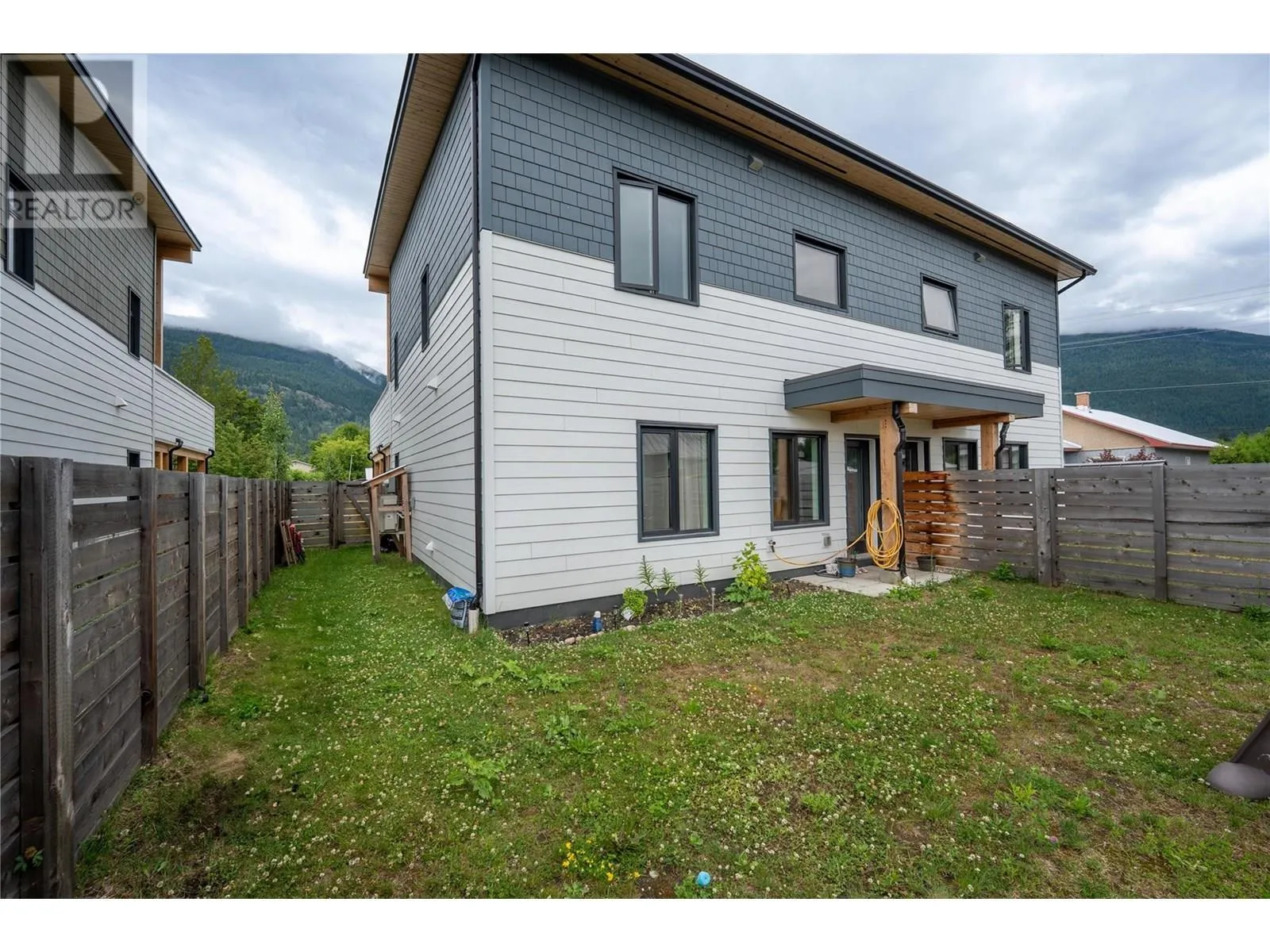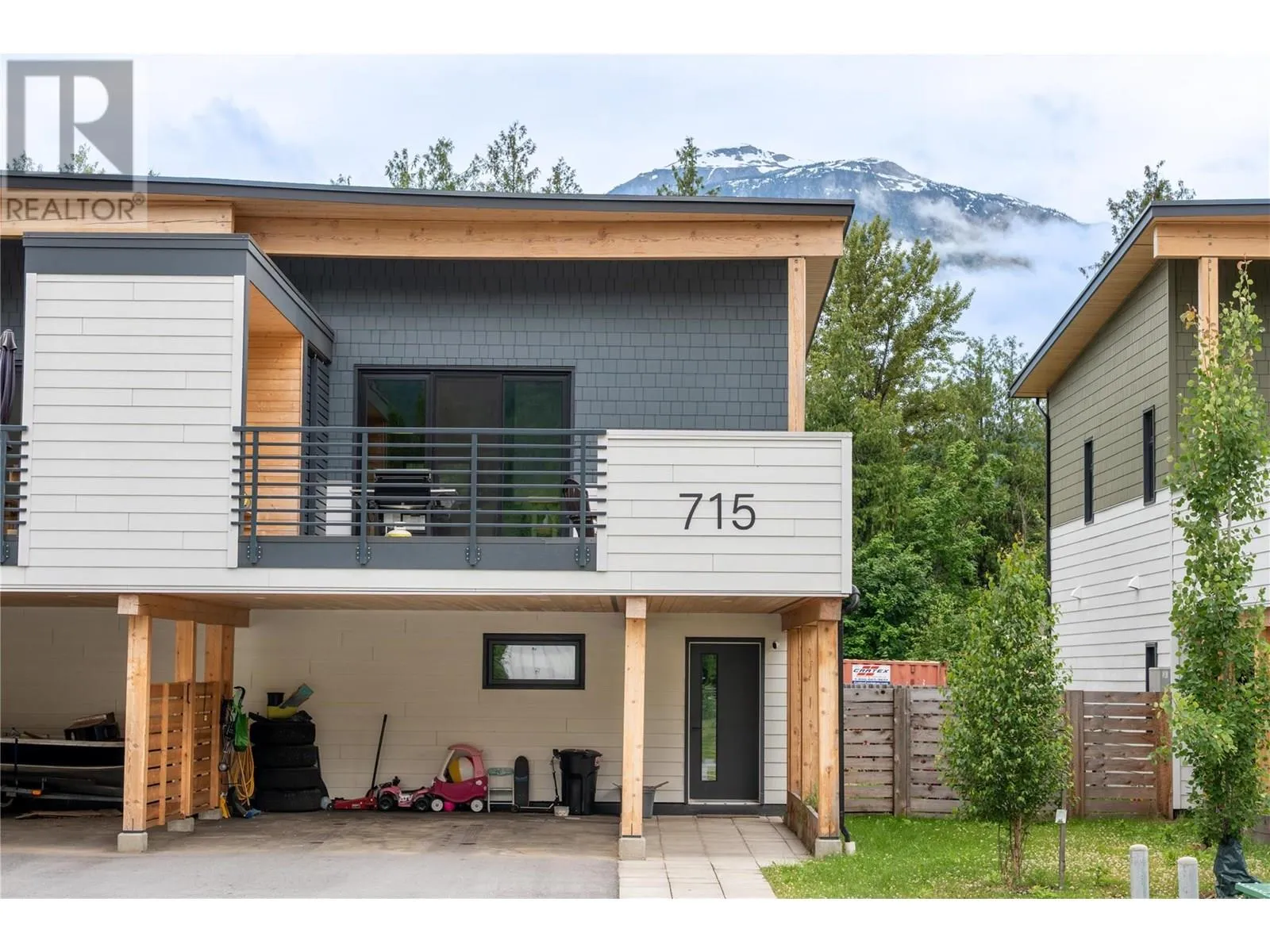 Contemporary design, energy efficiency, and thoughtful finishes come together in this beautifully built 1/2 duplex at Olynyk Grove. Offering approx. 1,442 sq. ft. over 2 levels, this 3-bed, 2.5 bath home features a bright, open living space with birch cabinetry, quartz countertops, and stylish black stainless steel appliances. Vinyl plank and partial carpet flooring pair with matte black fixtures for a clean, modern aesthetic throughout. The spacious main floor entry welcomes you with a large foyer and includes a primary bedroom & ensuite, a second bedroom, another full bath, laundry, and direct access to the fenced, sun-drenched backyard. Upstairs, youâll find a well-appointed kitchen, open dining and living areas, powder room, third bedroom and a stunning sundeck perfect for relaxing while enjoying views of both Revelstoke Mountain Resort and Mt. Revelstoke. Built in 2022, this home meets BC Step Code 4 and includes a 2/5/10 New Home Warranty. Triple-pane windows, a fully ducted HRV system, baseboard heat & mini-split heat pumps on each floor. Exterior highlights include Hardie board & wood siding, tongue-and-groove pine soffits, and substantial posts & beams. A covered carport, additional parking & ample storage complete this high-value property on a quiet no-thru cul-de-sac just minutes from downtown Revelstoke, Illecillewaet Greenbelt walking paths, parks, schools, and transit. Donât miss your chance to own this energy-efficient, modern home - Call today! (id:27476)