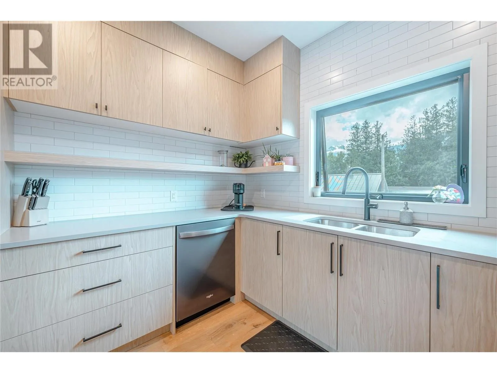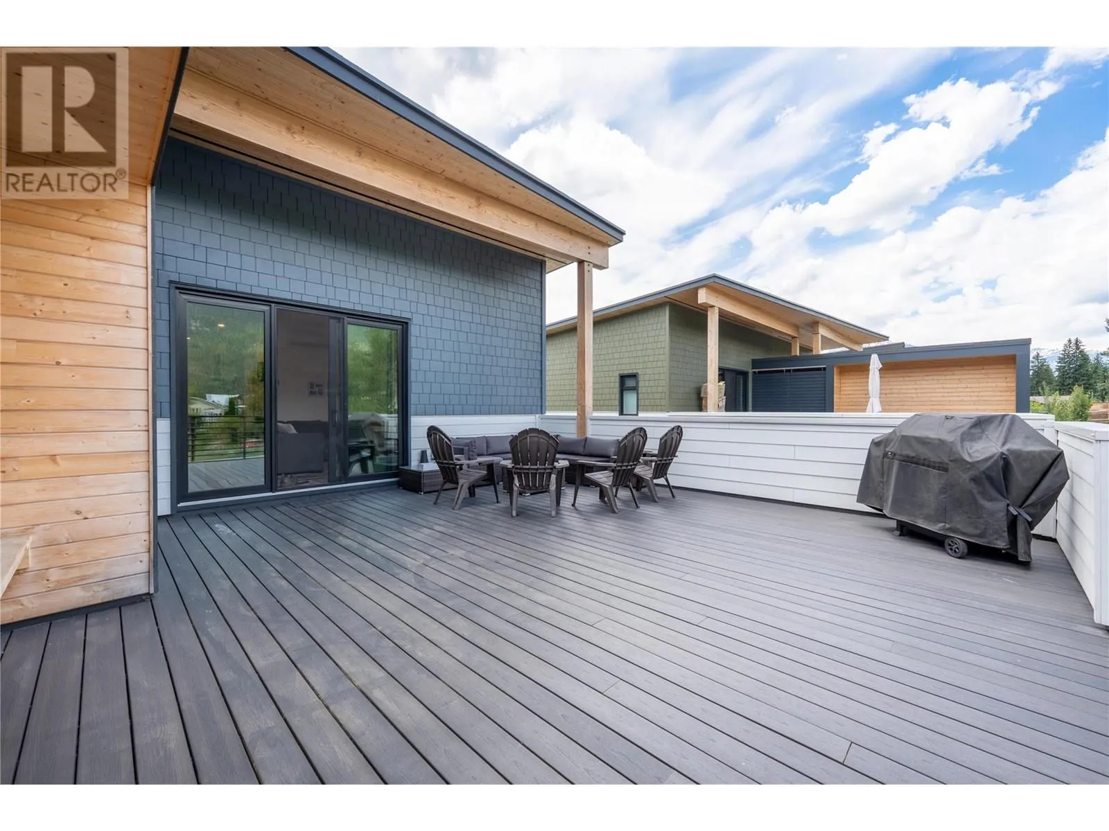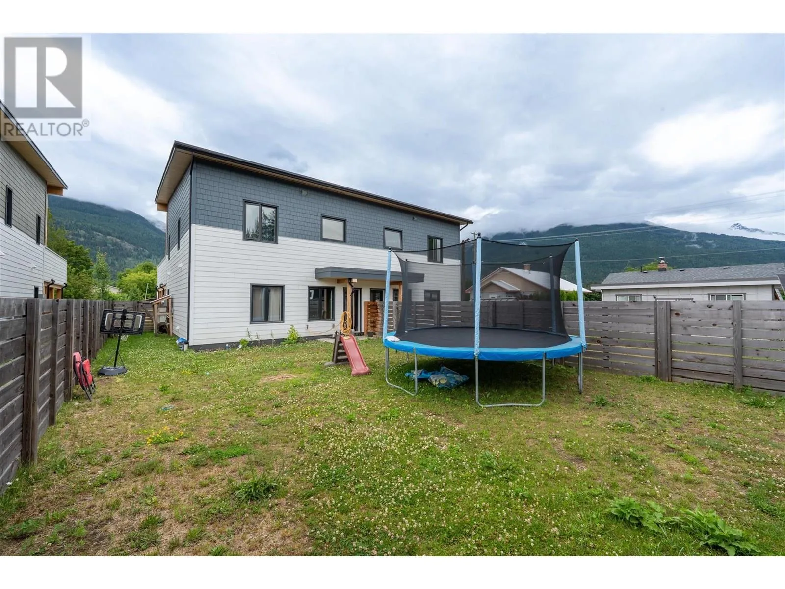 Contemporary design, energy efficiency, and thoughtful finishes come together in this beautifully built 1/2 duplex at Olynyk Grove. Offering approx. 1,442 sq. ft. over 2 levels, this 3-bed, 2.5 bath home features a bright, open living space with birch cabinetry, quartz countertops, and stylish black stainless steel appliances. Vinyl plank and partial carpet flooring pair with matte black fixtures for a clean, modern aesthetic throughout. The spacious main floor entry welcomes you with a large foyer and includes a primary bedroom & ensuite, a second bedroom, another full bath, laundry, and direct access to the fenced, sun-drenched backyard. Upstairs, youâll find a well-appointed kitchen, open dining and living areas, powder room, third bedroom and a stunning sundeck perfect for relaxing while enjoying views of both Revelstoke Mountain Resort and Mt. Revelstoke. Built in 2022, this home meets BC Step Code 4 and includes a 2/5/10 New Home Warranty. Triple-pane windows, a fully ducted HRV system, baseboard heat & mini-split heat pumps on each floor. Exterior highlights include Hardie board & wood siding, tongue-and-groove pine soffits, and substantial posts & beams. A covered carport, additional parking & ample storage complete this high-value property on a quiet no-thru cul-de-sac just minutes from downtown Revelstoke, Illecillewaet Greenbelt walking paths, parks, schools, and transit. Donât miss your chance to own this energy-efficient, modern home - Call today! (id:27476)