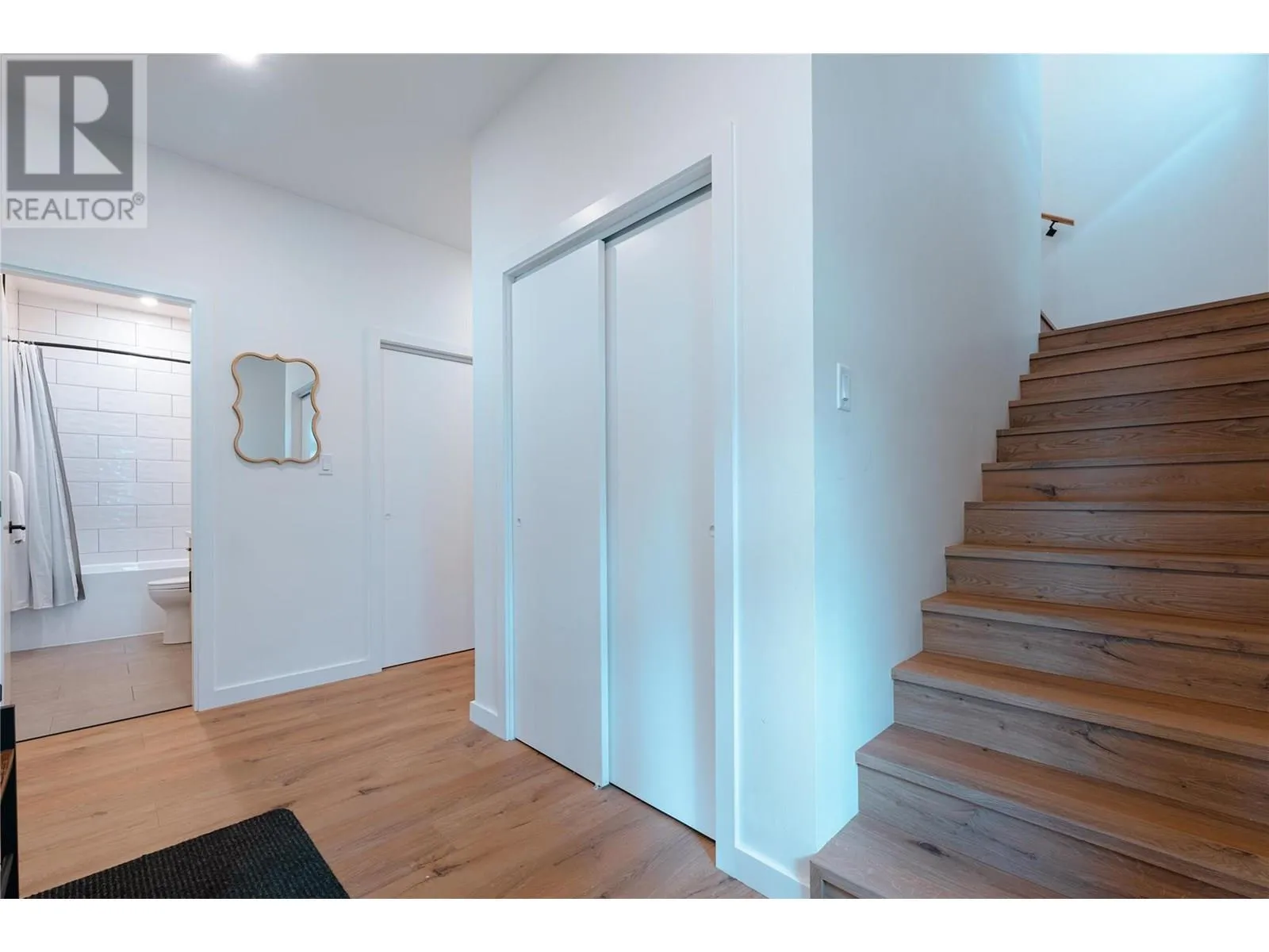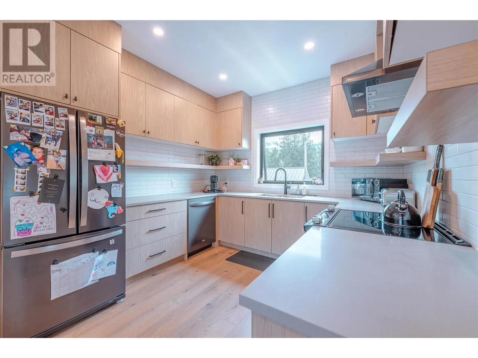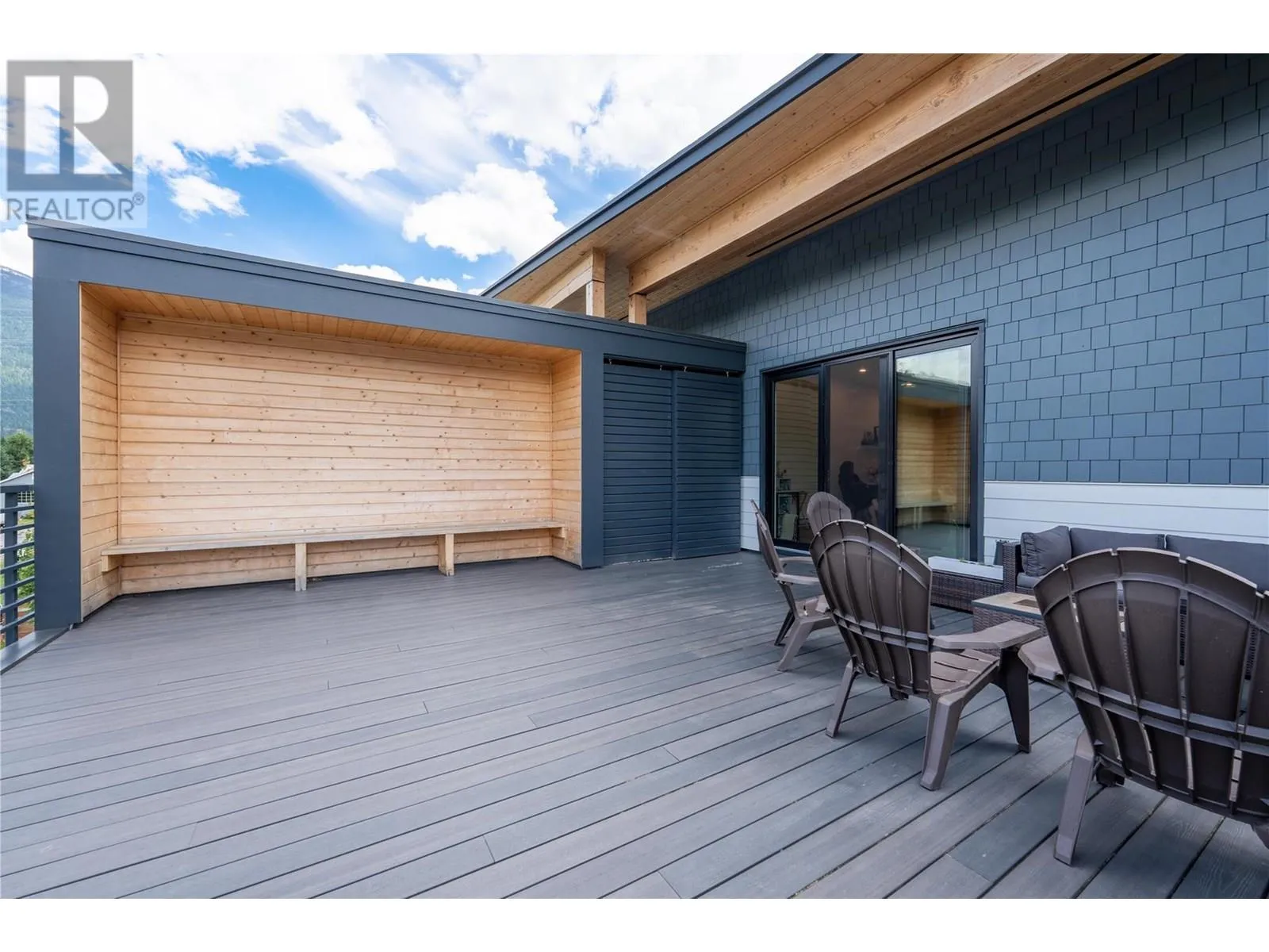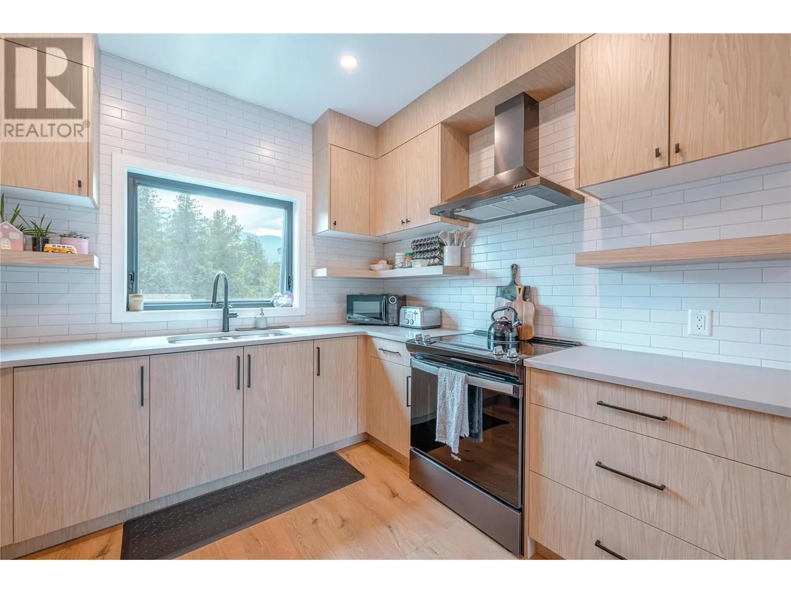 Contemporary design, energy efficiency, and thoughtful finishes come together in this beautifully built 1/2 duplex at Olynyk Grove. Offering approx. 1,442 sq. ft. over 2 levels, this 3-bed, 2.5 bath home features a bright, open living space with birch cabinetry, quartz countertops, and stylish black stainless steel appliances. Vinyl plank and partial carpet flooring pair with matte black fixtures for a clean, modern aesthetic throughout. The spacious main floor entry welcomes you with a large foyer and includes a primary bedroom & ensuite, a second bedroom, another full bath, laundry, and direct access to the fenced, sun-drenched backyard. Upstairs, youâll find a well-appointed kitchen, open dining and living areas, powder room, third bedroom and a stunning sundeck perfect for relaxing while enjoying views of both Revelstoke Mountain Resort and Mt. Revelstoke. Built in 2022, this home meets BC Step Code 4 and includes a 2/5/10 New Home Warranty. Triple-pane windows, a fully ducted HRV system, baseboard heat & mini-split heat pumps on each floor. Exterior highlights include Hardie board & wood siding, tongue-and-groove pine soffits, and substantial posts & beams. A covered carport, additional parking & ample storage complete this high-value property on a quiet no-thru cul-de-sac just minutes from downtown Revelstoke, Illecillewaet Greenbelt walking paths, parks, schools, and transit. Donât miss your chance to own this energy-efficient, modern home - Call today! (id:27476)